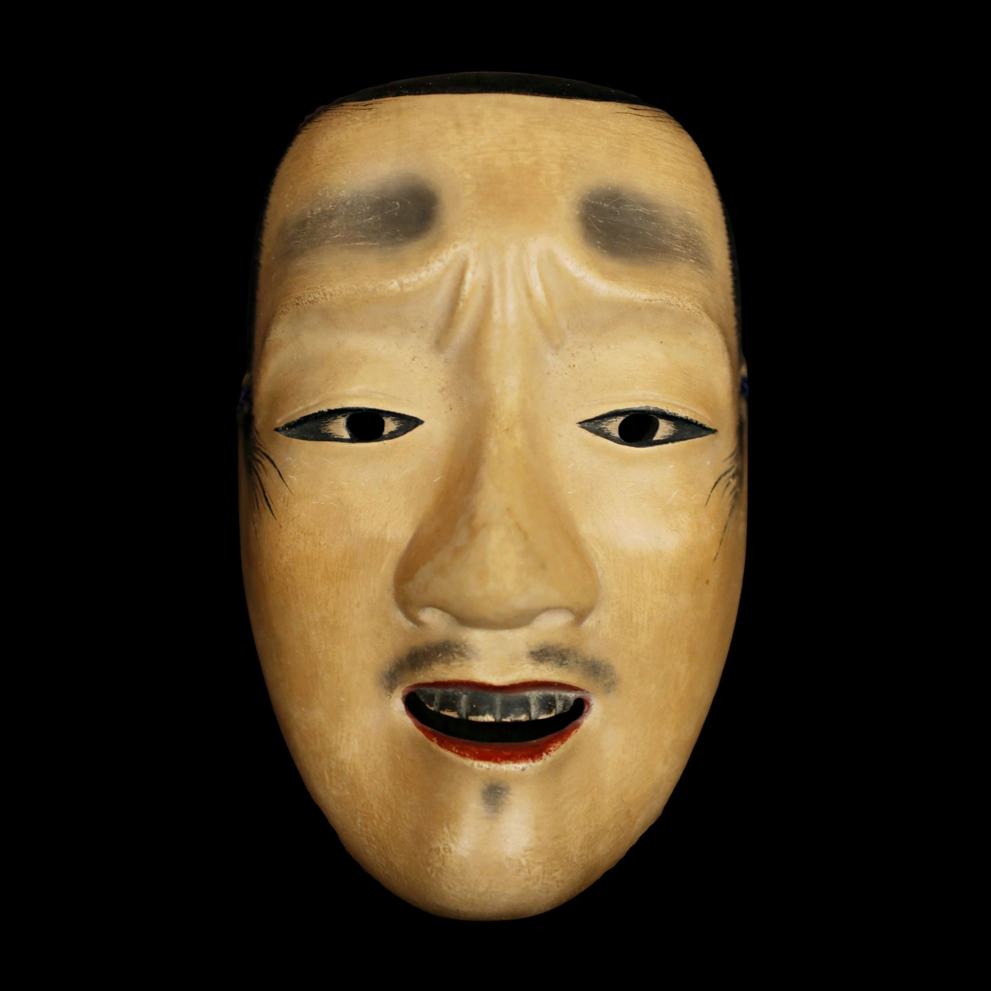 Antique Japanese Noh Mask: Chujo Samurai, Wood Carving with Silk Bag
