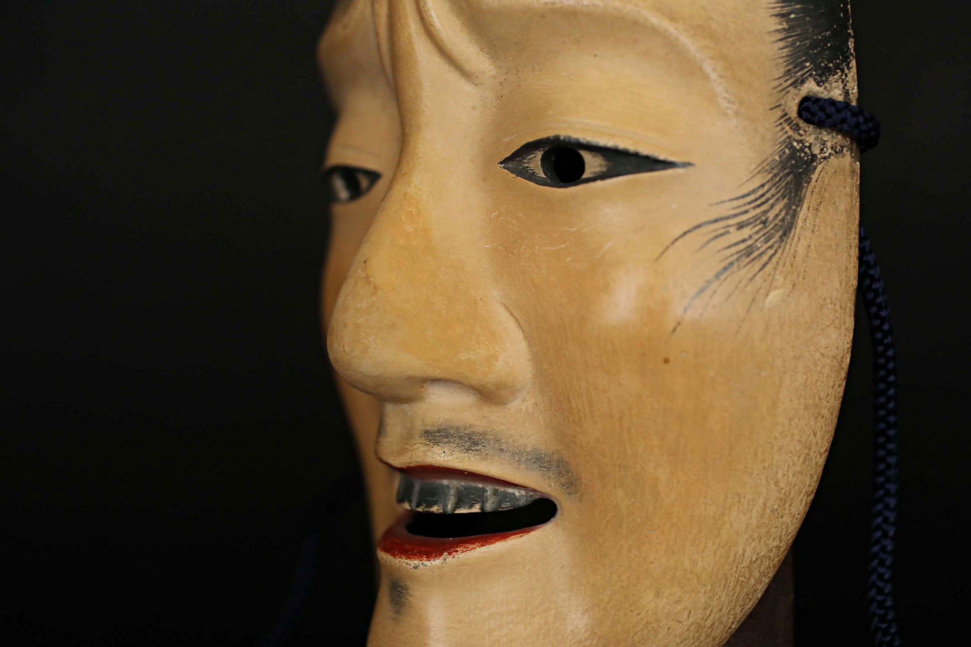In Japan, the expression "face like Noh mask" refers to a person who is expressionless and does not know what he is thinking.Certainly, when you look at the Noh masks on display, it seems difficult to read the facial expressions of women's masks. However, it changes depending on the angle, such as the appearance of tears being shed with sorrow, or the ecstatic expression emerging at the part where the dance goes to the climax. The left and right sides of the Noh mask are "asymmetrical". The difference is also called "yin and yang". Please enjoy from various angles.
