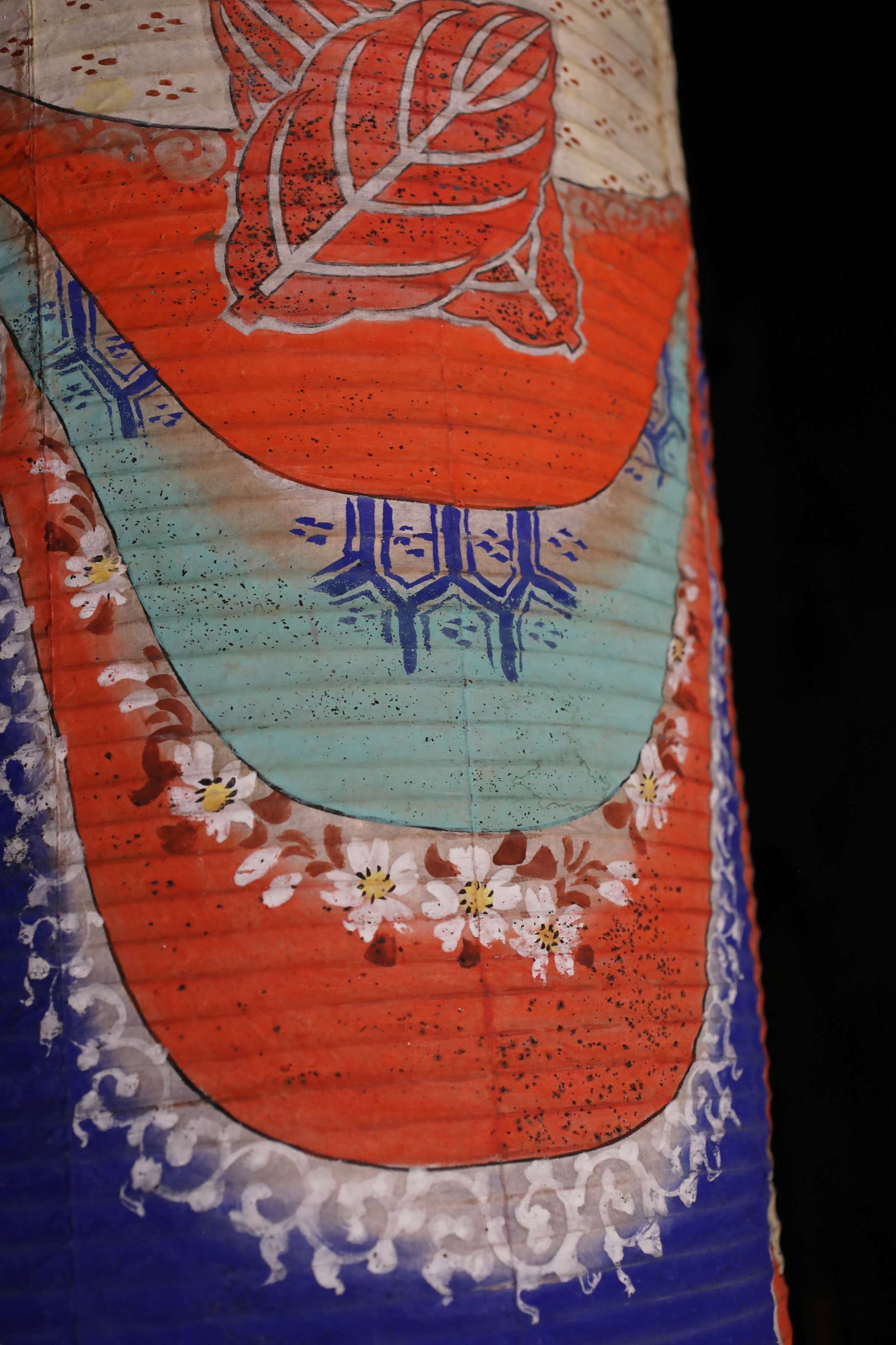 BIG! Japanese furniture vintage hanging paper lantern for portable Candle holder for the shrine temple Kanji calligraphy H42.4in/H107.8cm
