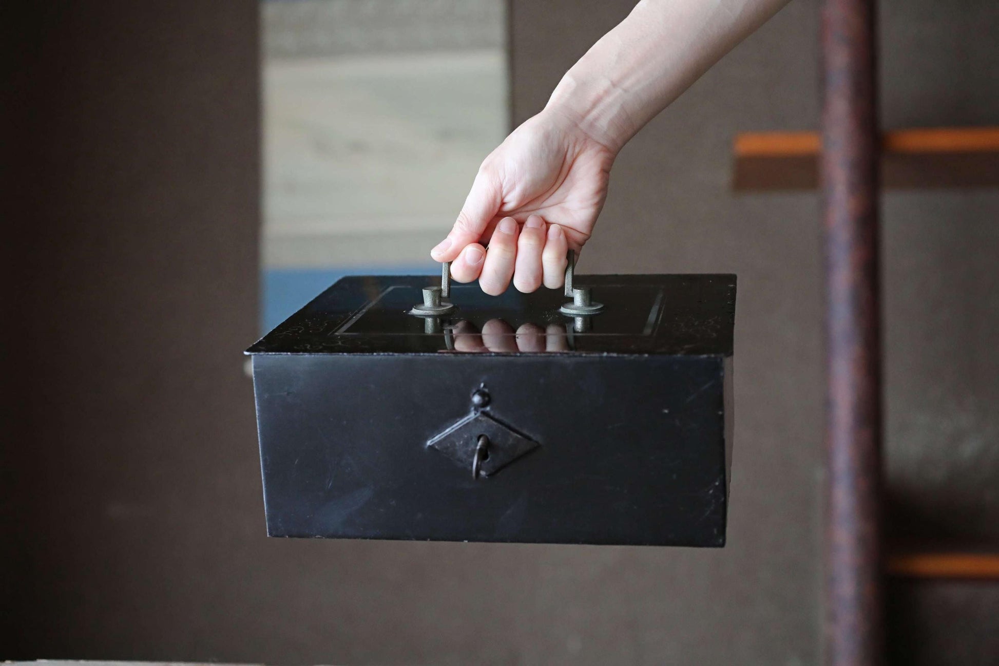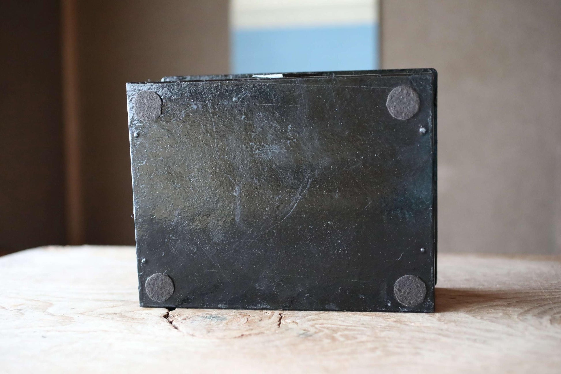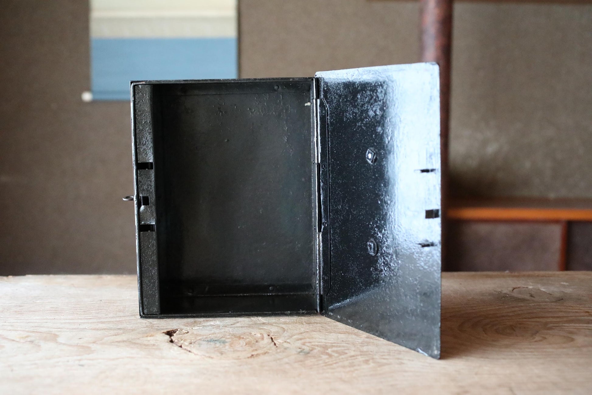 This sturdily built, heavy metal box was originally used as a safe.