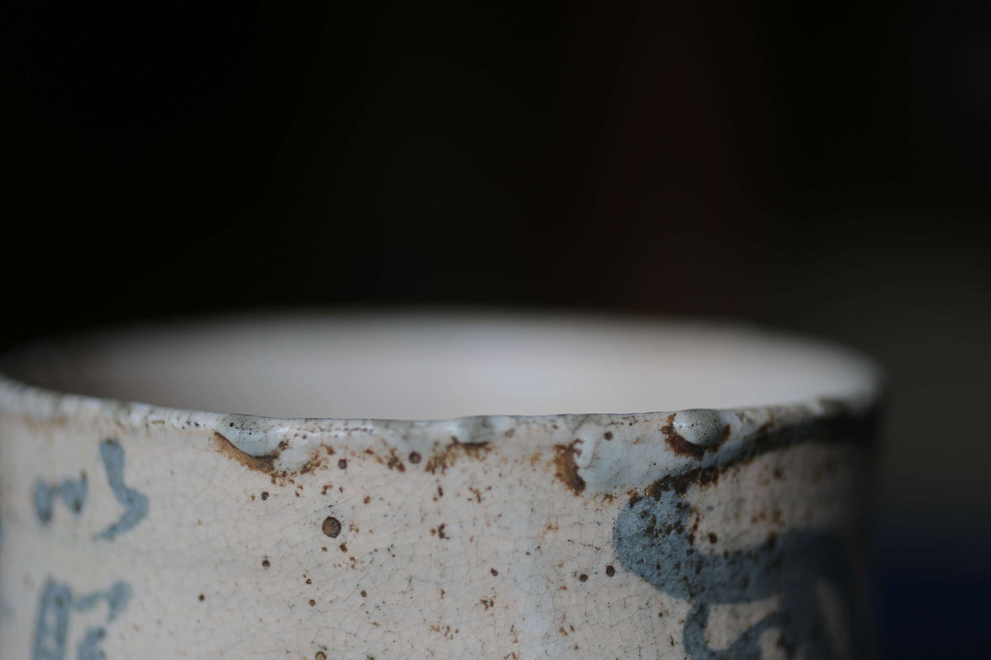 This bowl also has beautiful glaze cracks (Kannyu) on a white background. Kannyu is a crack pattern of the glaze that occurs during cooling after firing due to the difference in shrinkage between the glaze and the base material, and is different from cracks and scratches when cracking. Ordinary pottery is glazed on the base material and then baked at a high temperature of 1200 to 1300 degrees, depending on the type of glaze.