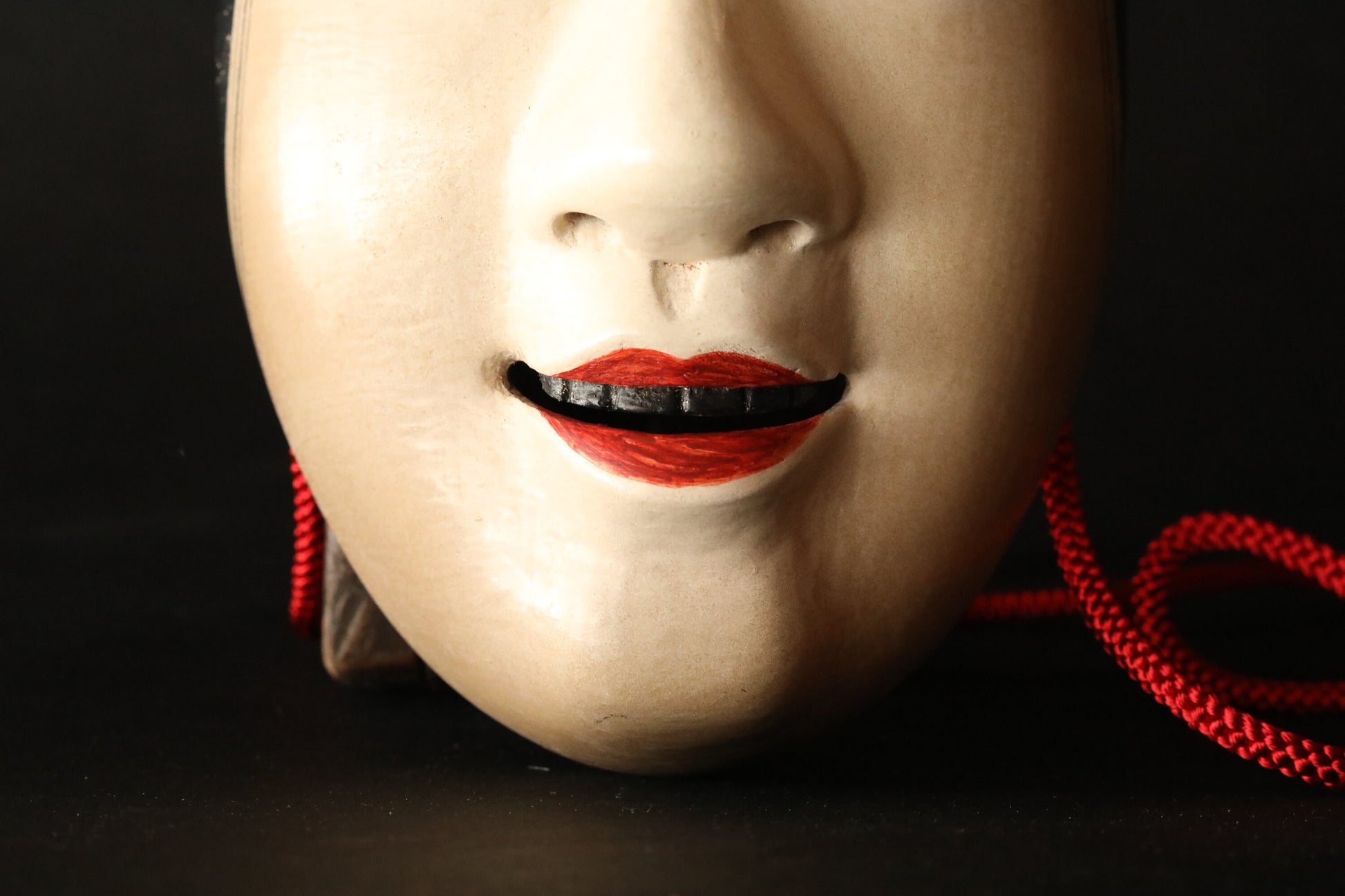 "Noh mask" used on the stage of Noh, a traditional Japanese culture. Noh is a kind of masque played with Noh masks.The protagonist (called "shite") who plays something that is not a human being often appears wearing a Noh mask.A supporting role called Waki, which appears at the beginning of the story, begins the audience to appreciate Noh in a way that invites them to a different world with shite. The story of Noh is simple and symbolic. Rather than following the storyline, you will experience the emotions such as "sadness" that is the subject of the story, and the "elevation" of the dance that is performed toward the climax. The protagonist, Shite, is often a person from another world, such as a god, a demon, or a ghost.