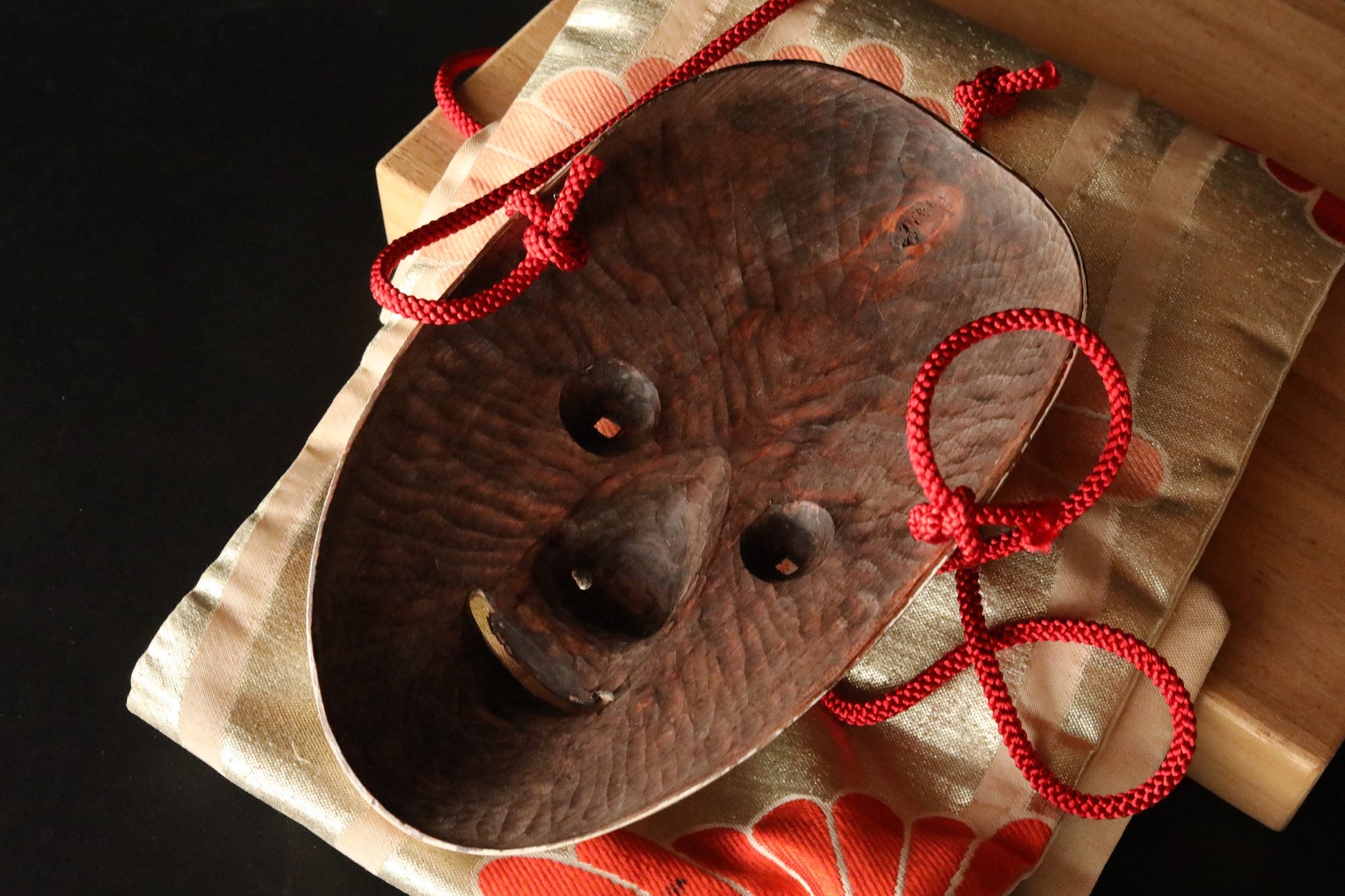 The "face" of Noh mask is called "Omote", and it is mainly carved with cypress and colored with pigment (Ganryo).