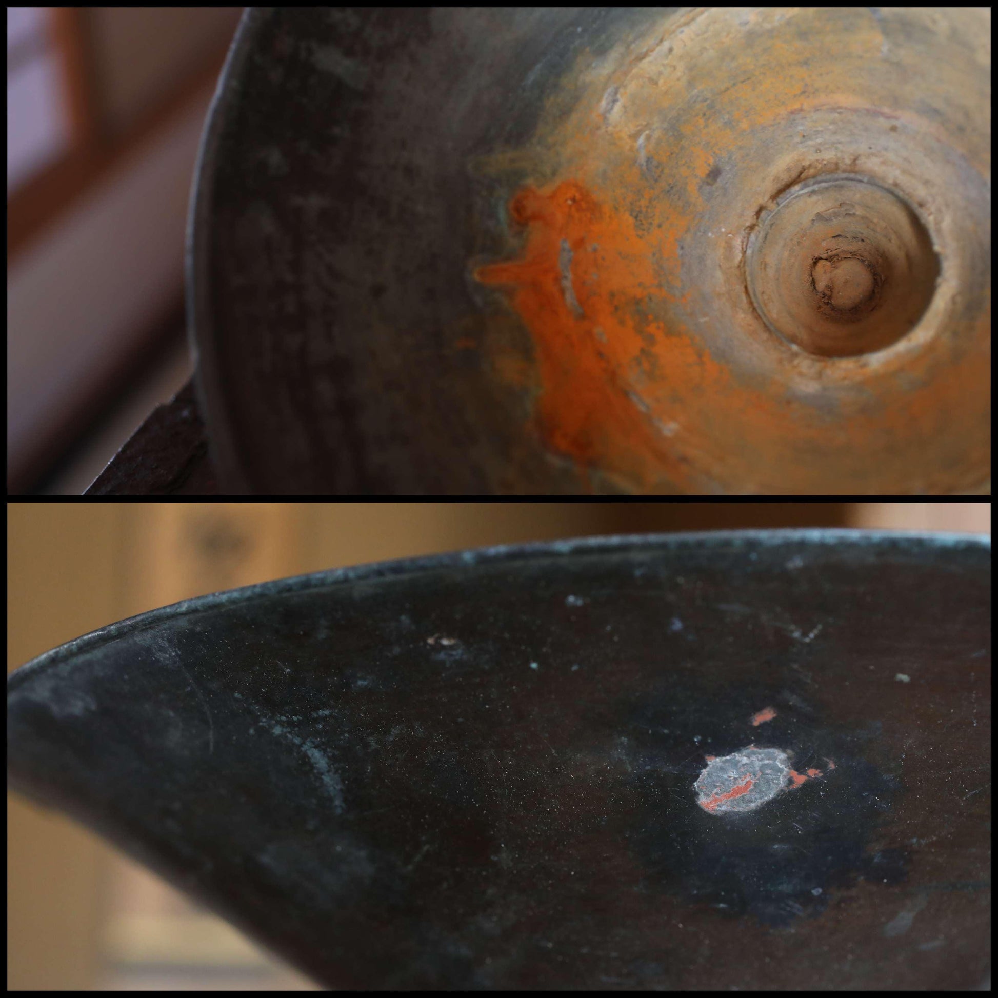 It is in very good condition, but there are small scratches and dirt due to aging. There is spot rust on the inside and sides. It's ready to use.