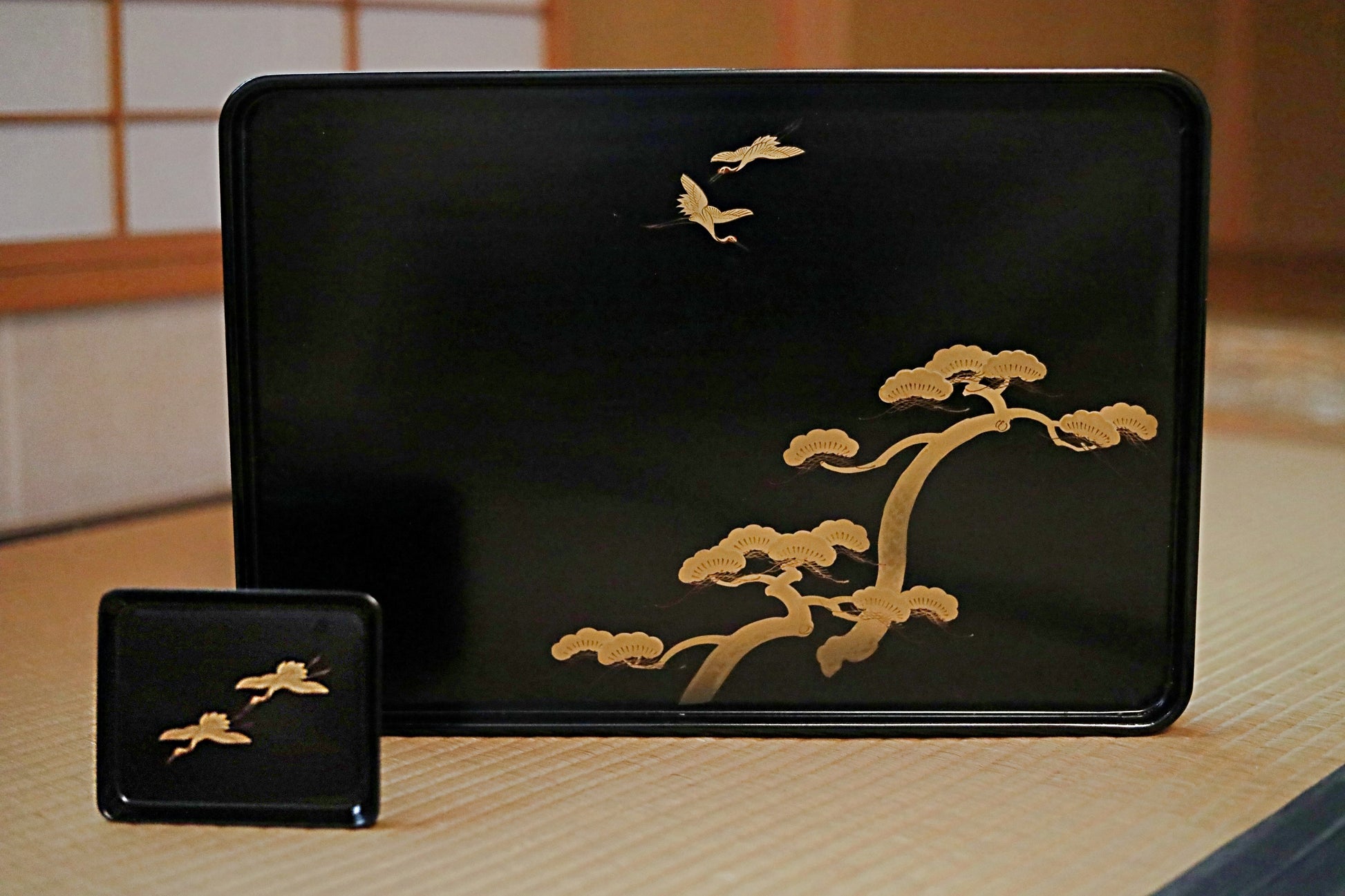 Maki-e is a technique in which pictures, patterns, and letters are drawn on the surface of lacquer ware using lacquer, and then metal powder such as gold or silver is "sprinkled" on the surface before it dries. It is a very gorgeous and time-consuming technique.