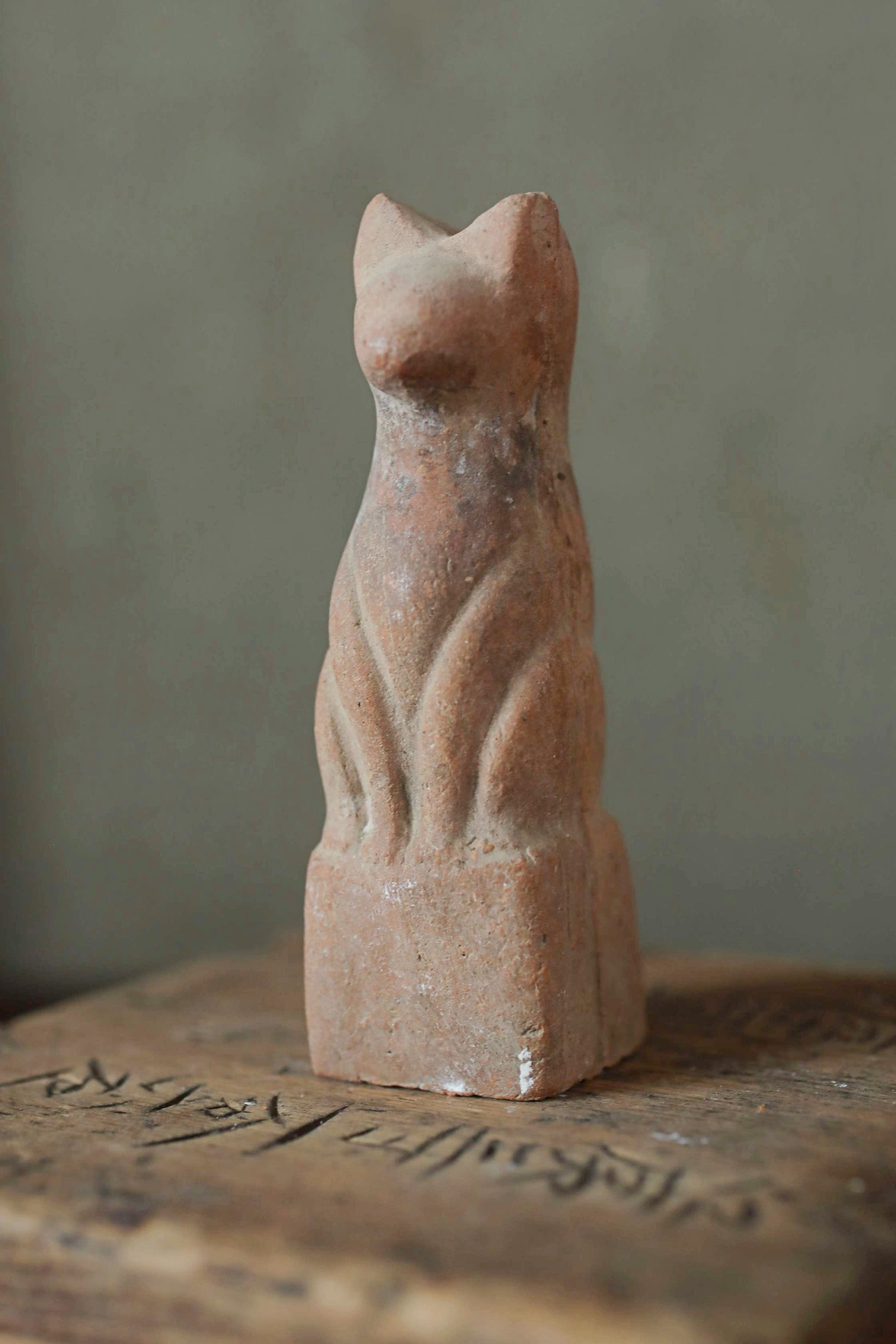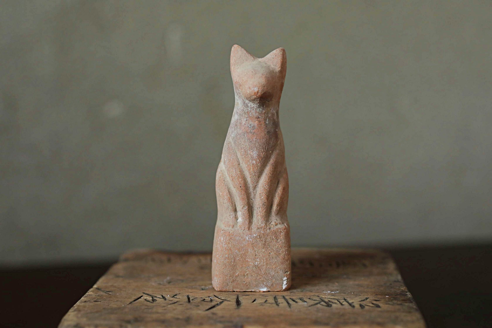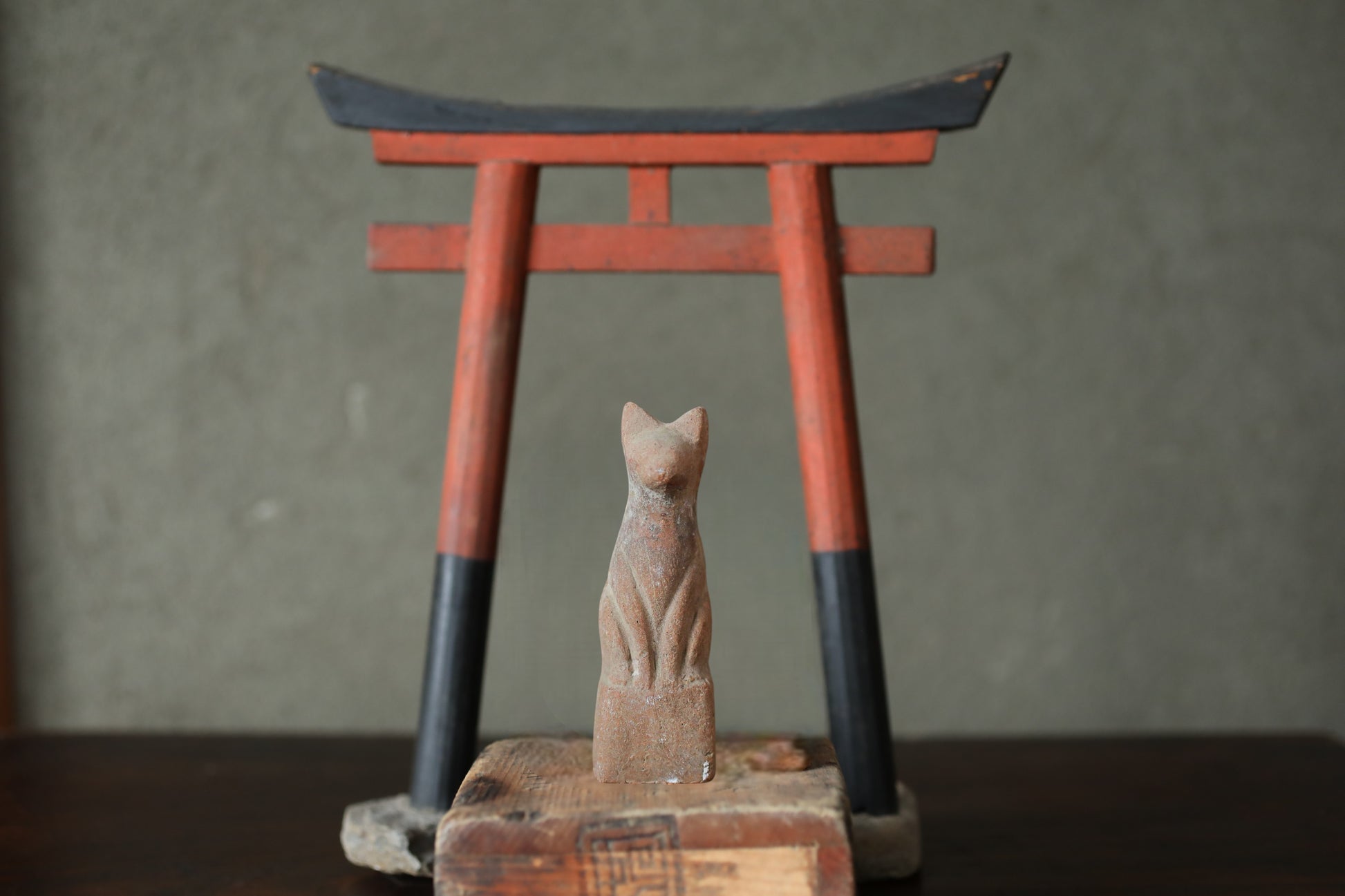 Japanese Antique 1910s KITSUNE doll Pottery from Shinto shrine Altar Foxes art Japanese guardian deity Okimono H3.5in/8.8cm
