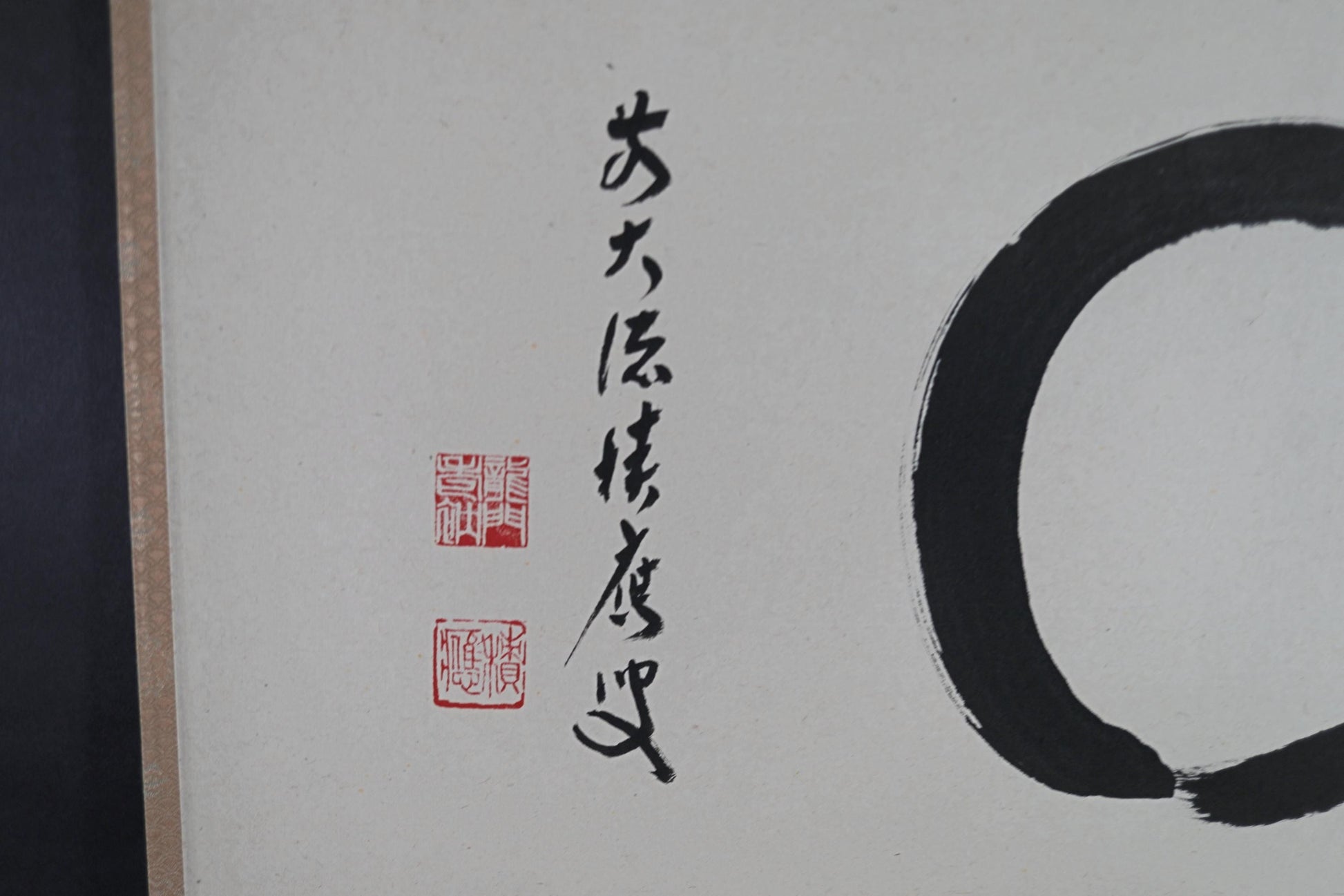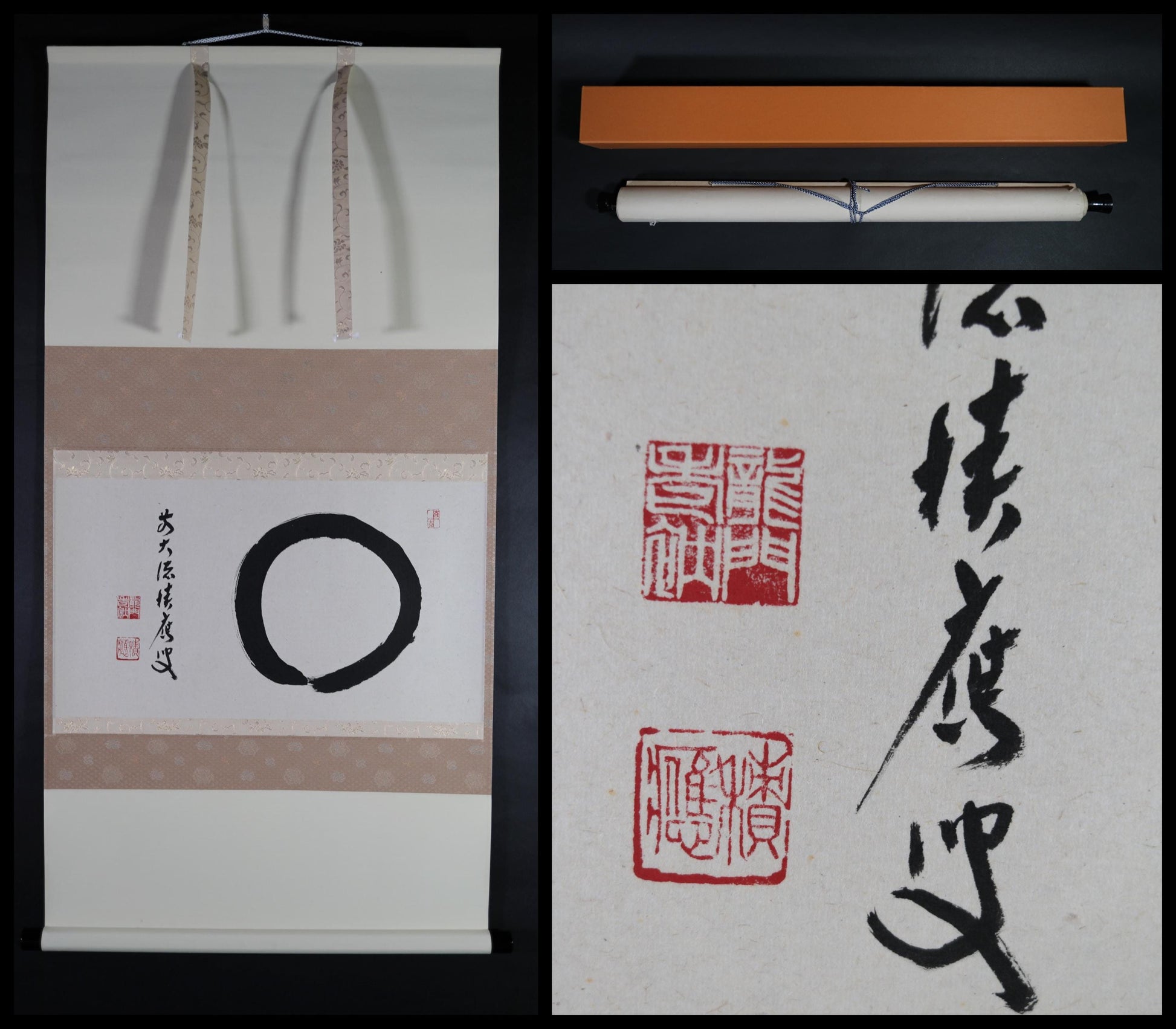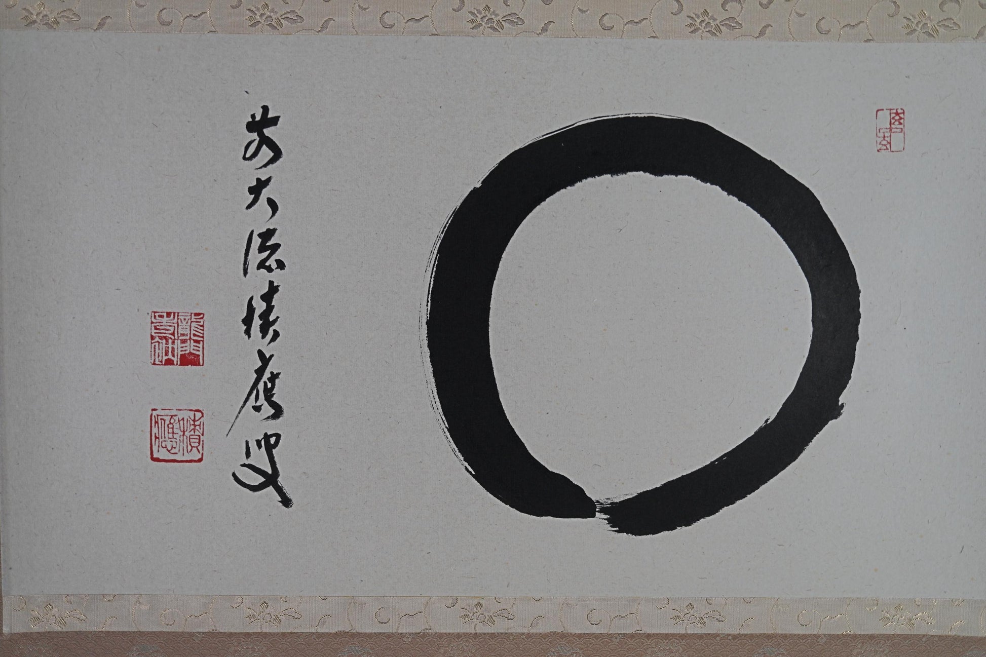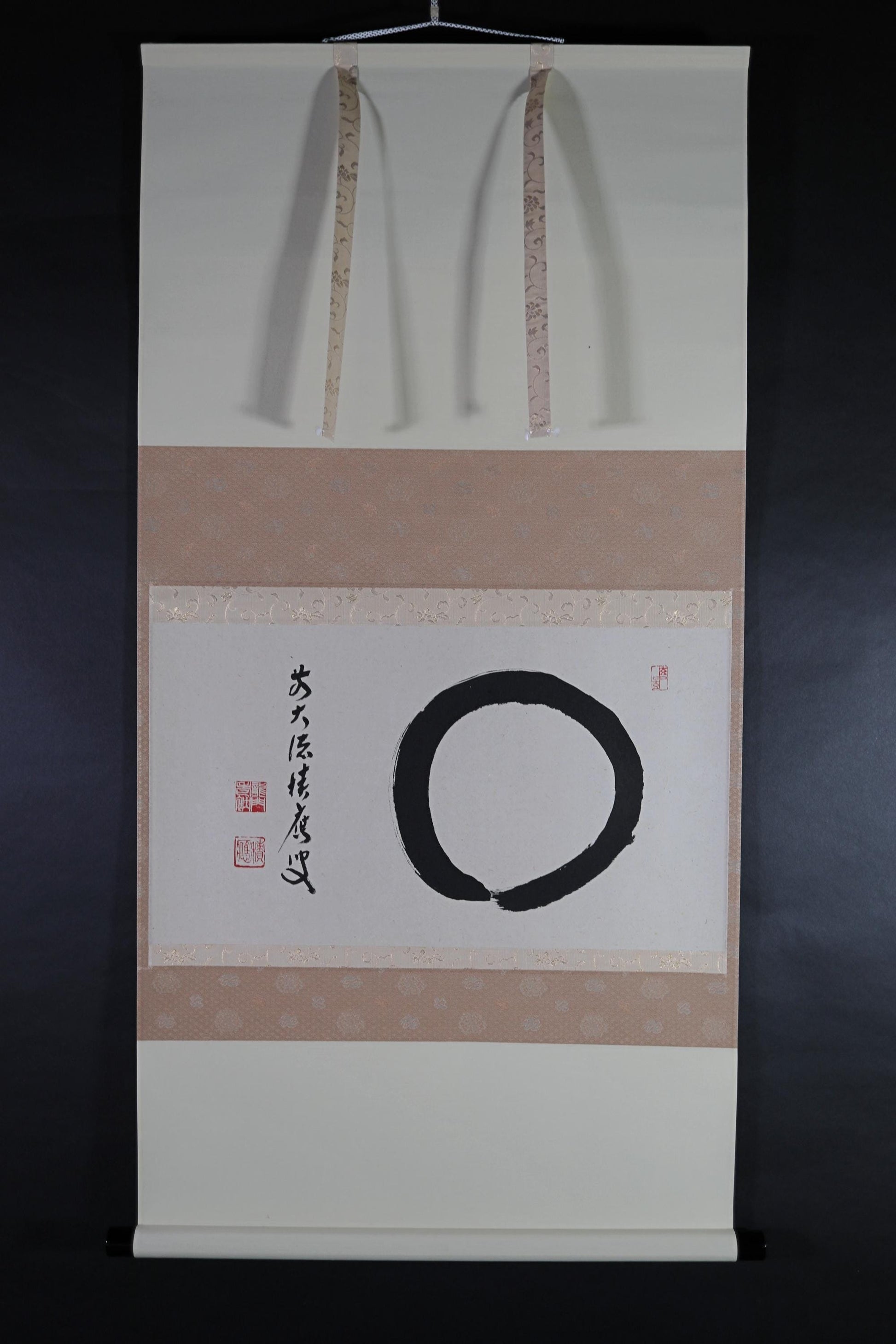 Japanese antique hanging scroll for tea room with calligraphy "Enso" by Zen buddhist monk For Tea ceremony H45.7xW22.8in / 116x58cm