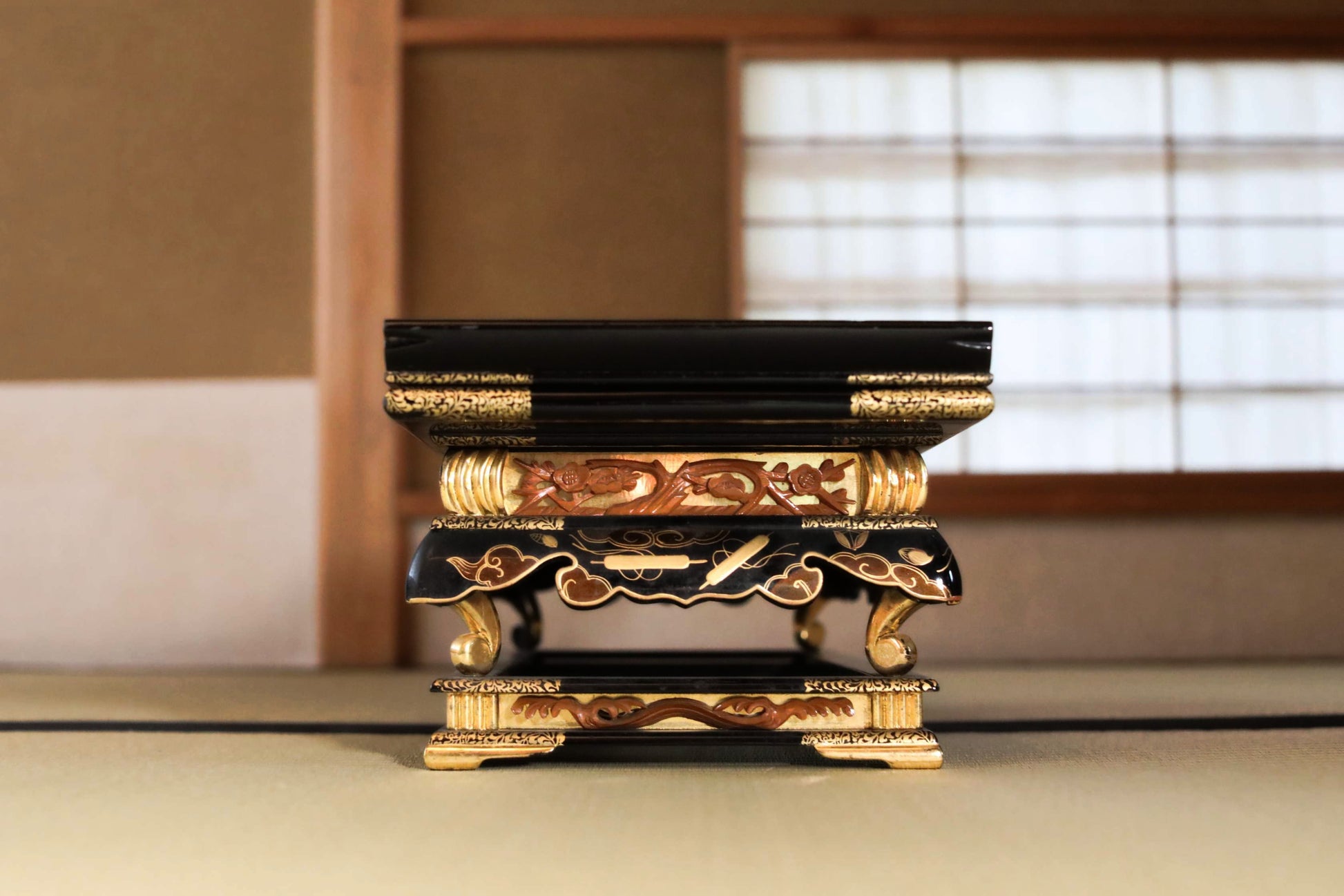 Japanese vintage MAKIE lacquer pedestal, Buddhist table temple stand, furniture, Sutra desk W24.4in/W62cm