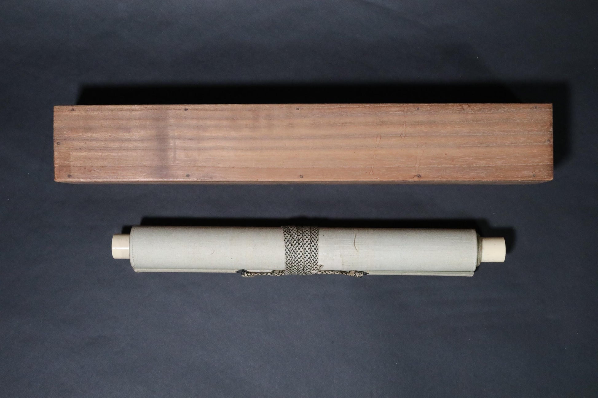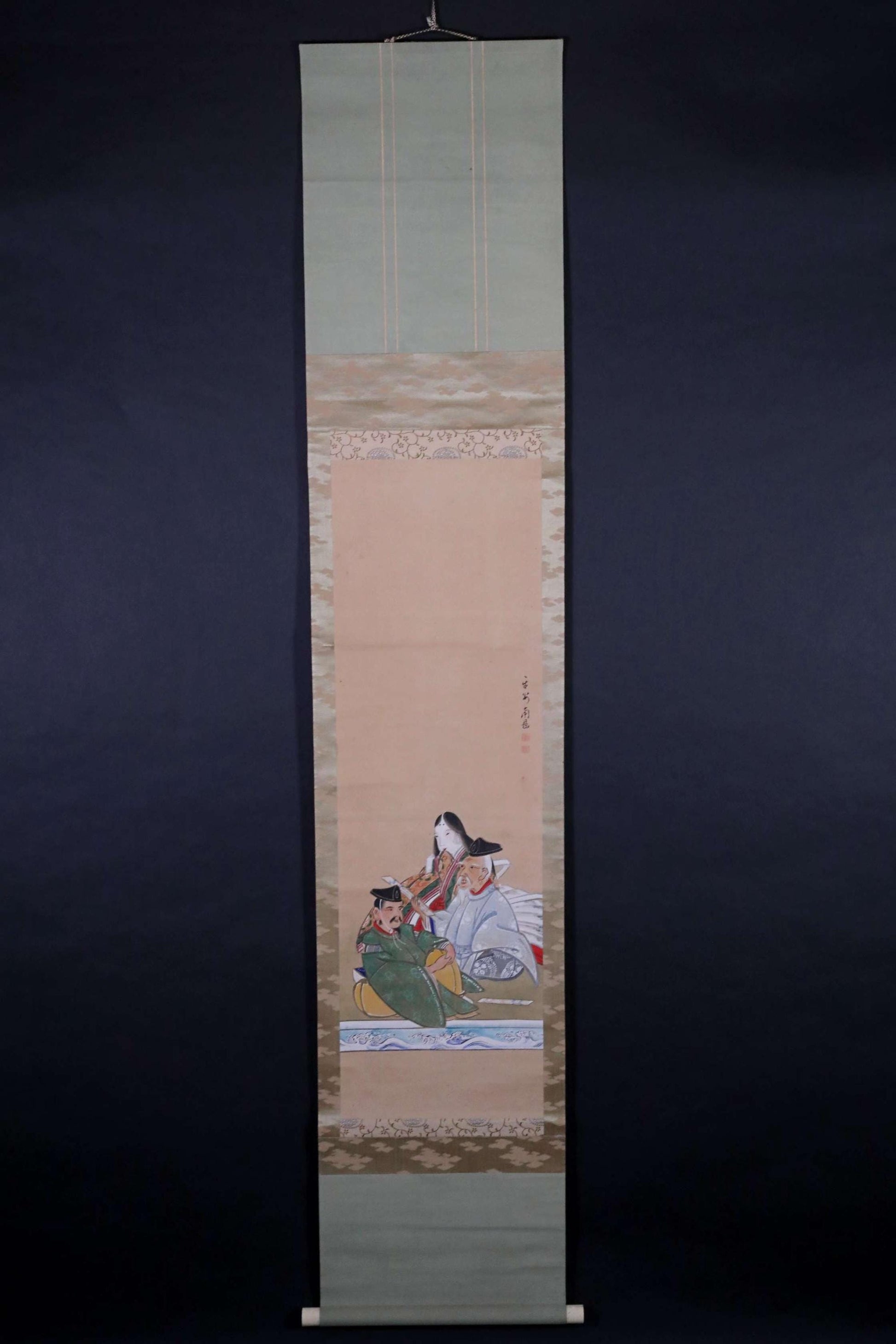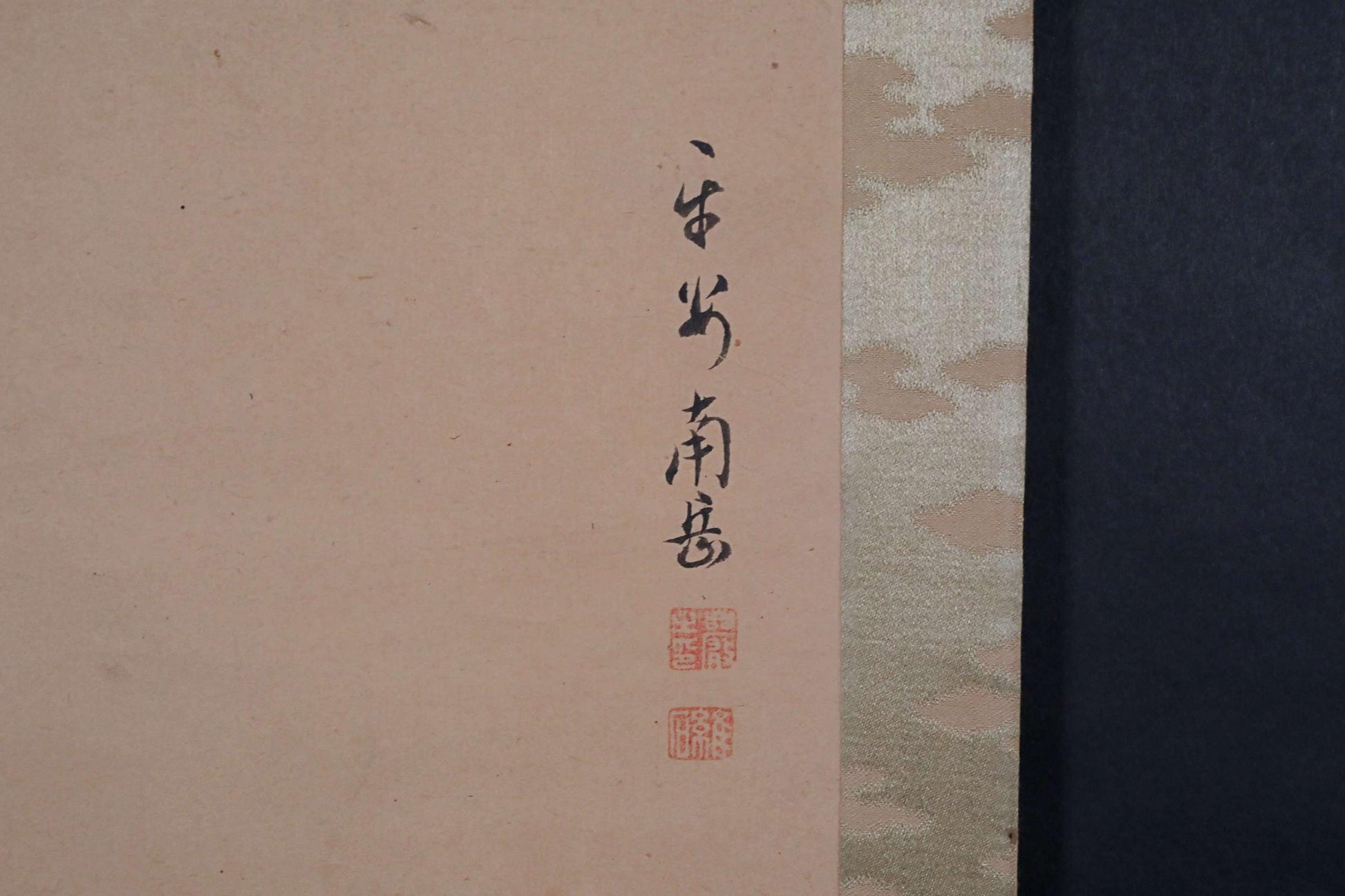 There is a signature and a stamp of "南岳 Nangaku" (1767-1813) who was a prominent student of Maruyama Okyo, the founder of the Maruyama school of painting, and was considered one of Okyo's ten most accomplished disciples. This work was painted in the Meiji era in imitation of him.