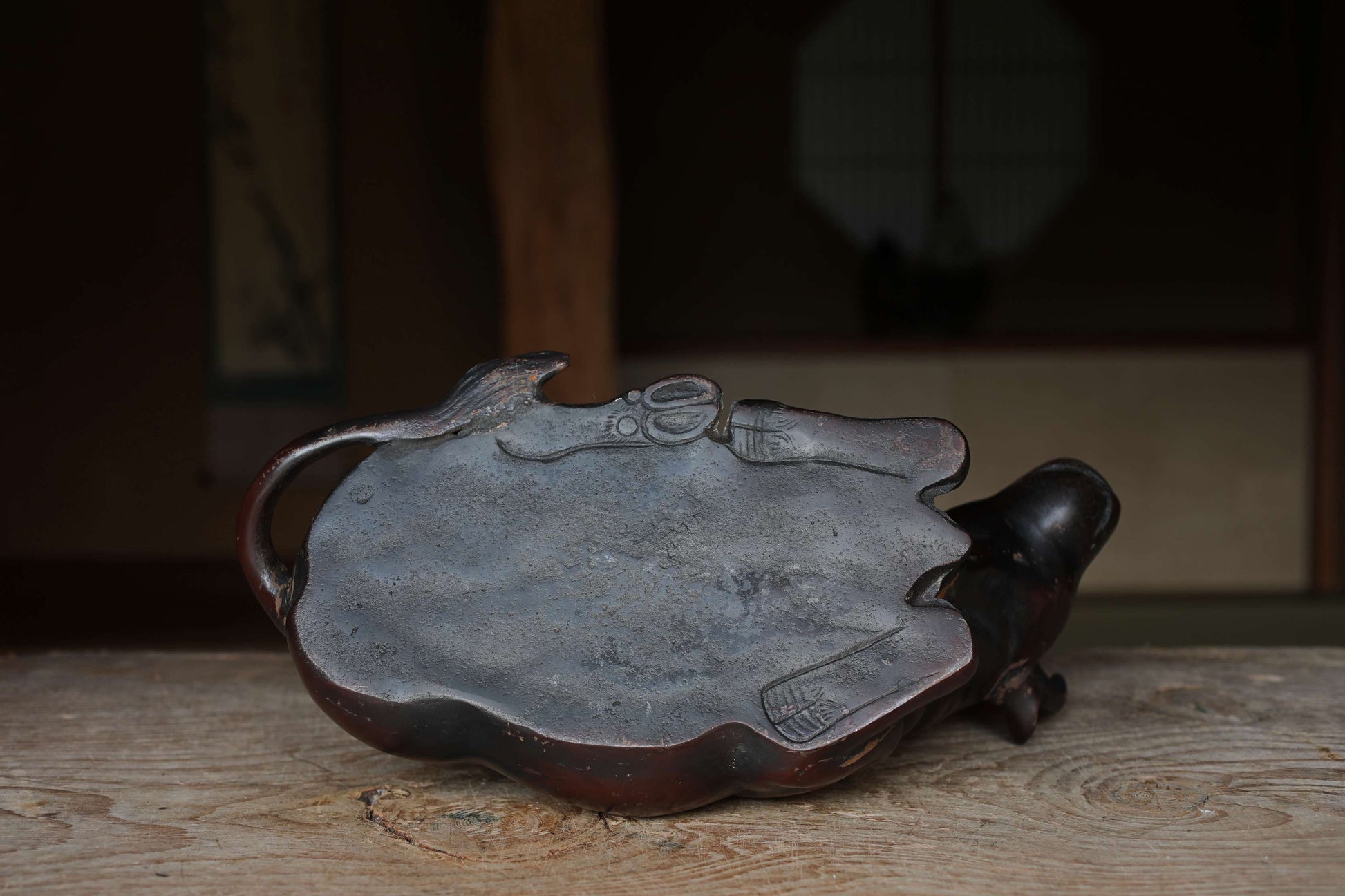 Japanese cast iron Cow Large Figurine, Vintage Animal Art (W16.3in/W41.5cm)
