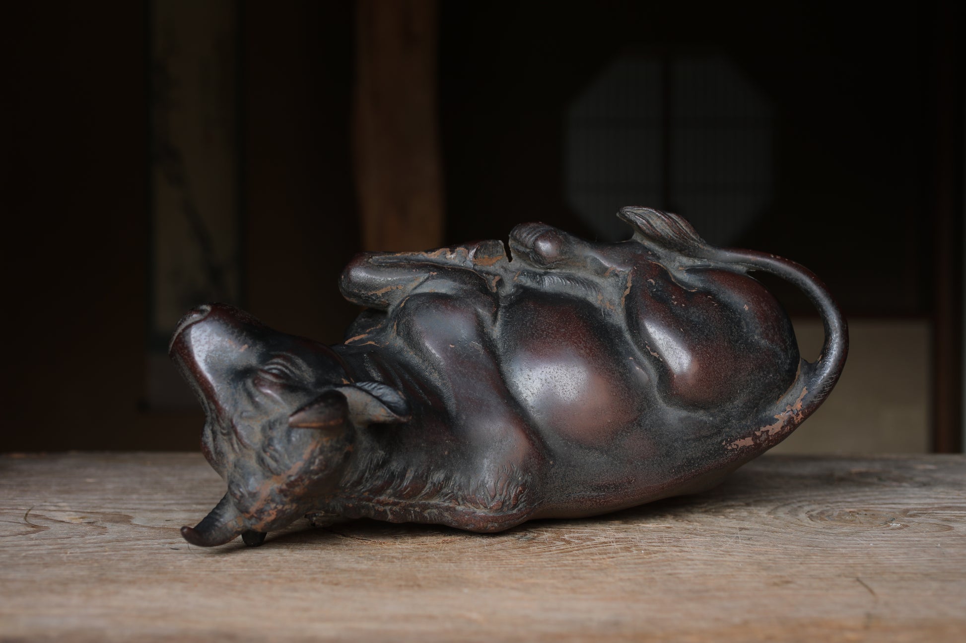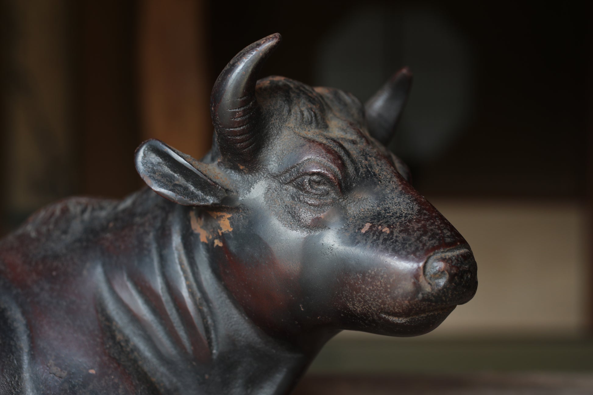 ◻︎Item: Large Japanese Cast Iron Cow Figurine (Nade-Ushi style)