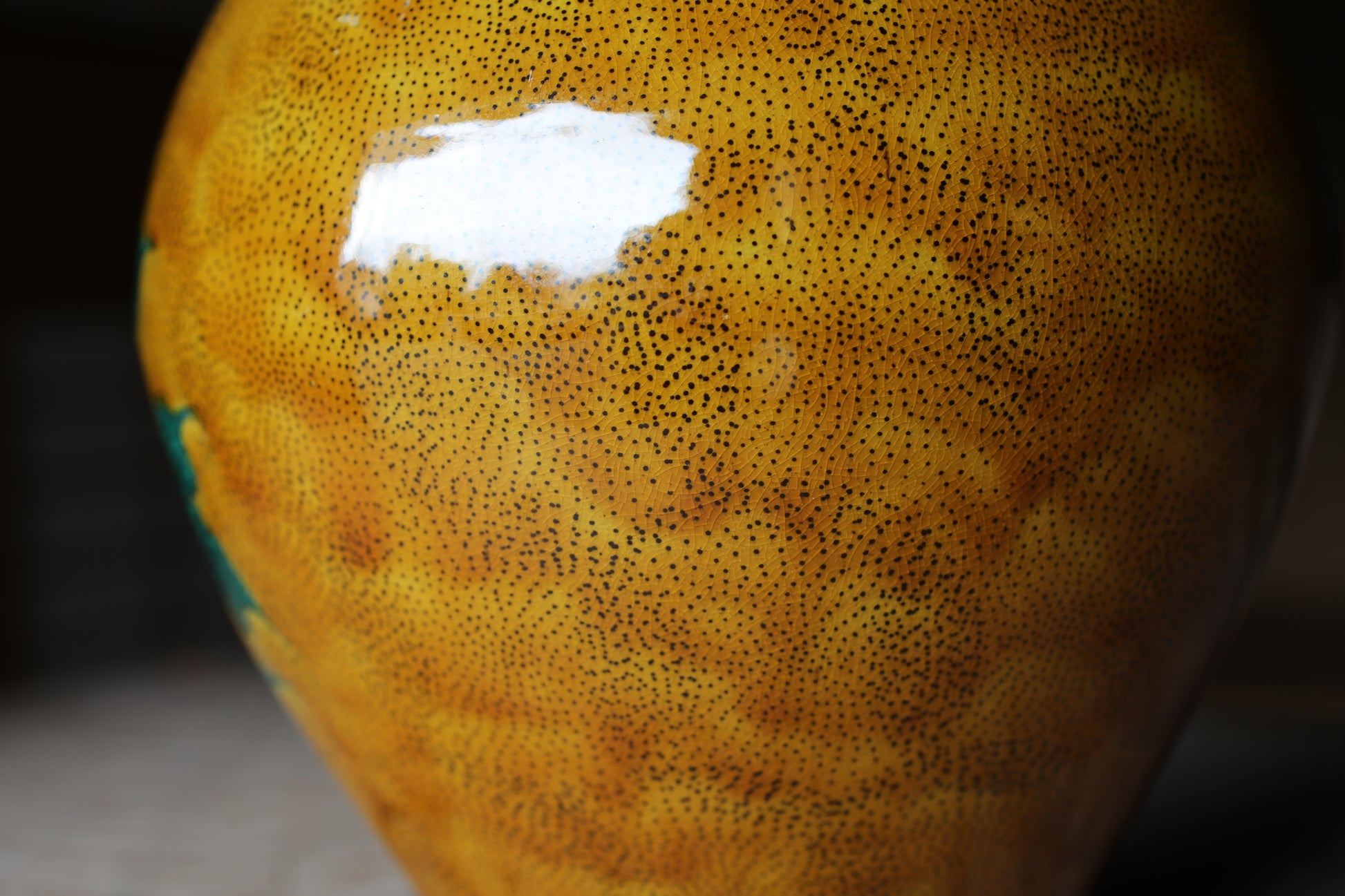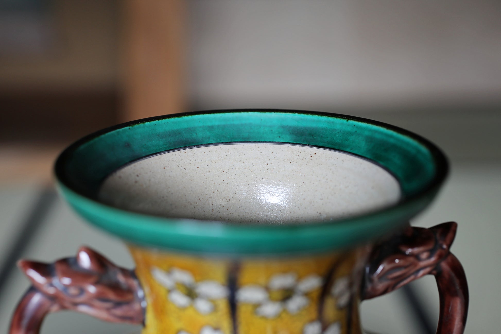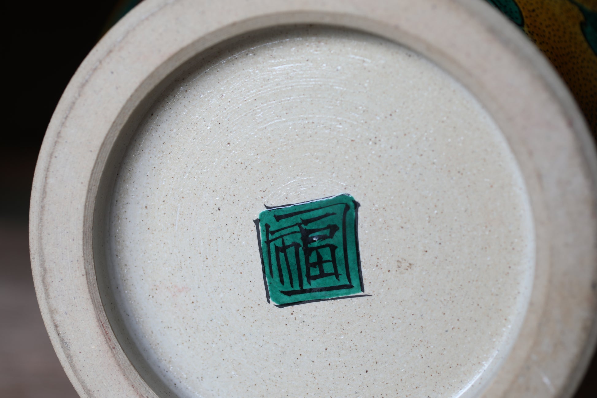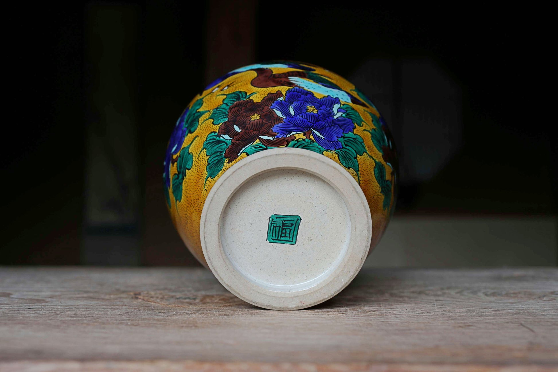 Kutani Ware Large Jar with birds and flower,Yellow & green Vase (H11.8in/H30cm)