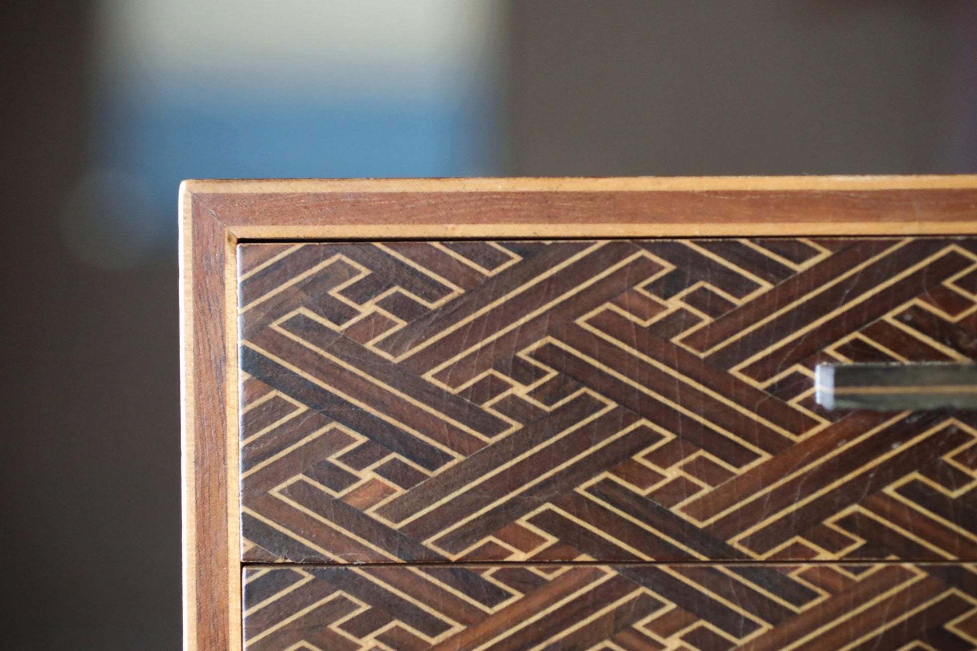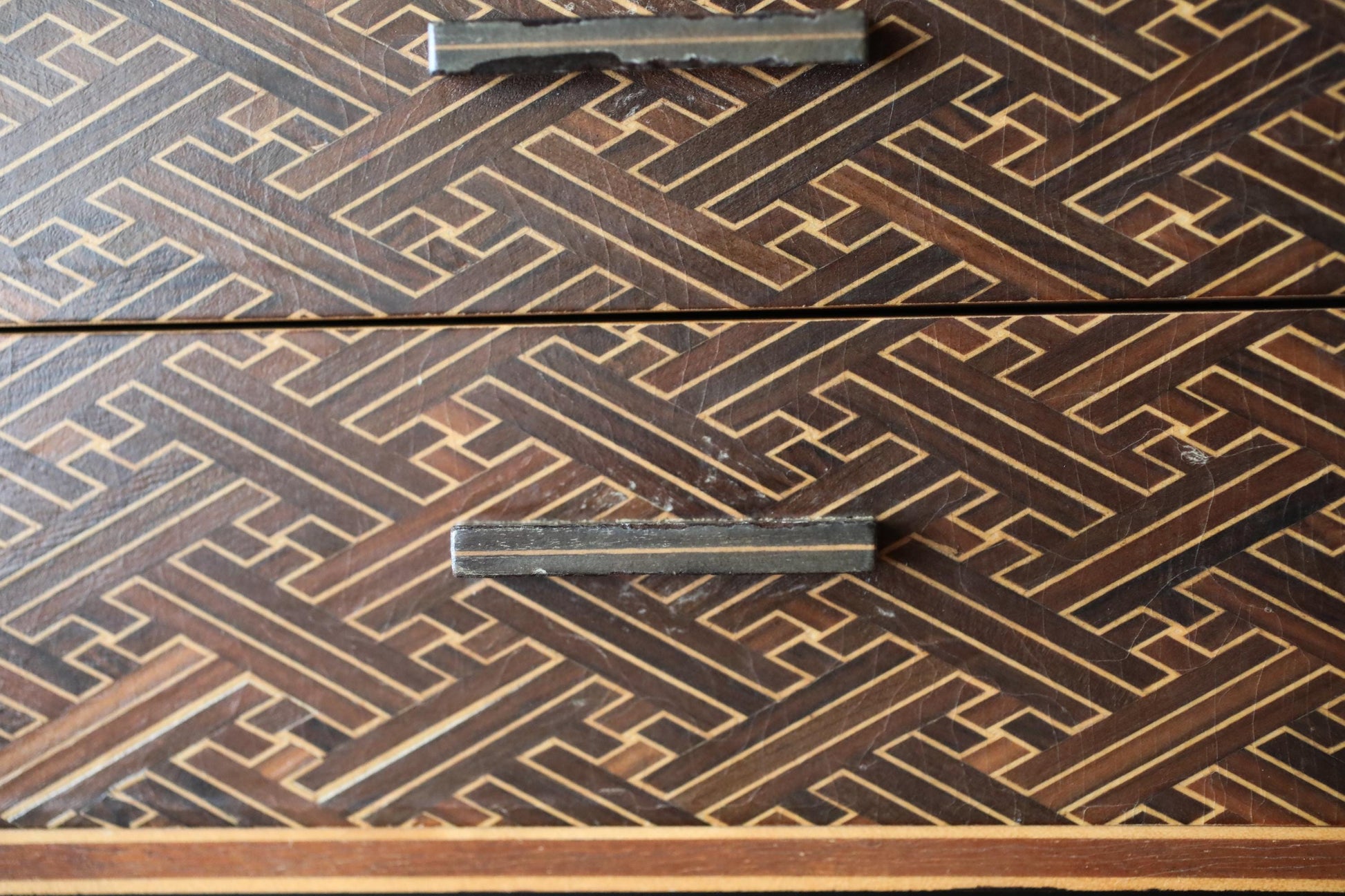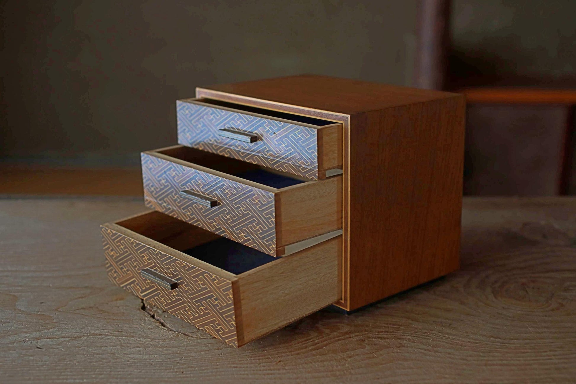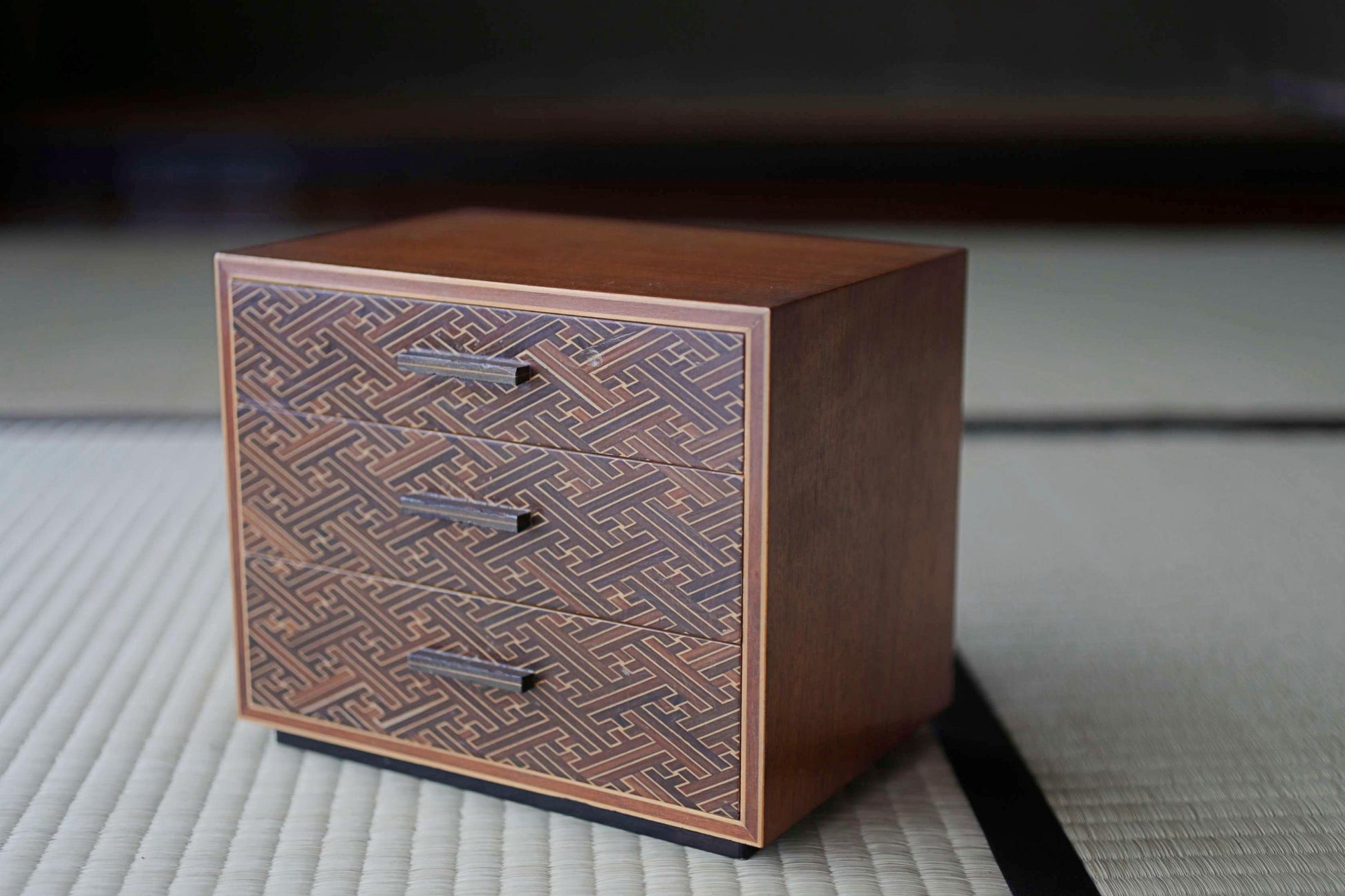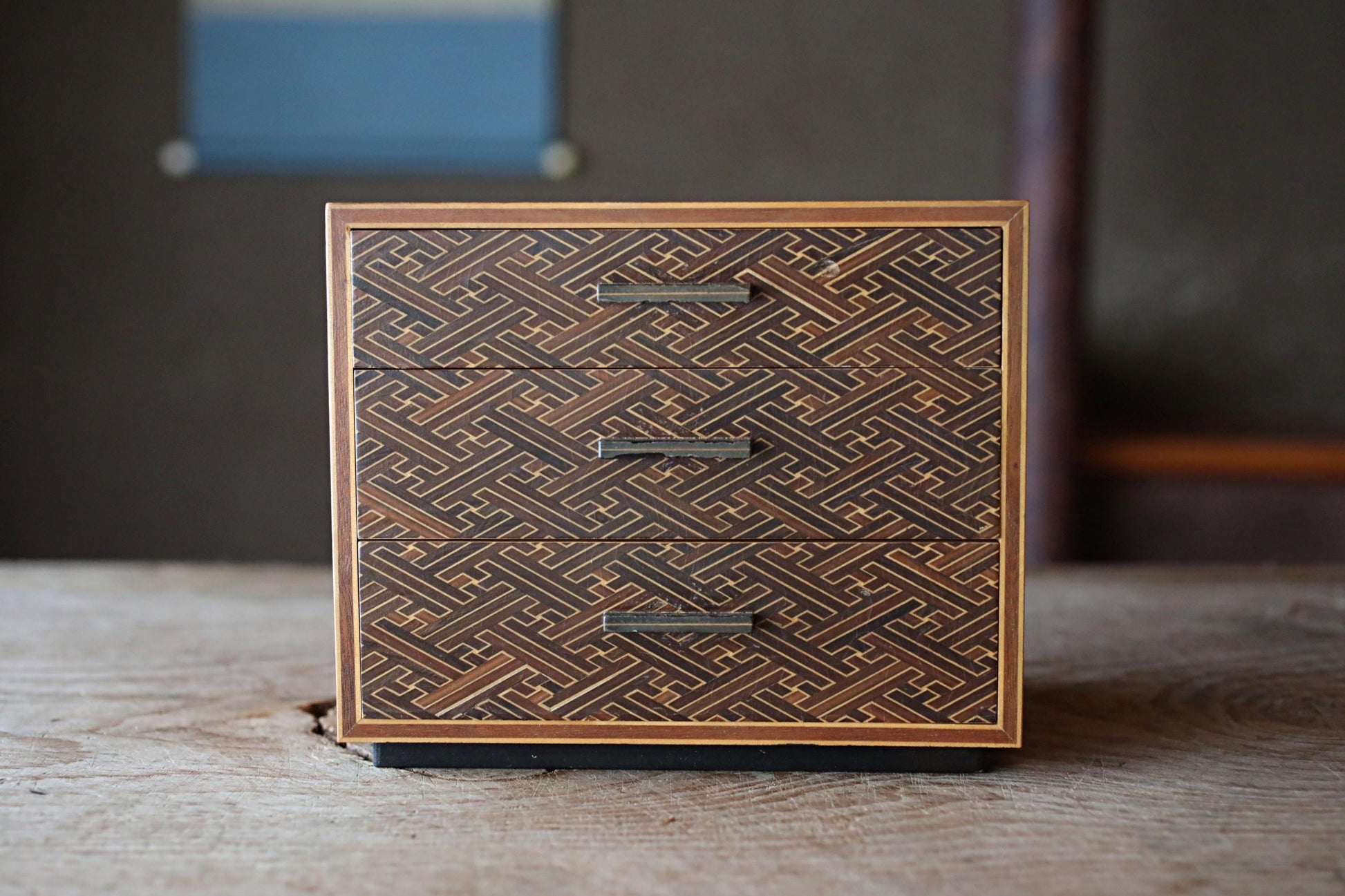 Japanese furniture Small Chest of drawers "tansu" Yosegi marquetry wood mosaic work design hand craft H7.1×W8.3×6.2in/H18×21.2×15.7cm