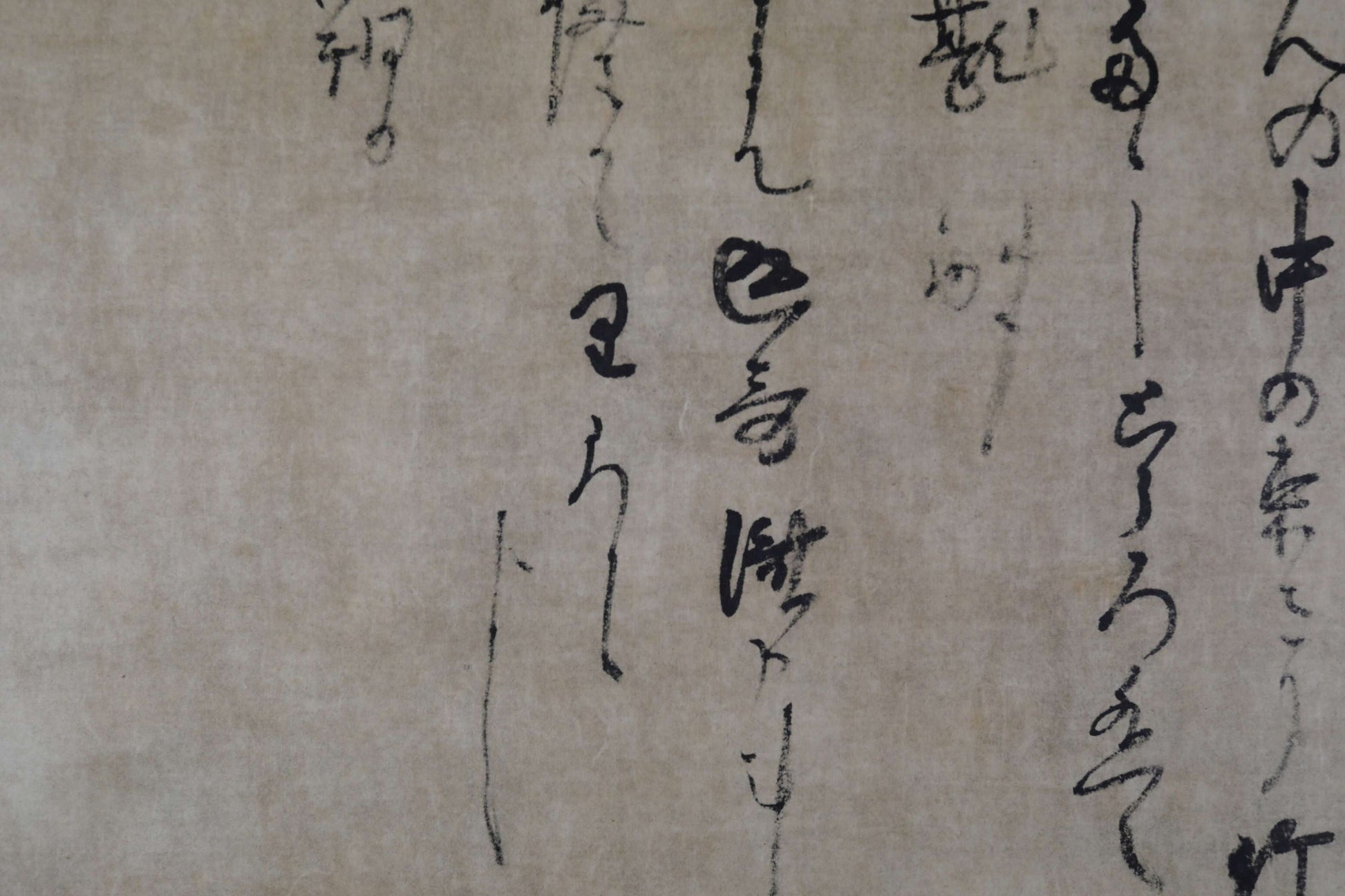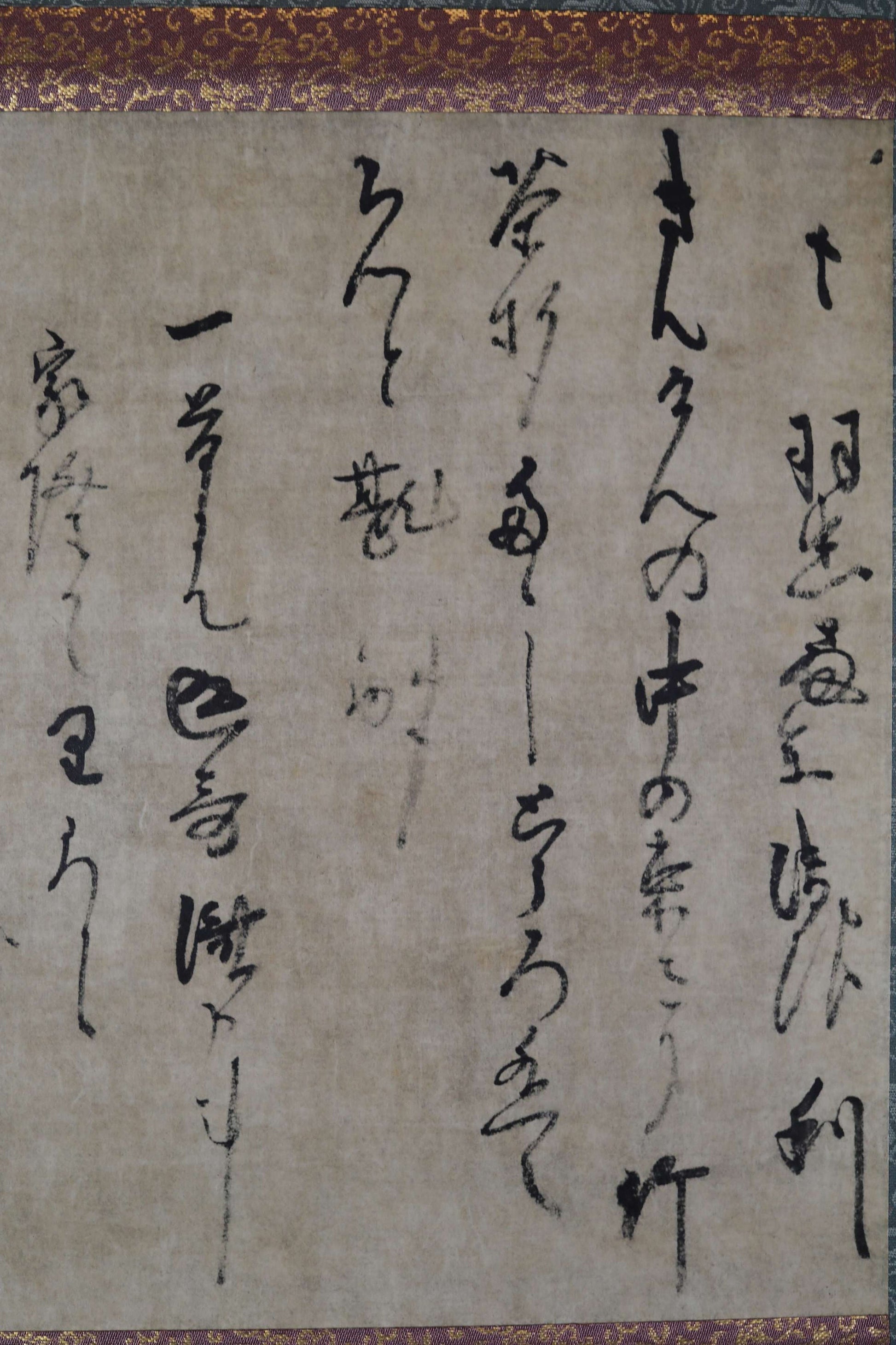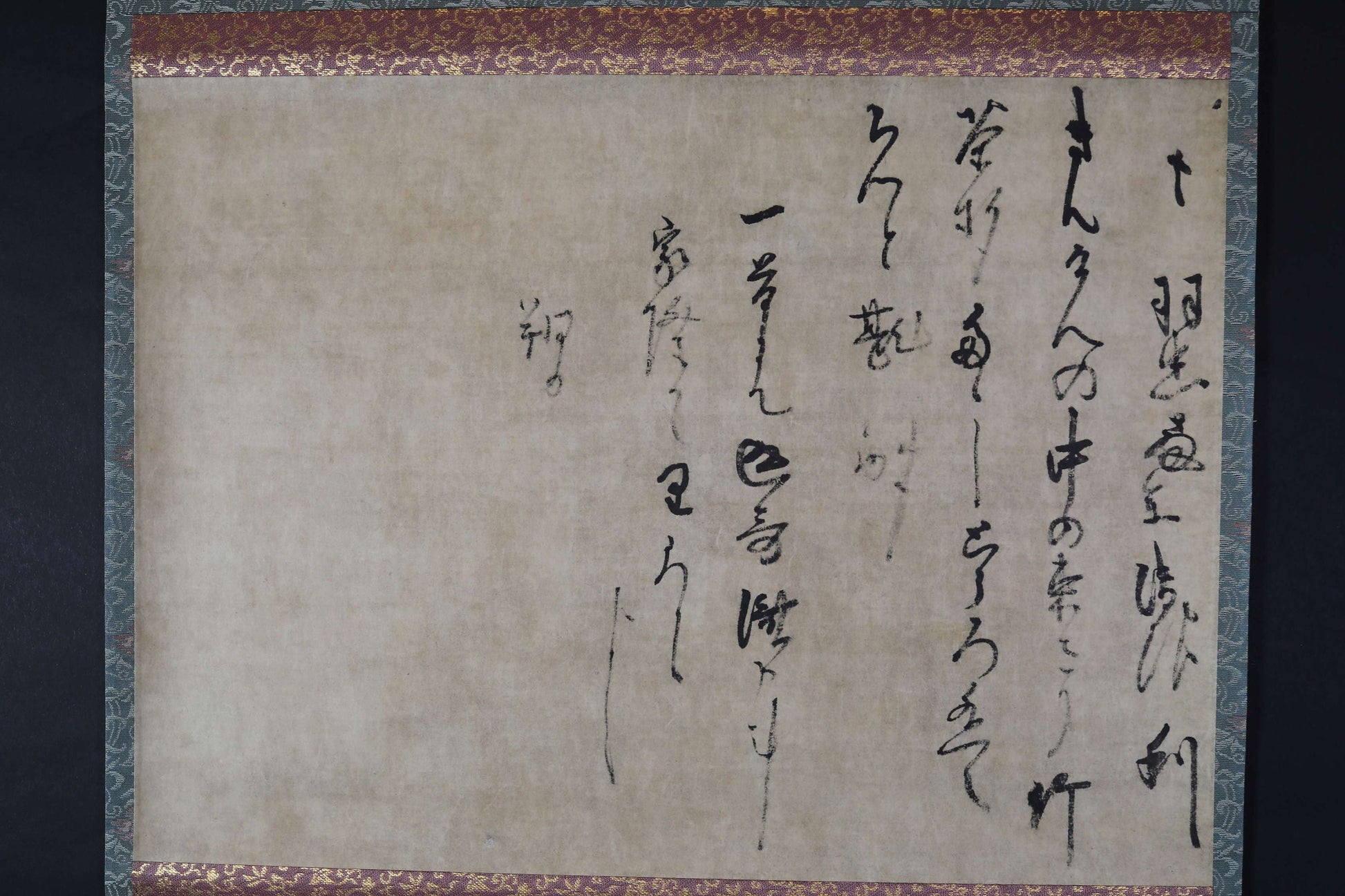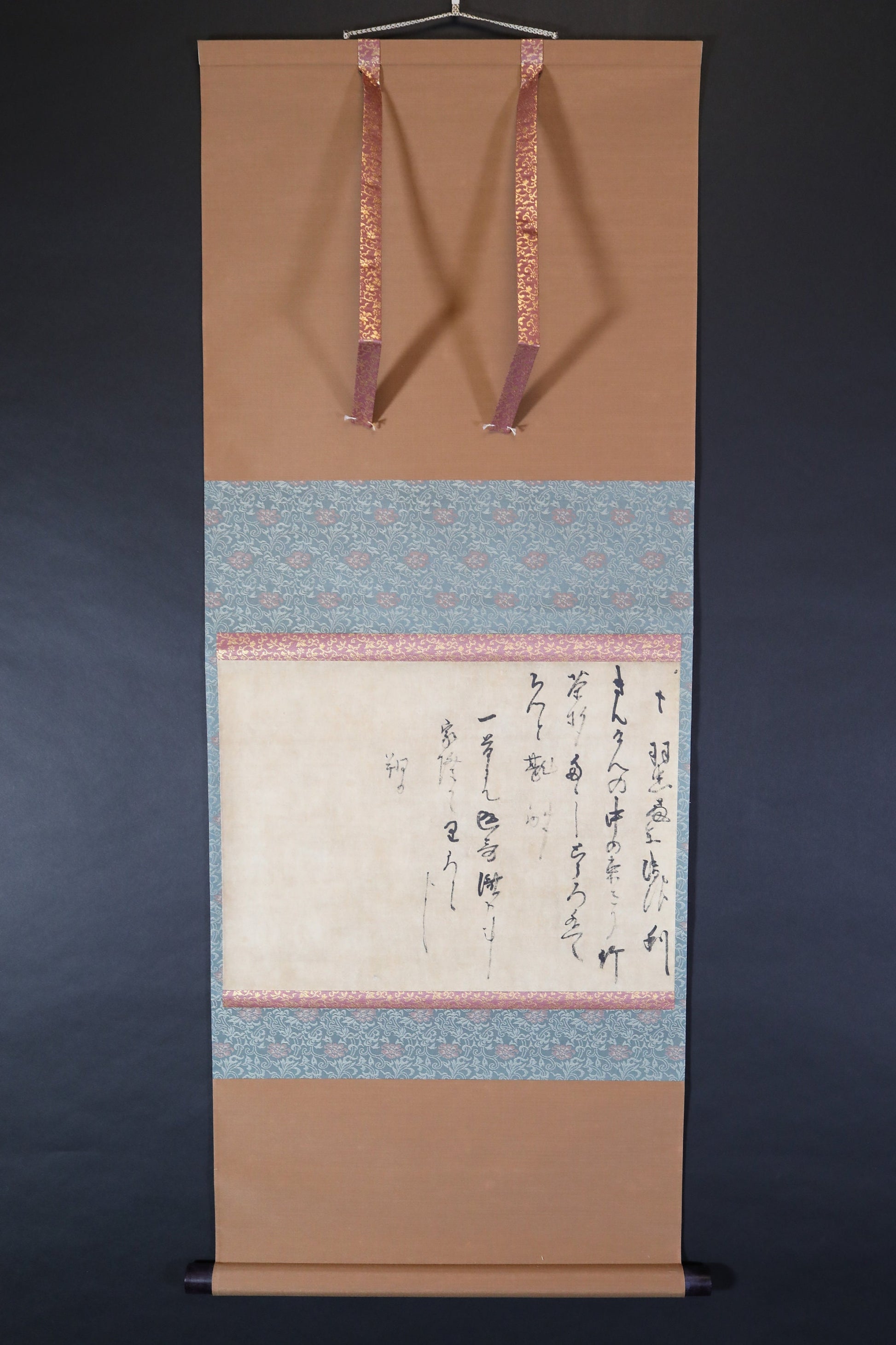 It is in very good condition, This is a hanging scroll made from a high-grade print of an actual letter by Rikyu.