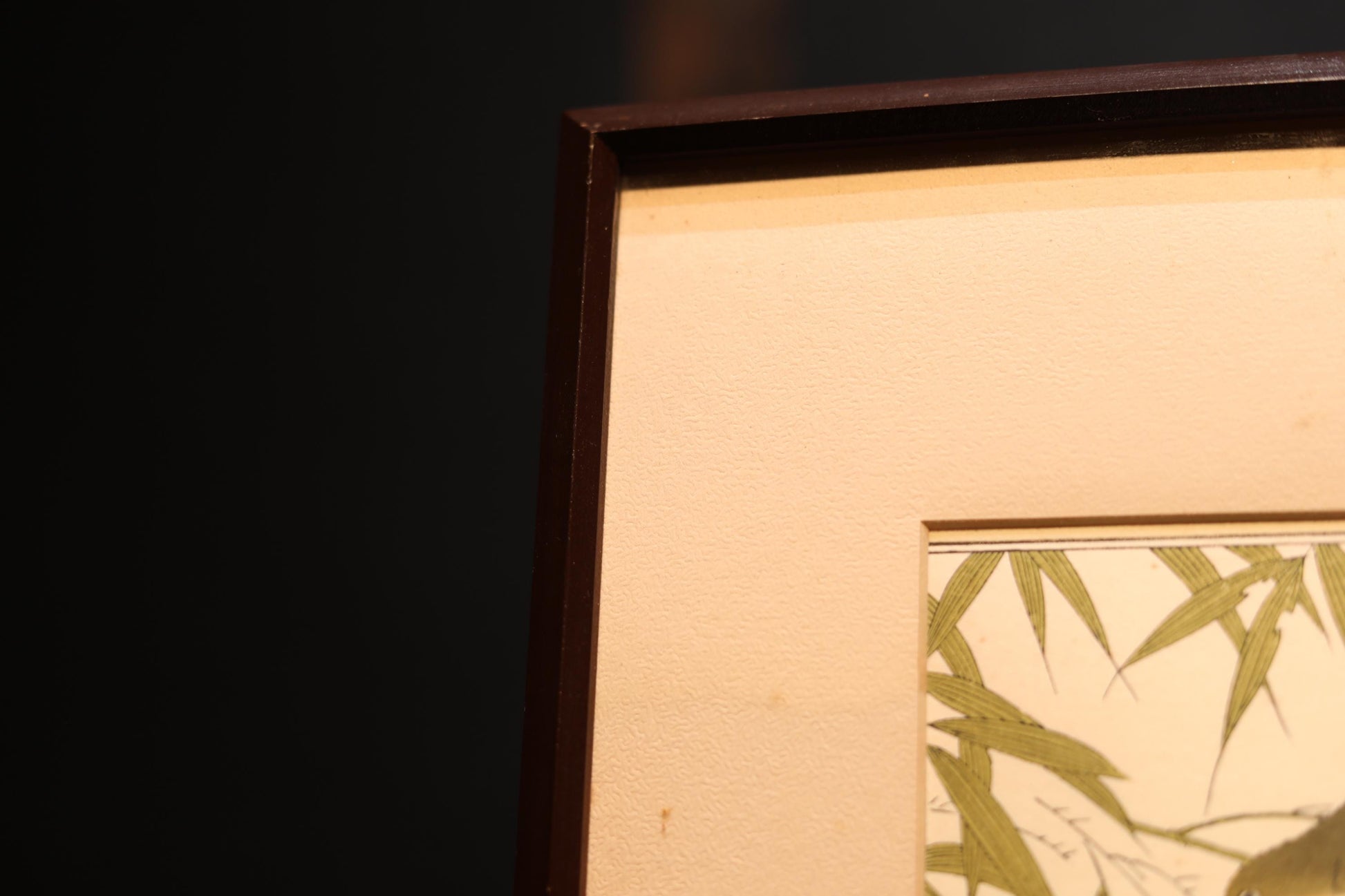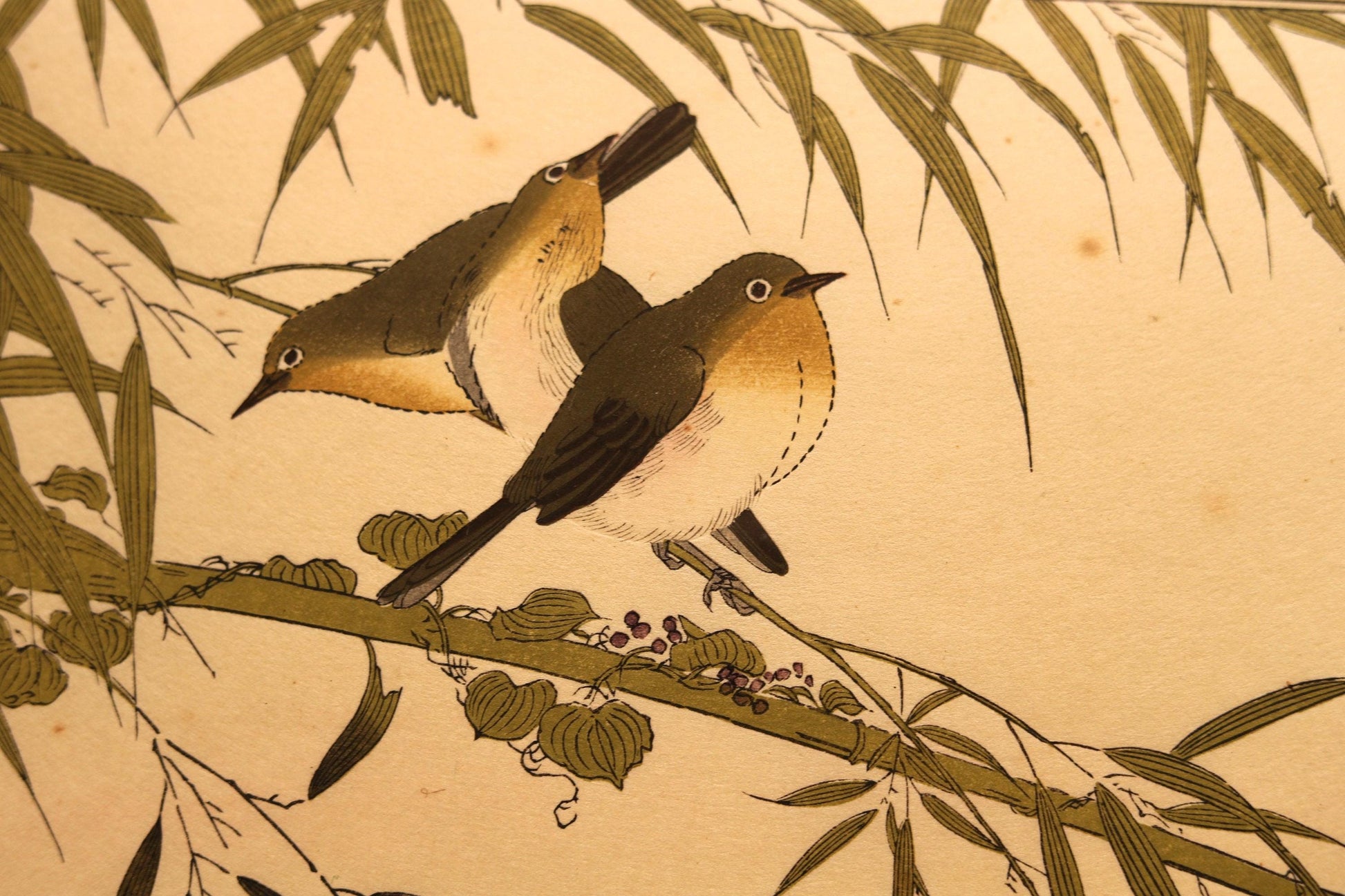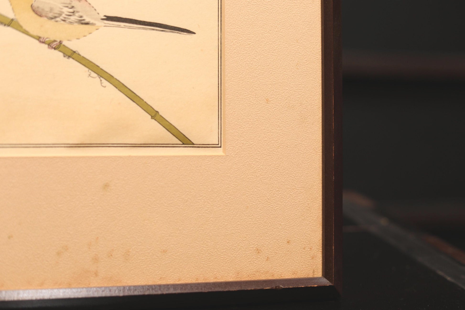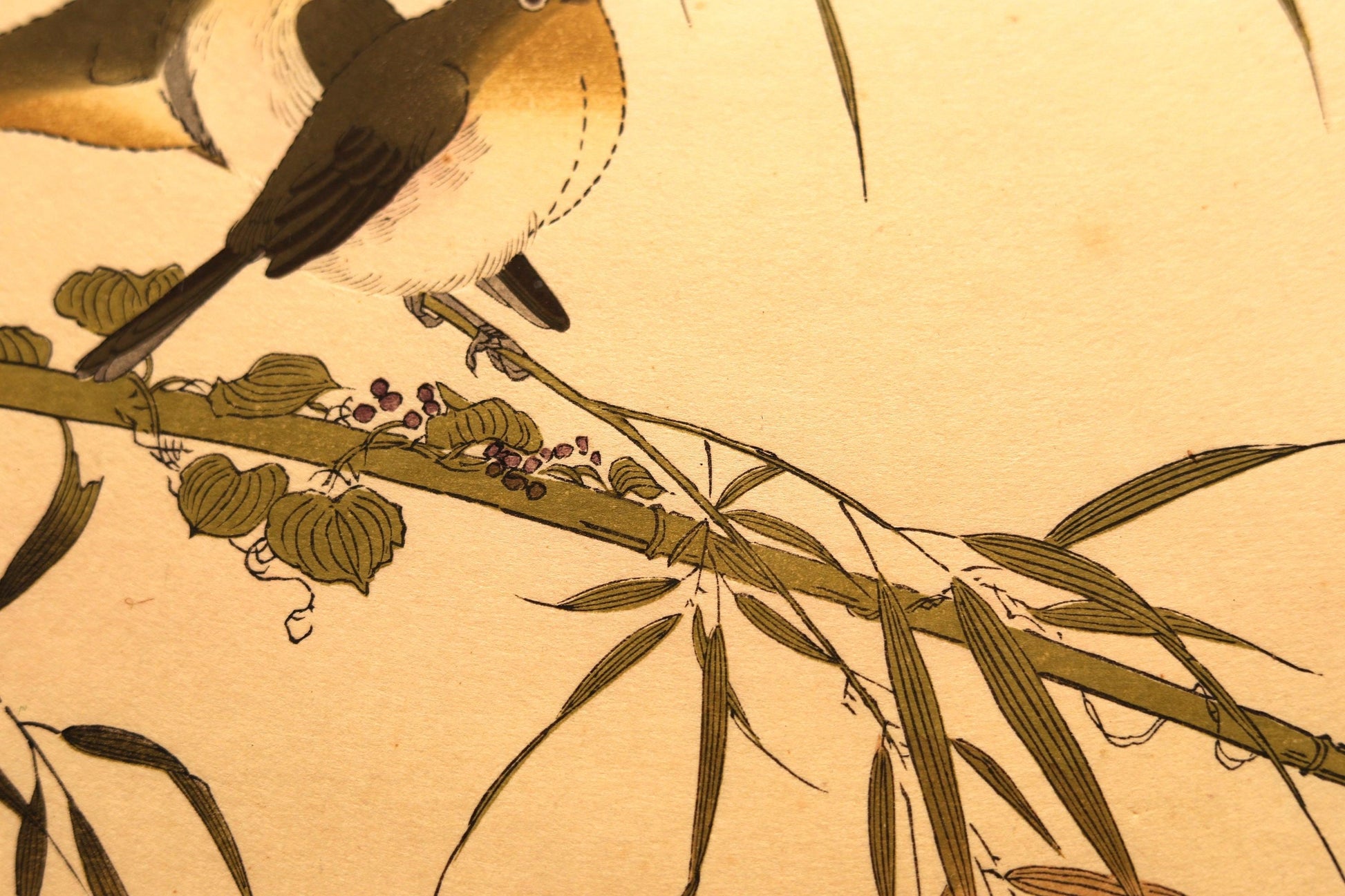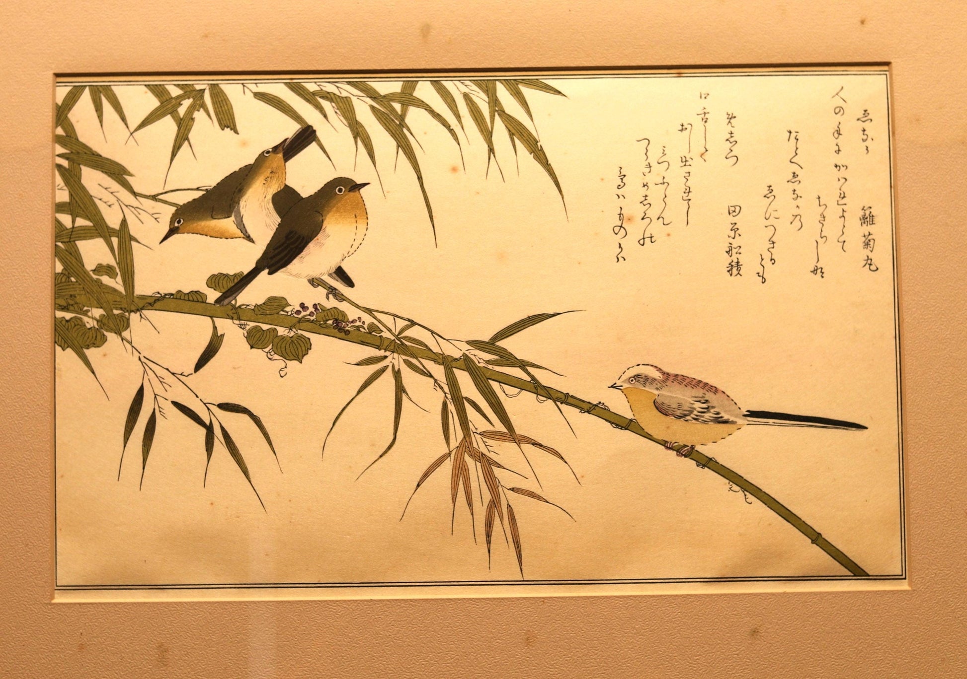 On the top are Japanese poems written by the artist about the white-eye and Long-tailed, respectively.