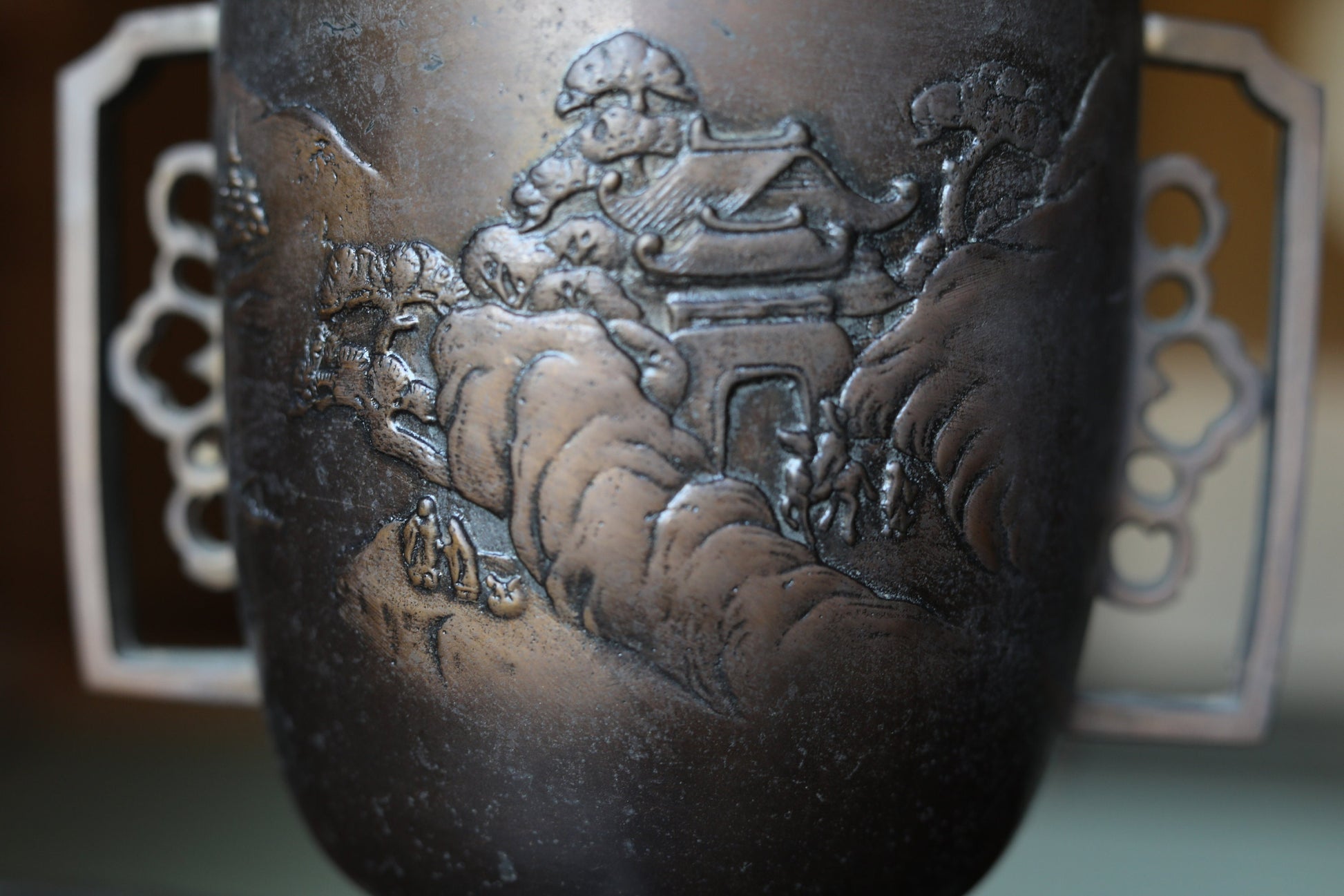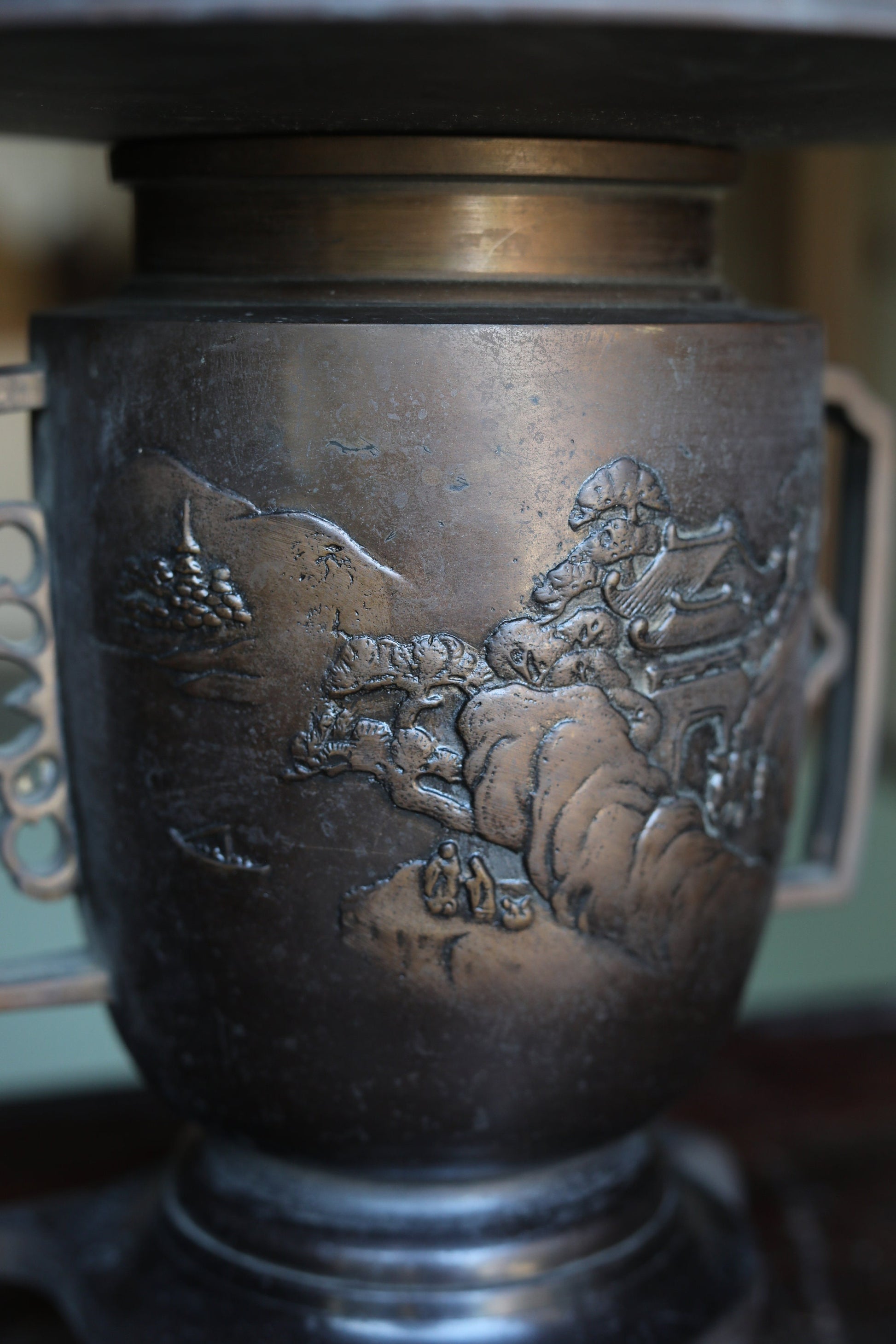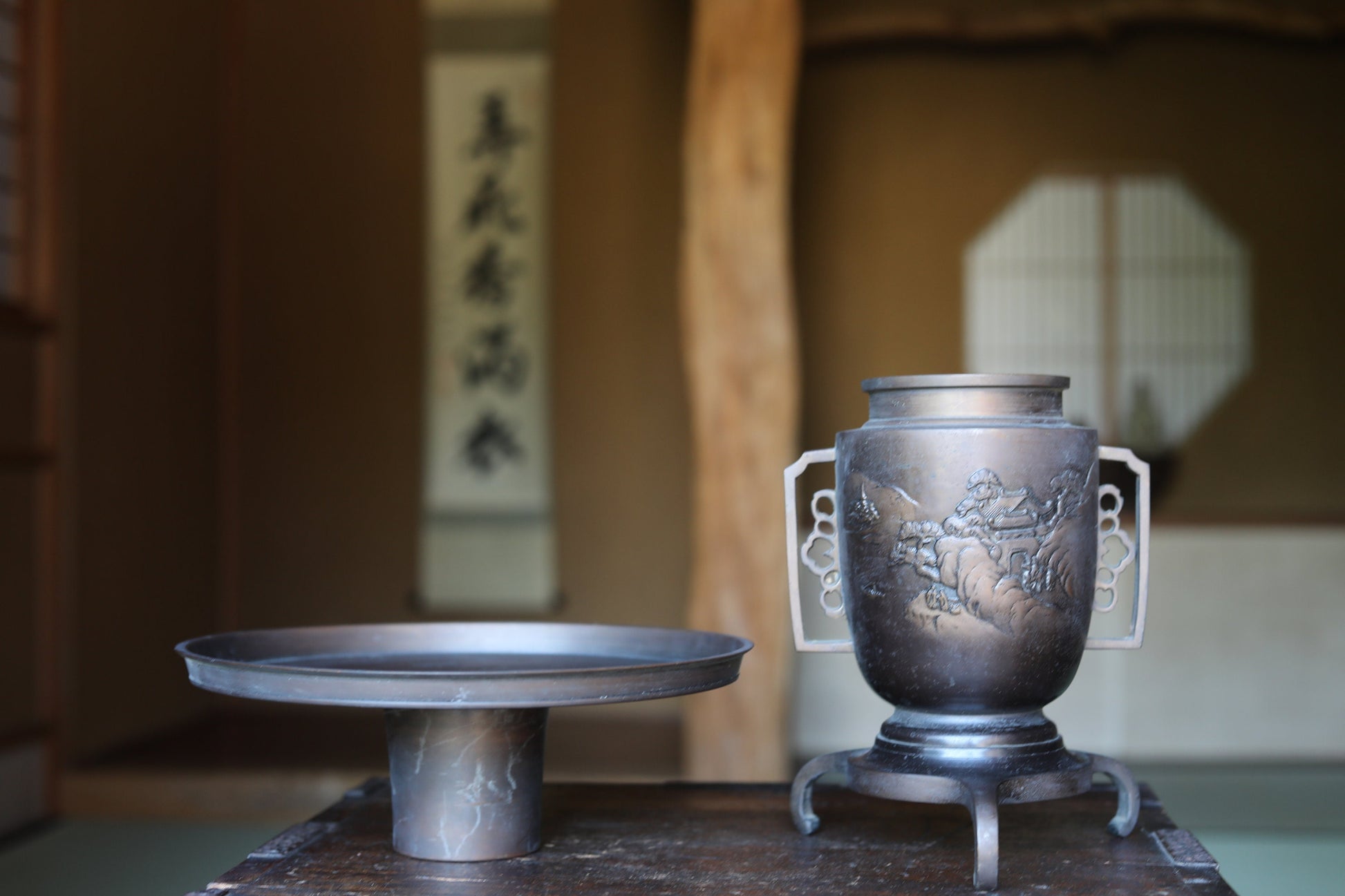 Japanese vintage bronze flower vase Japanese furniture in traditional temple style Japanese garden design with Kanji sign H10.6in/H27cm