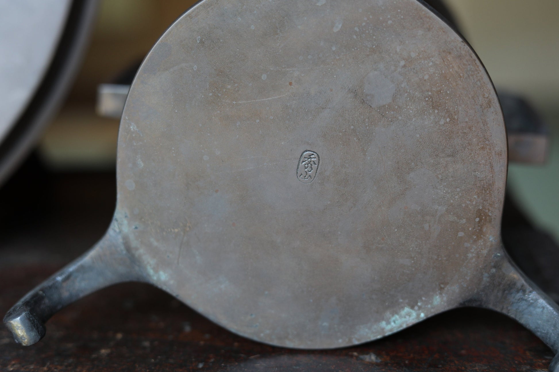 Japanese vintage bronze flower vase Japanese furniture in traditional temple style Japanese garden design with Kanji sign H10.6in/H27cm.