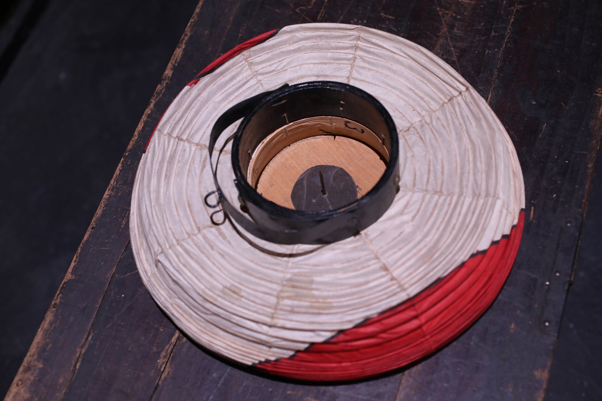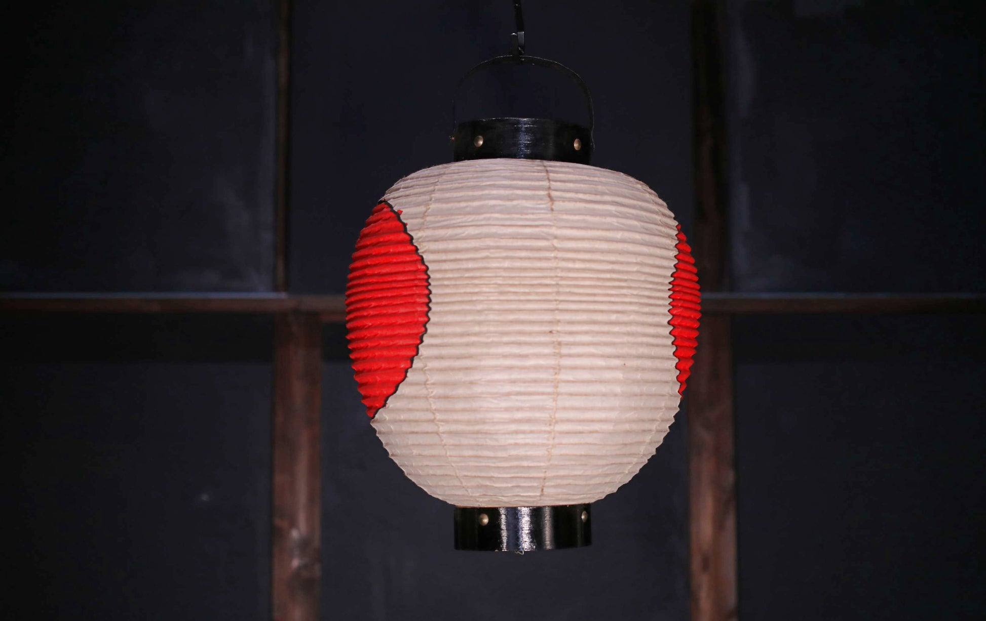 Japanese vintage hanging paper lantern with red circle Candle holder for the shrine Festival Light offered to God "chouchin" H16.1in/H41cm