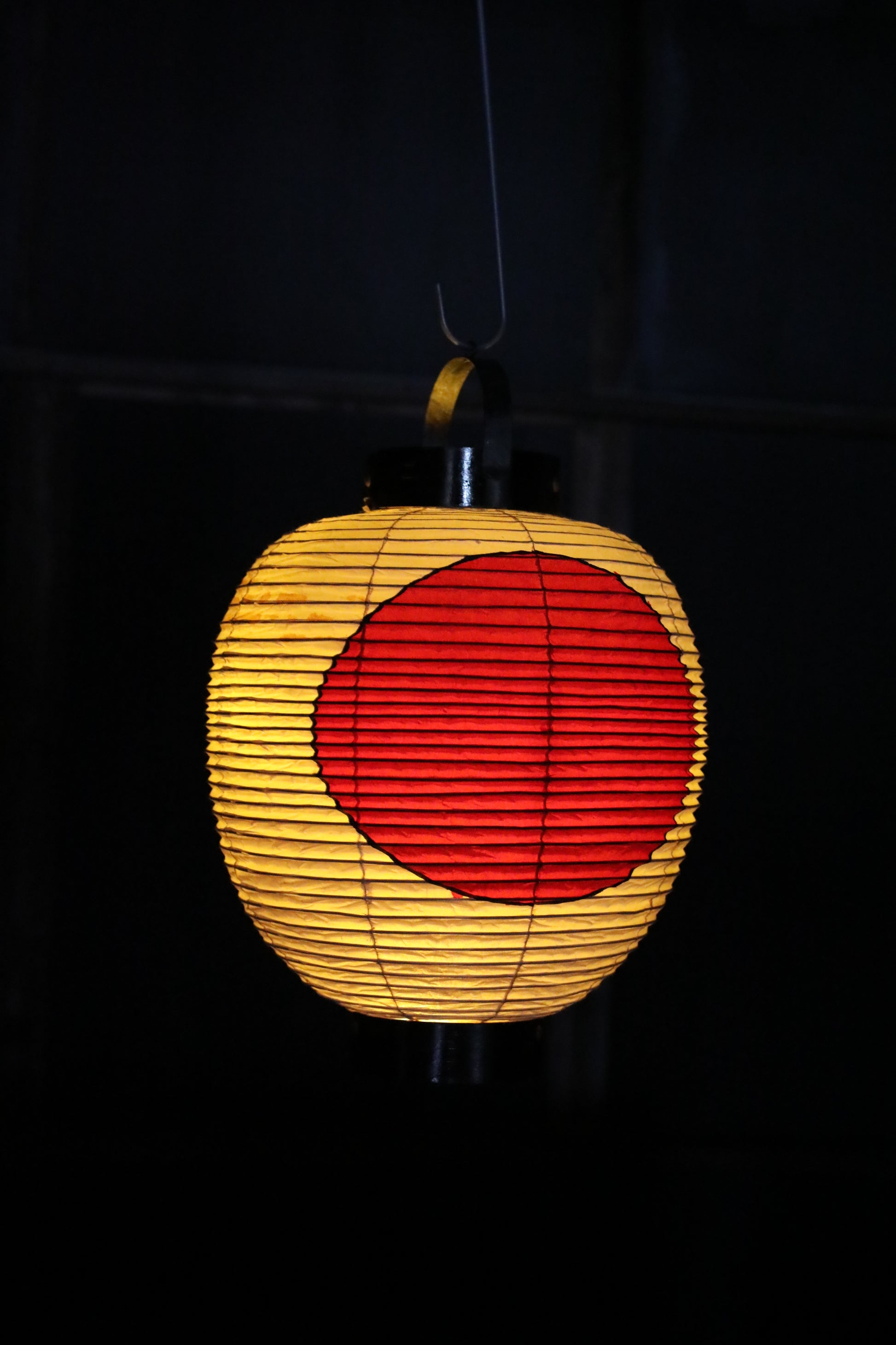 Originally, it was made to decorate stalls at festivals held at Japanese shrines. It features a red circle design because in Japan and China, the color red has long been considered a symbol of good fortune, prosperity, warding off evil spirits, and lively gatherings. Furthermore, since the Edo period, the red circle evokes the image of fire, leading to the custom of hanging red lanterns as markers for restaurants and eateries.