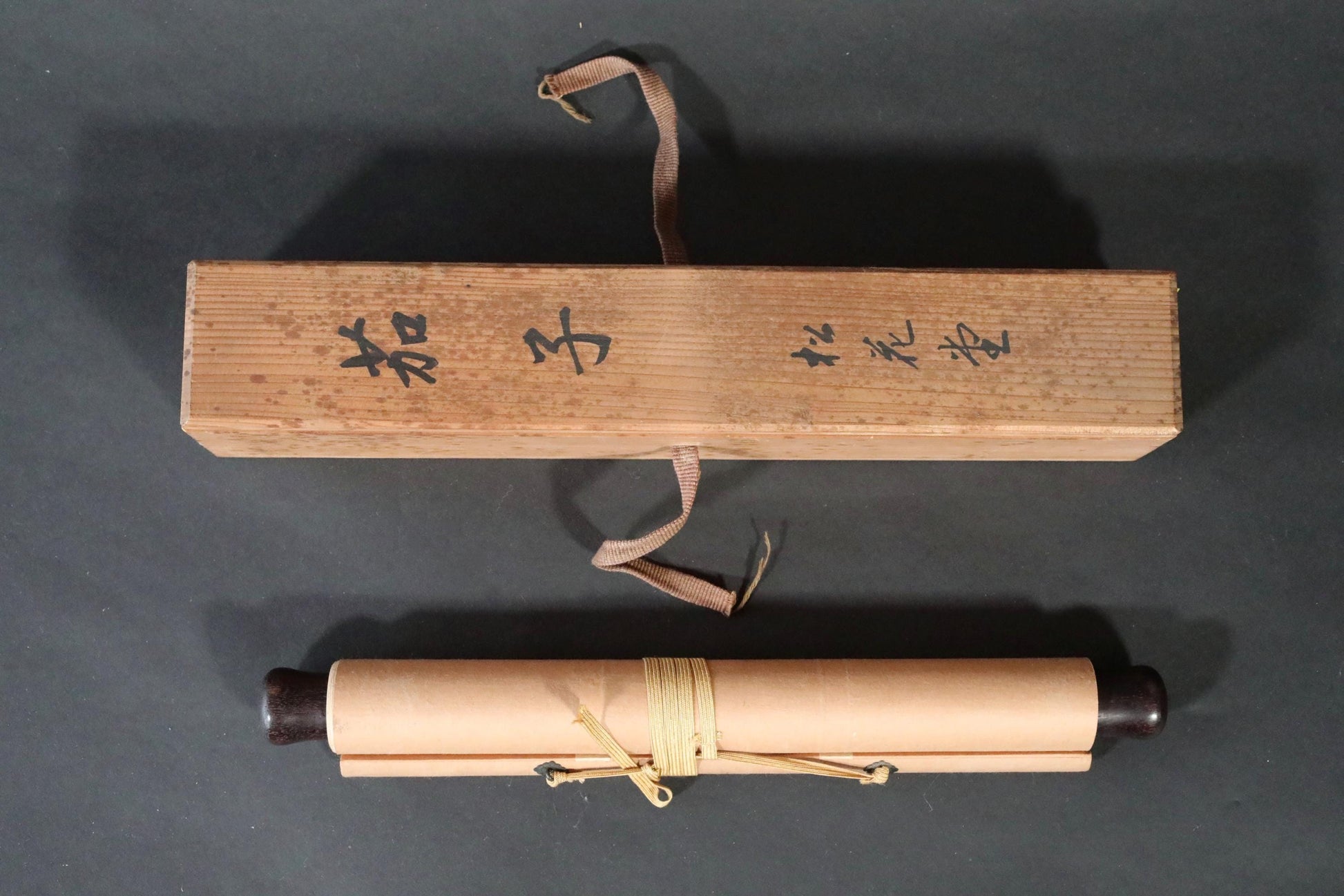 This is a small hanging scroll made for the tea ceremony by printing and reproducing pictures painted by a monk in the Edo period. Even though it is a replica, it is a high-end item made in the 1960s by a store specializing in hanging scrolls in a limited edition.