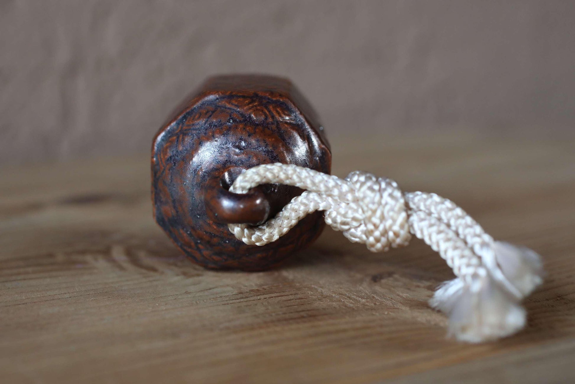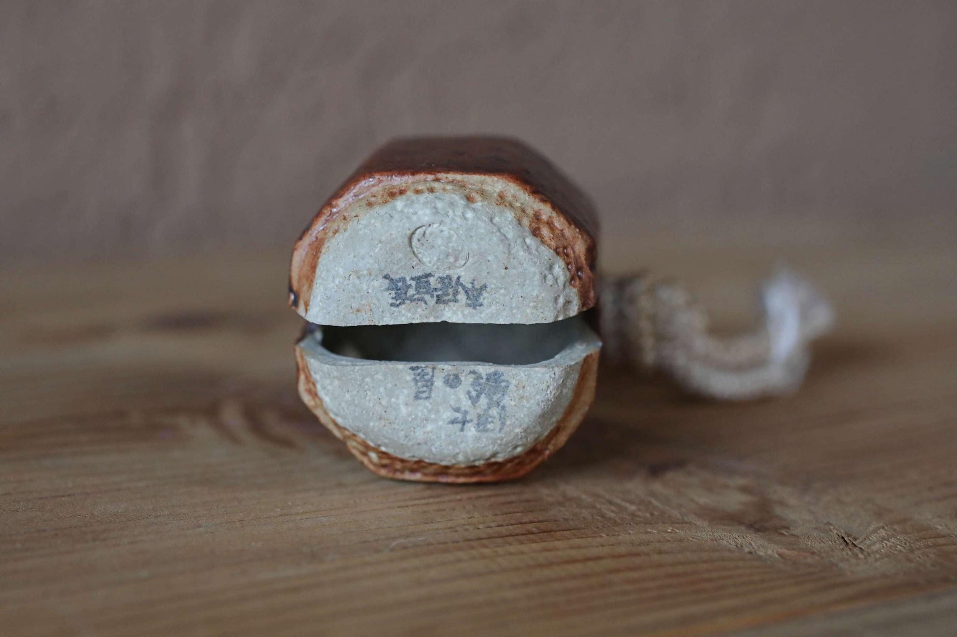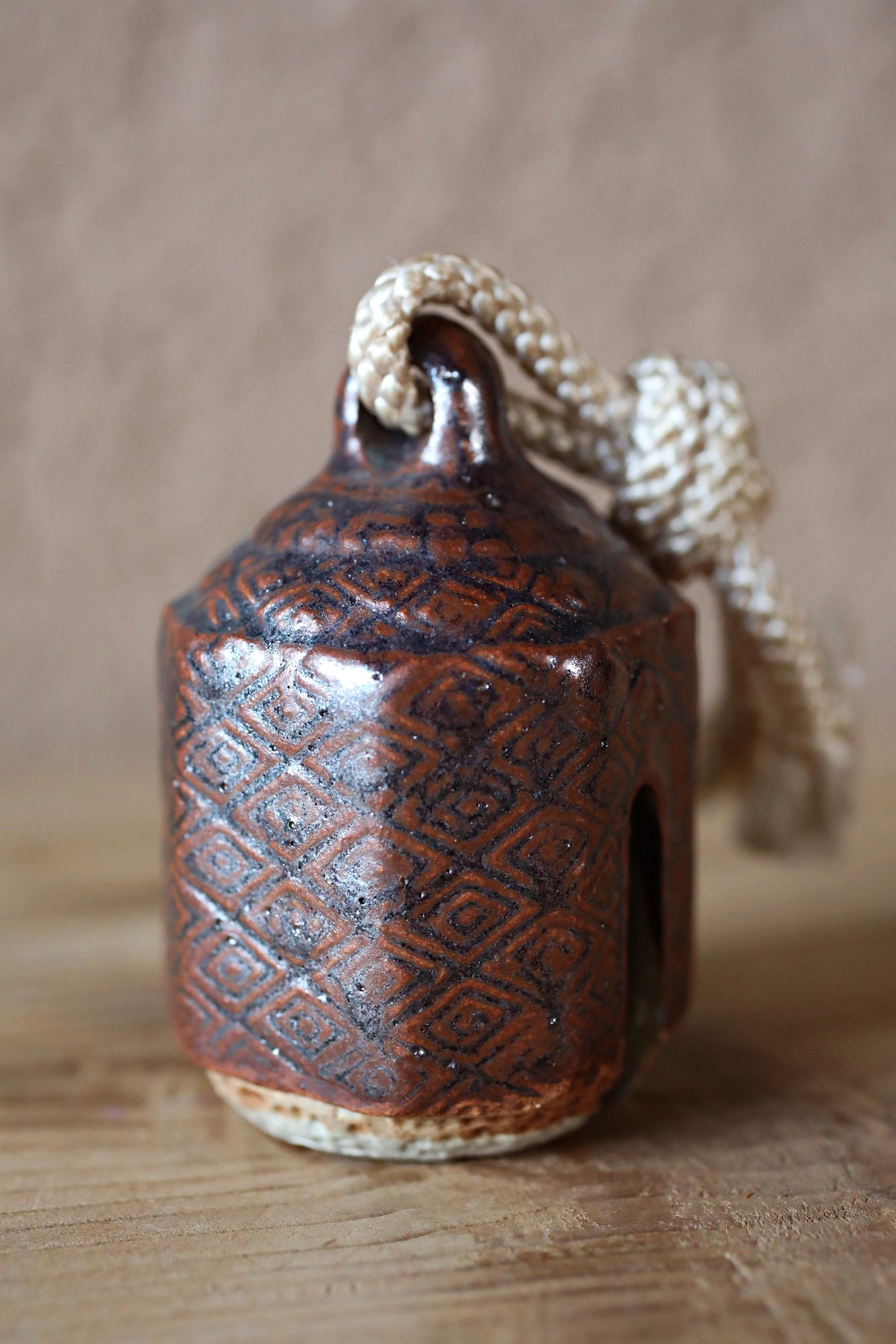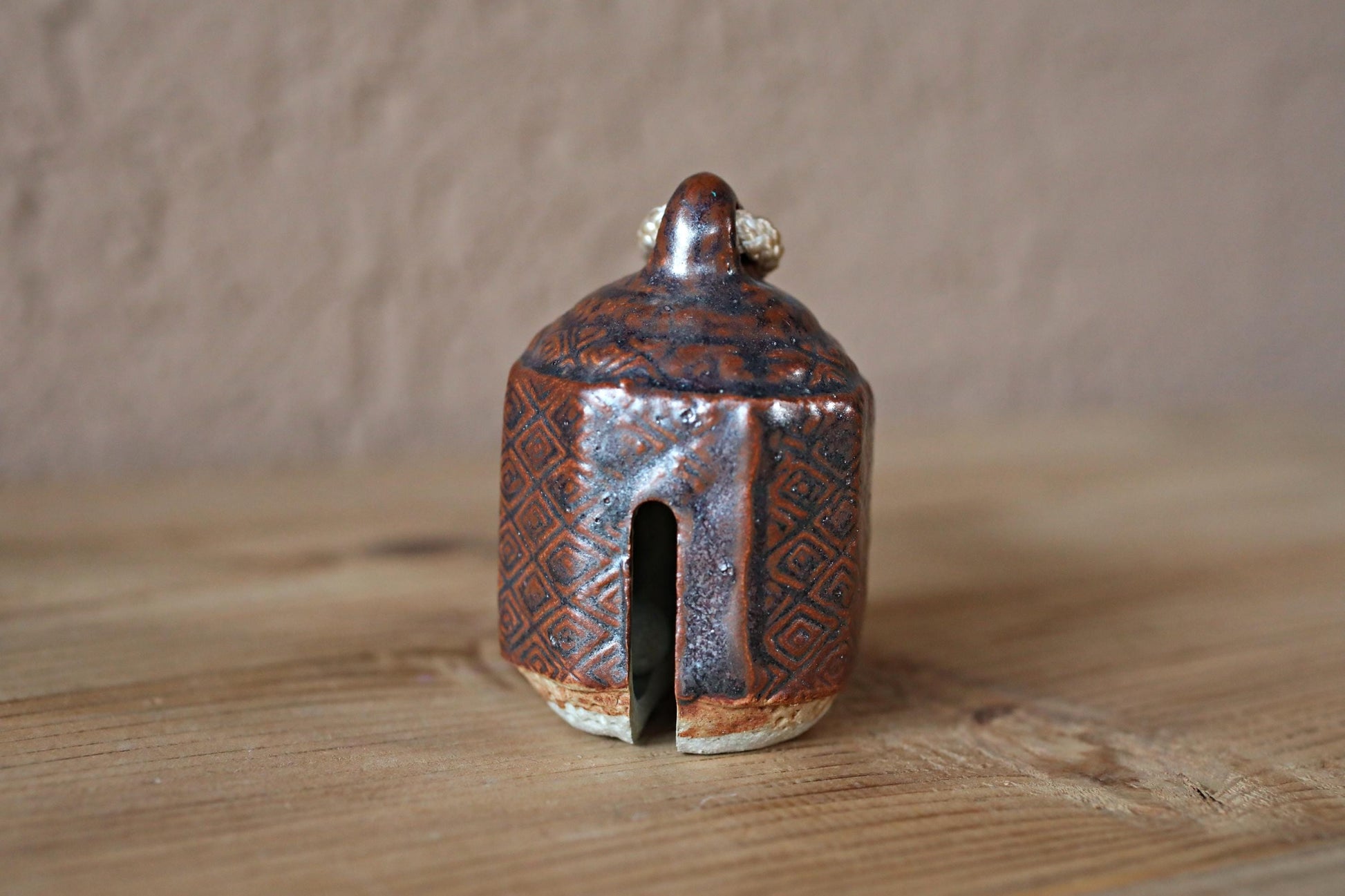 Japanese vintage pottery small bell with pattern Edo Period Reproductions, Paper weight H3in×2in/H7.5×5cm.