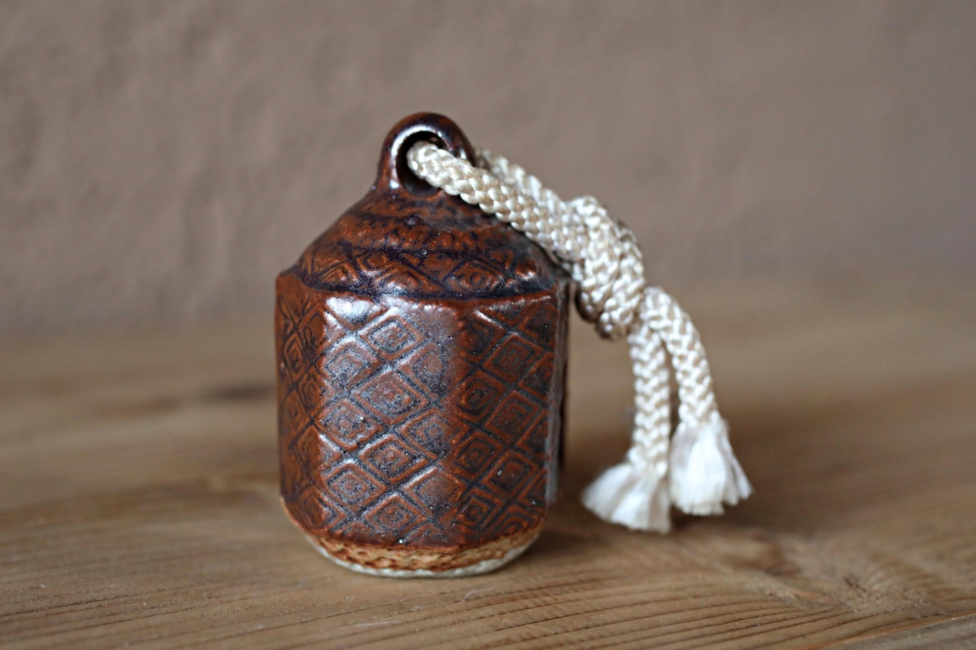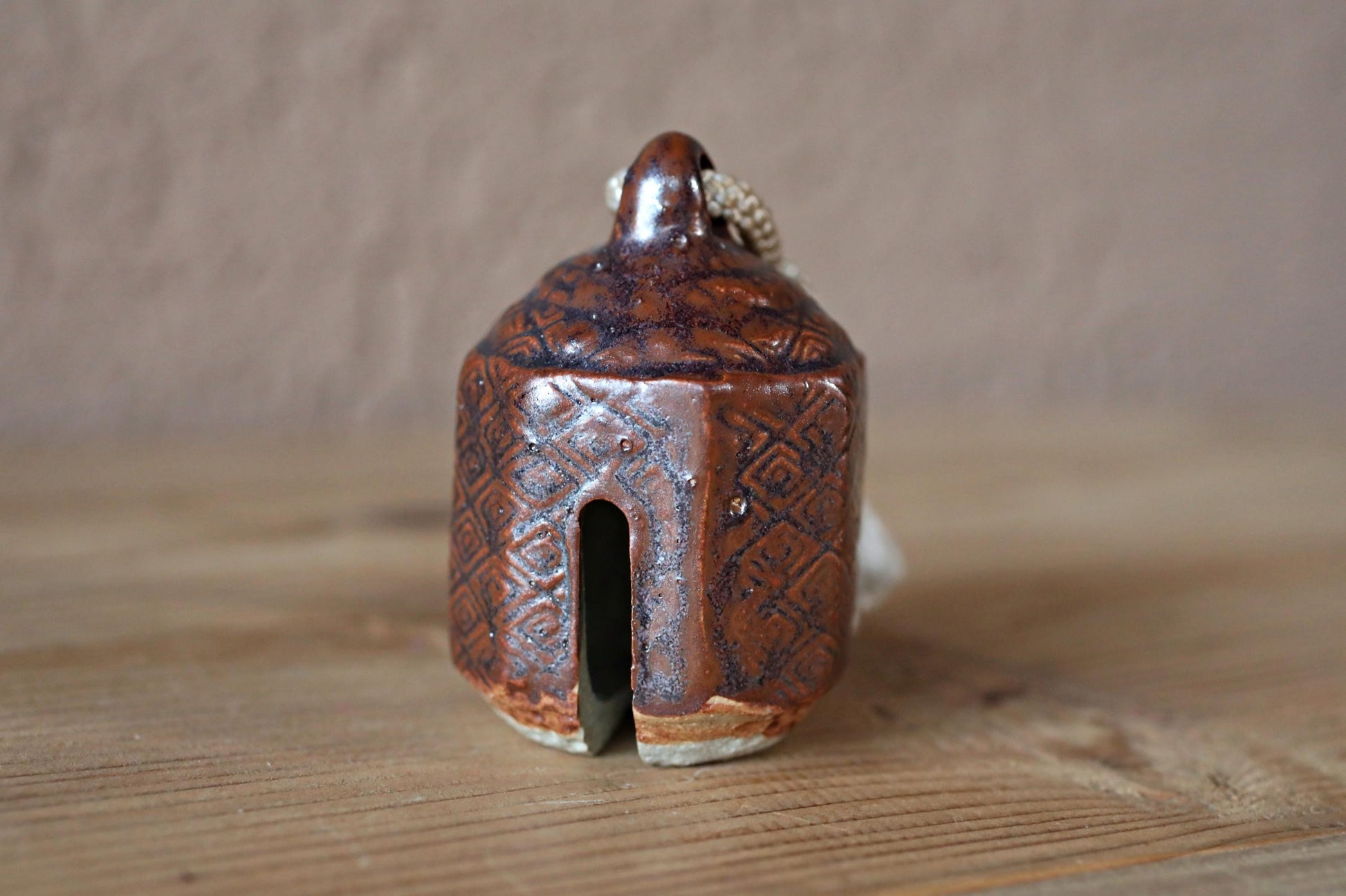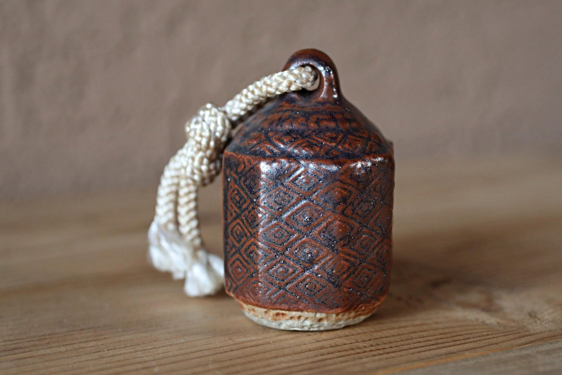 This pottery bell is made by reprinting the "octagonal iron bell made in the Edo period. There are three octagonal bells, imitating the bells of the late Edo-period scholar Norinaga Motoori. This shape seems to have been created based on the ekirei bell.
