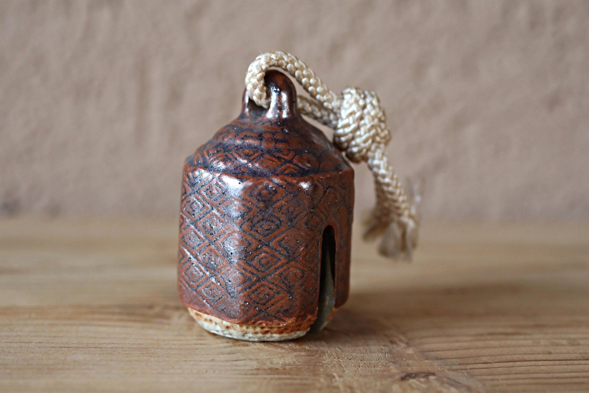 Japanese vintage pottery small bell with pattern Edo Period Reproductions, Paper weight H3in×2in/H7.5×5cm