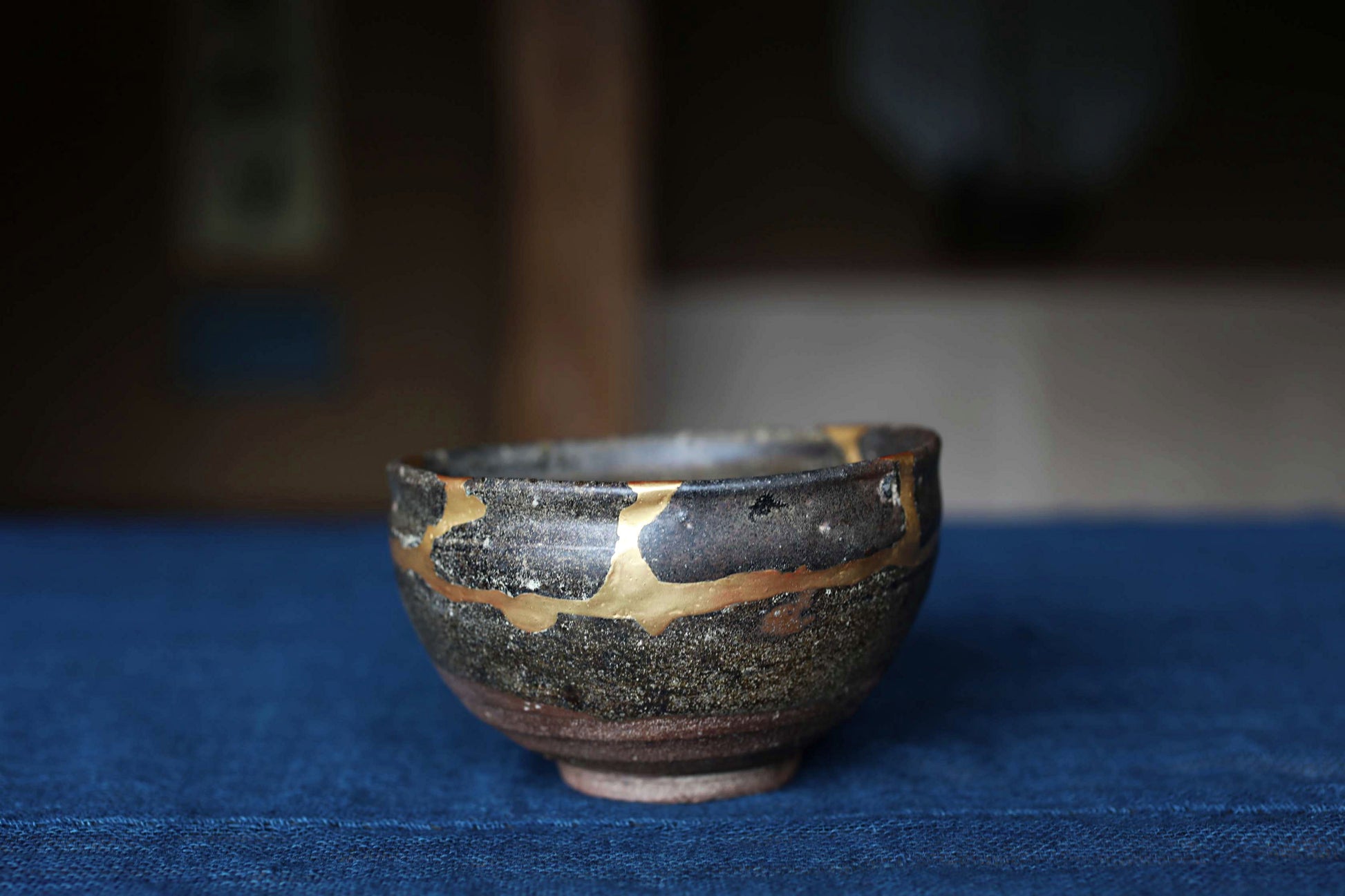 This tea bowl is the opposite of perfect. However, gazing at it, especially with matcha poured into it, brings its beauty to the forefront. Repairing old things to discover new beauty is an aesthetic unique to Japan.
