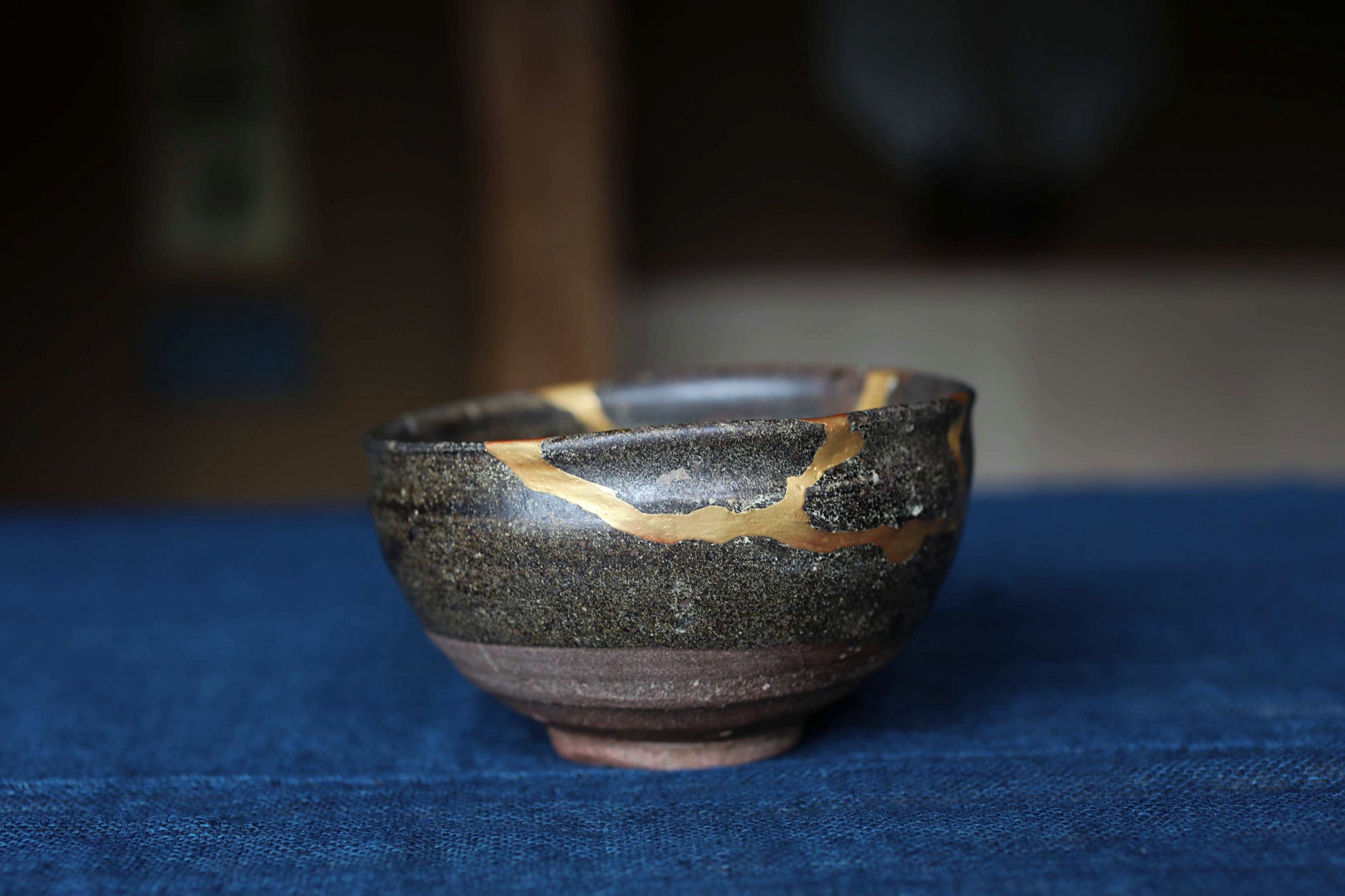 Kintsugi is a repair technique using lacquer and gold leaf.