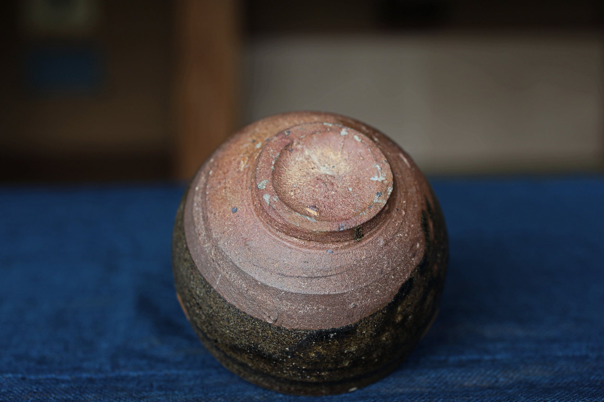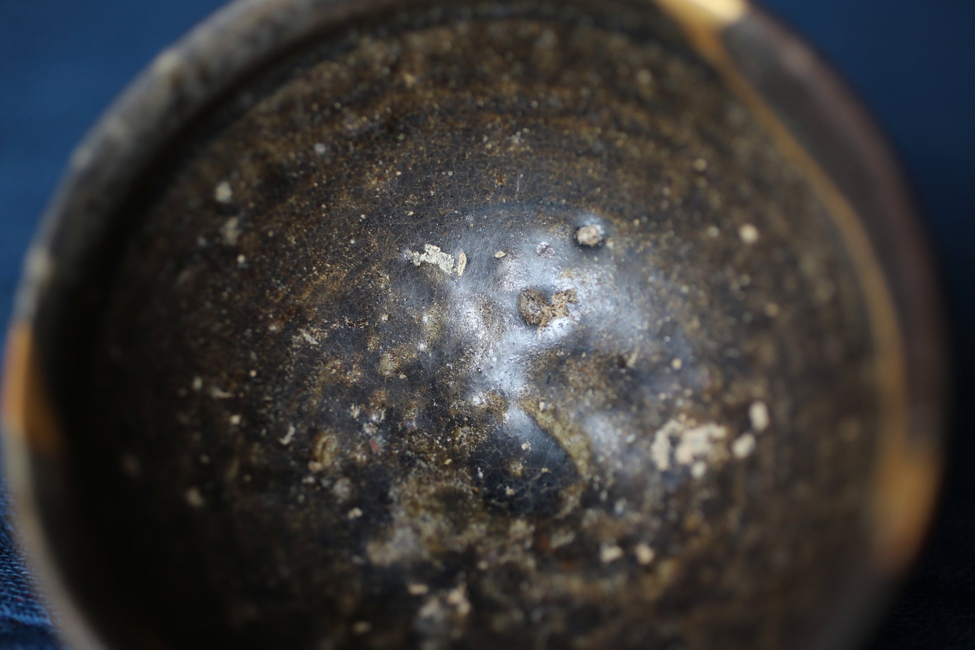The glaze has areas known as "mushi-tsuki" (worm holes), which indicate areas where the glaze was not applied properly.