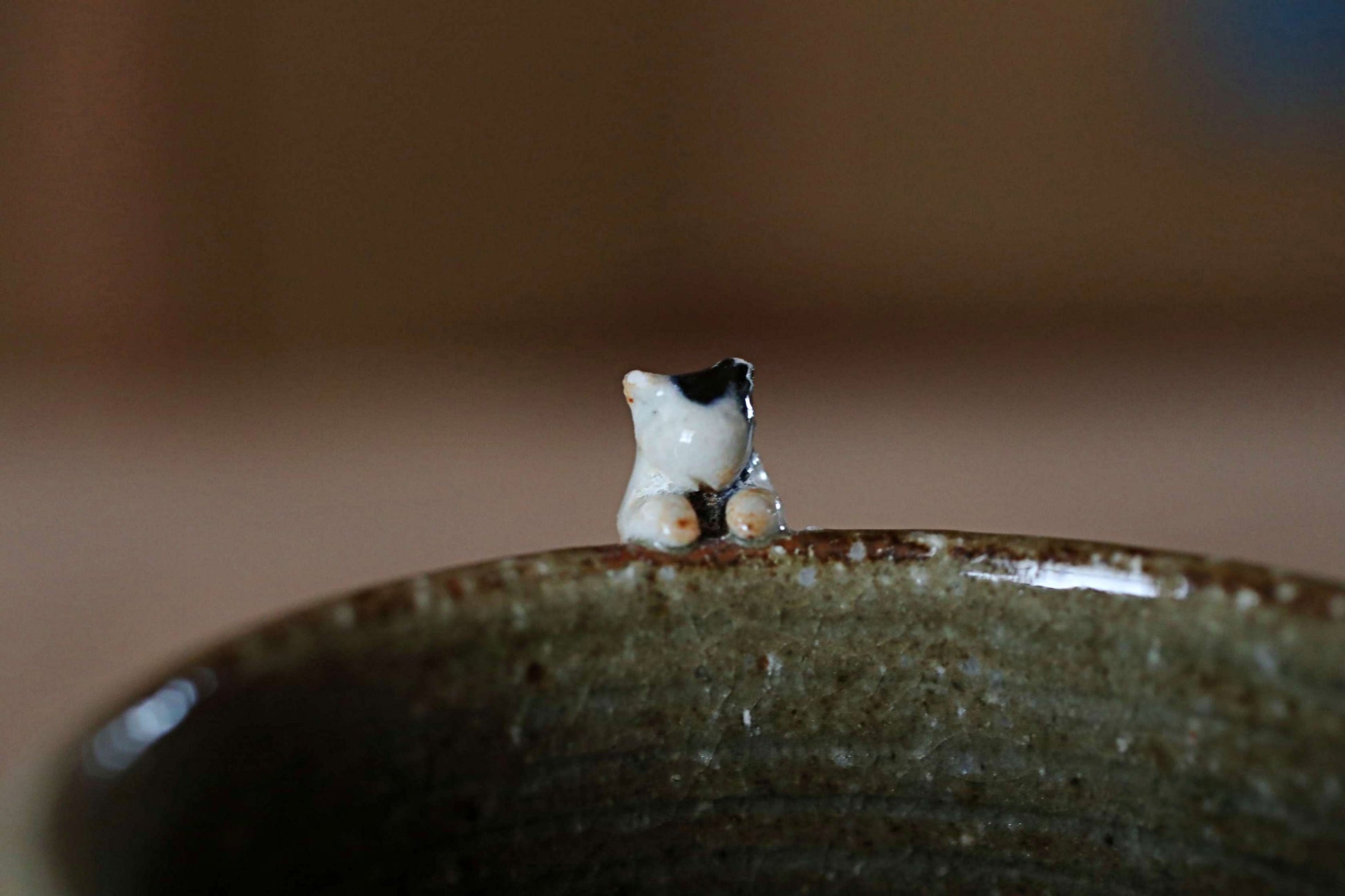 What's truly adorable is that upon closer look, you can see a kitten climbing up the rim of the cup. While the cat's face and other details are intentionally simplified in this three-dimensional design, just seeing its form will make you smile.