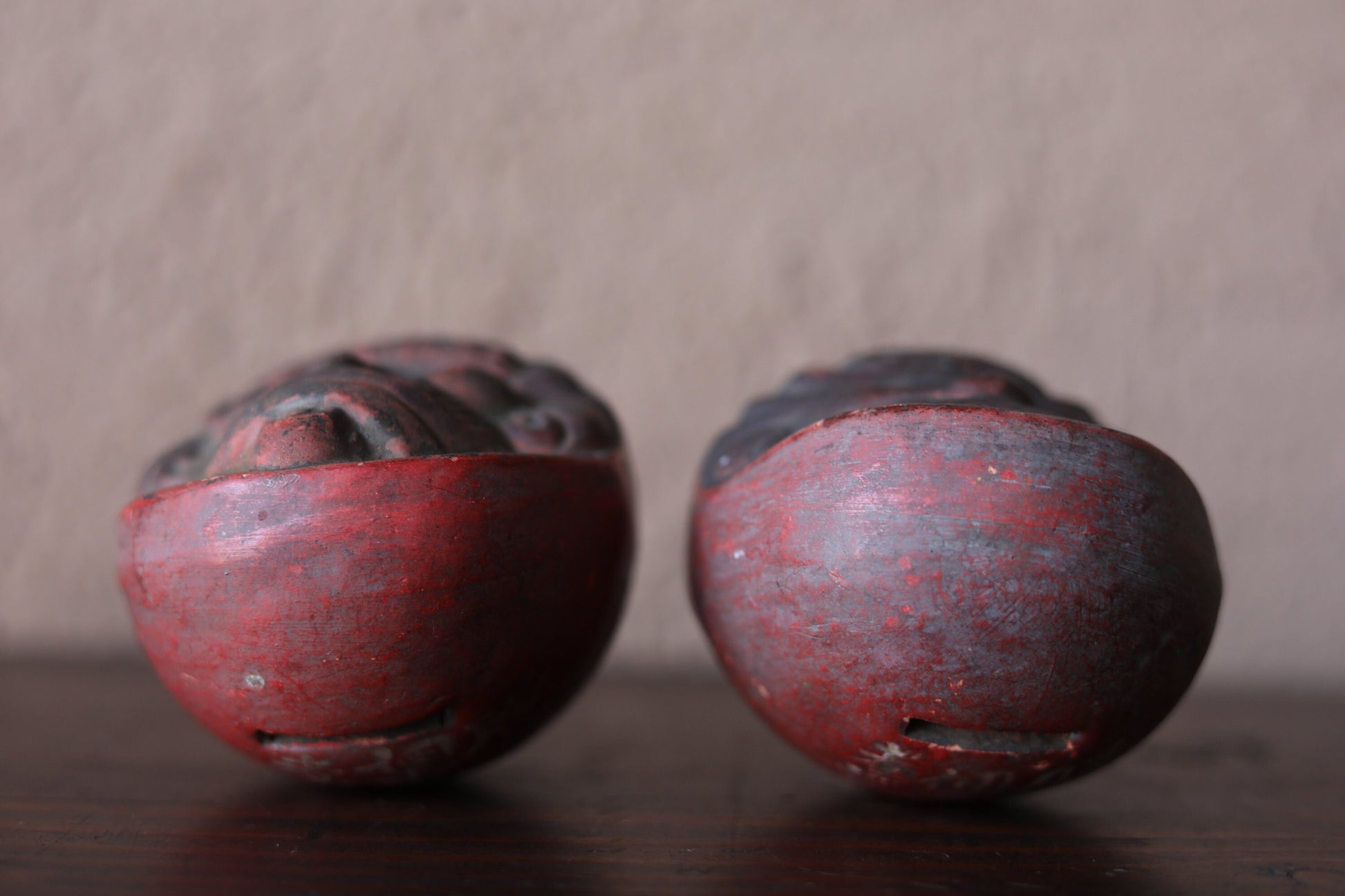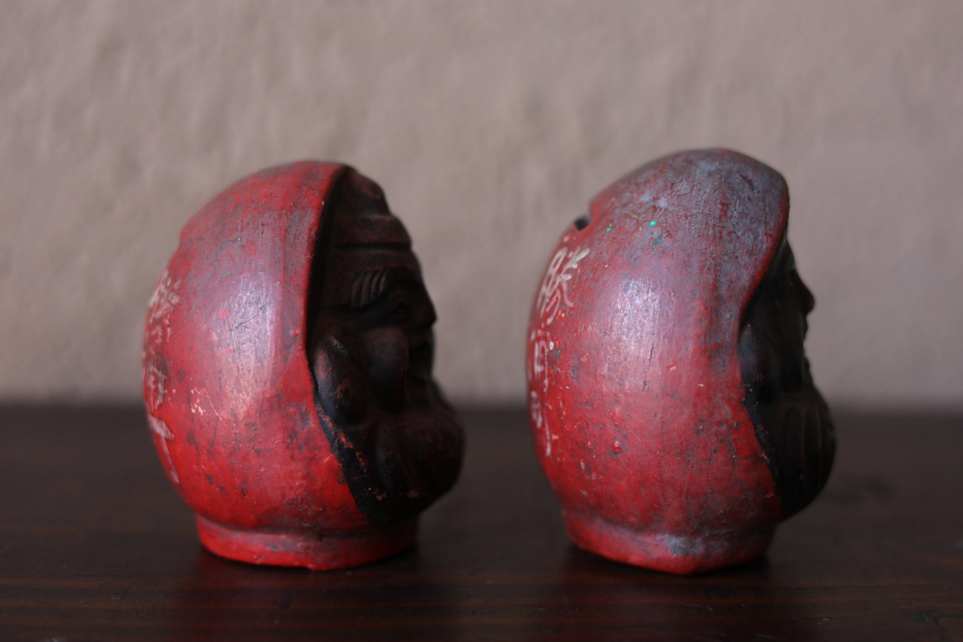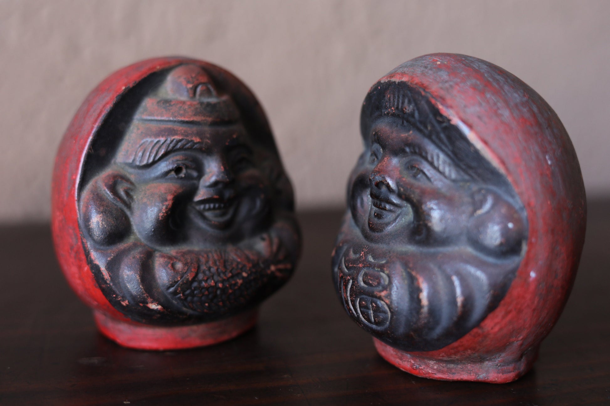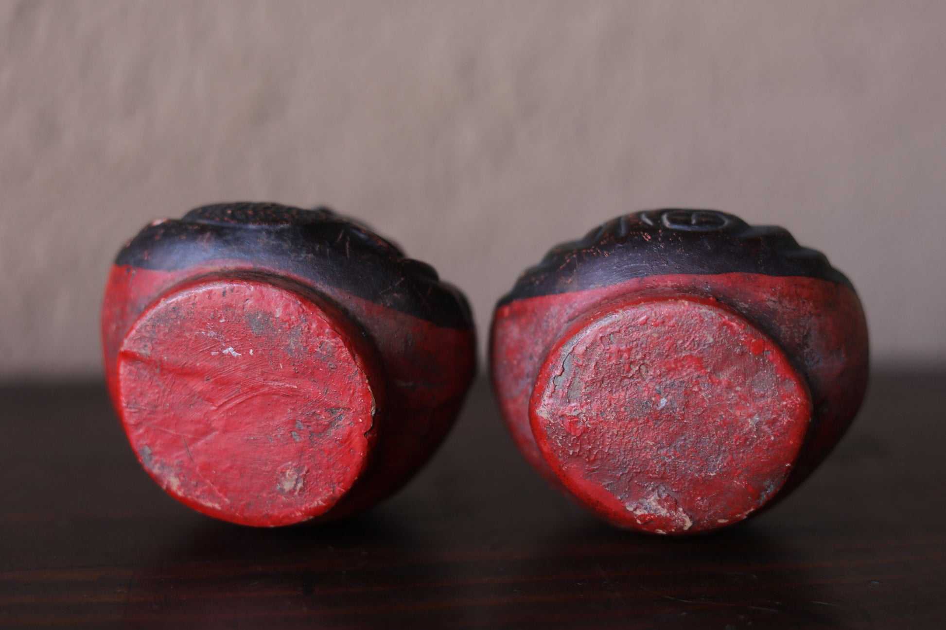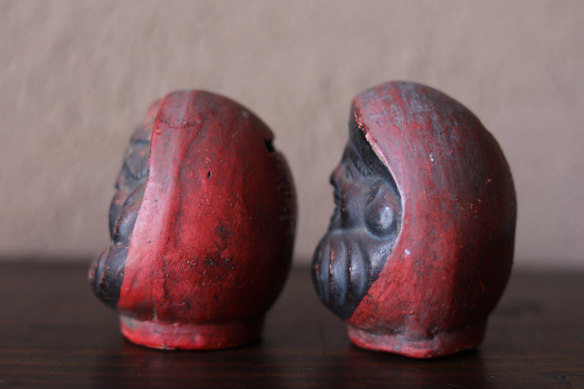 Pair of Japanese vintage "Daruma" doll statue, ceramic statue Buddhist monk priest ZEN master bank box H4.1in/H10.5cm