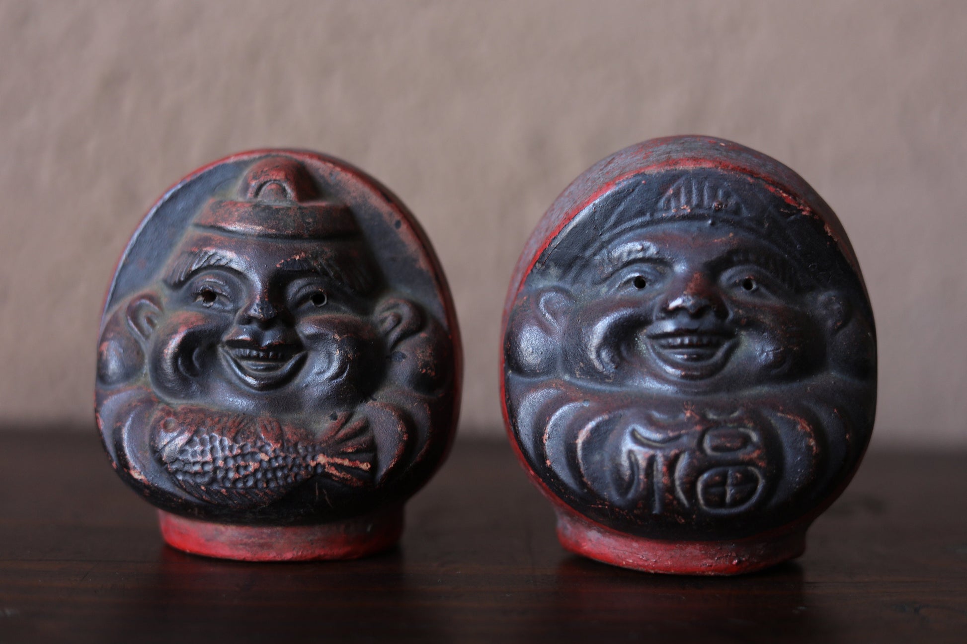 This Daruma is made with a cute impression of a smiling face. It is a unique item mixed with Japan's unique culture. There are many indigenous gods in Japan. One of them is 恵比寿Ebisu and 大黒Daikoku, two gods combined with the image of Daruma. Ebisu-sama is a well-known god of business prosperity, and the Kanji character "福Fuku Happiness" is written on it. The other god, Daikoku-sama, holds a sea bream and is said to be the parent of Ebisu-sama, and they are often displayed as a set. It is recommended to place them in a clean, sunny and bright place.