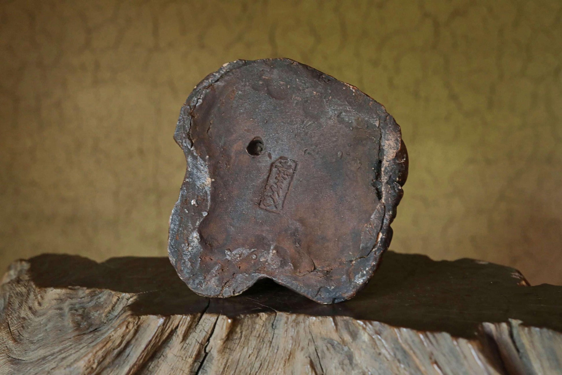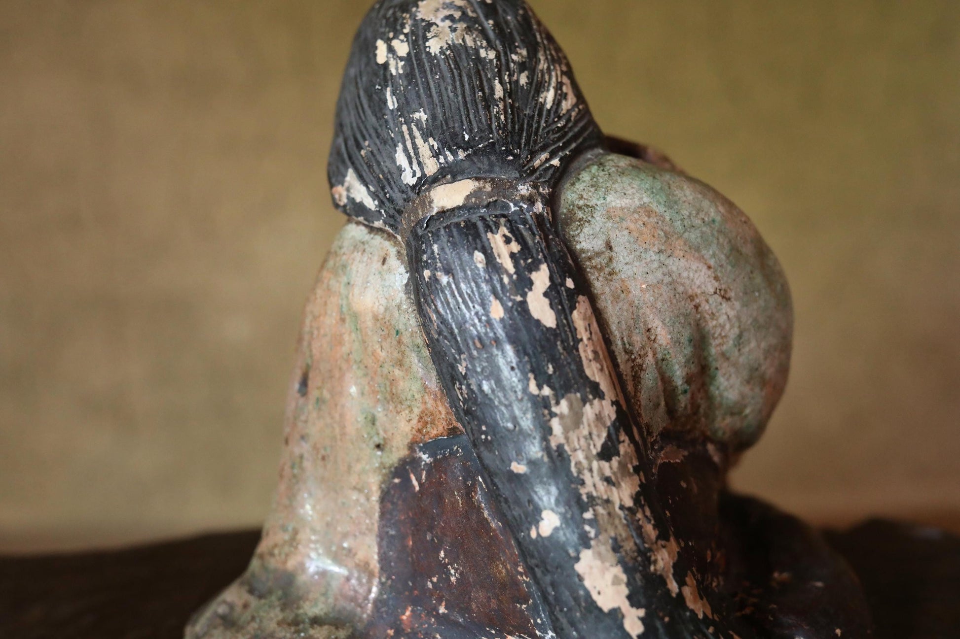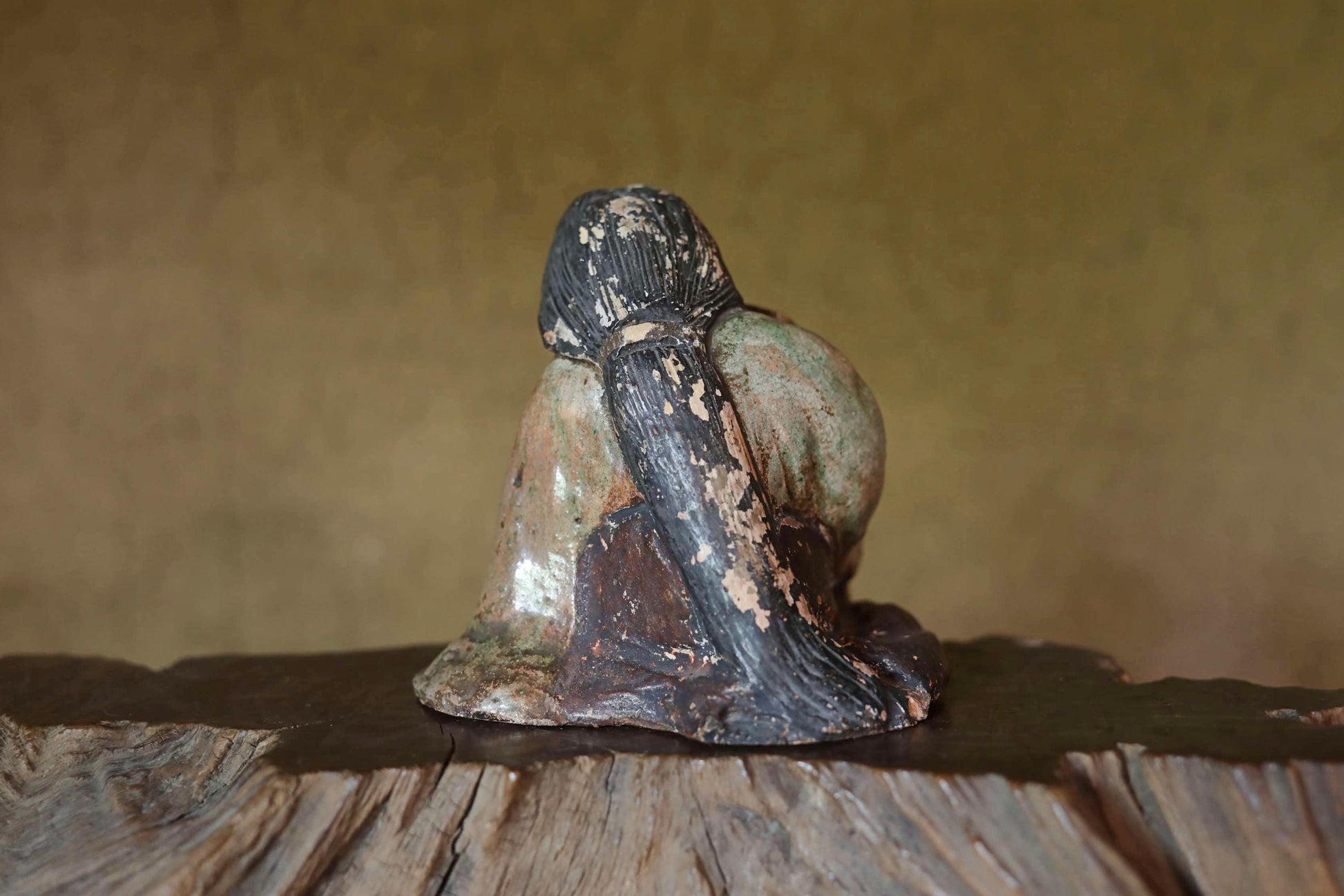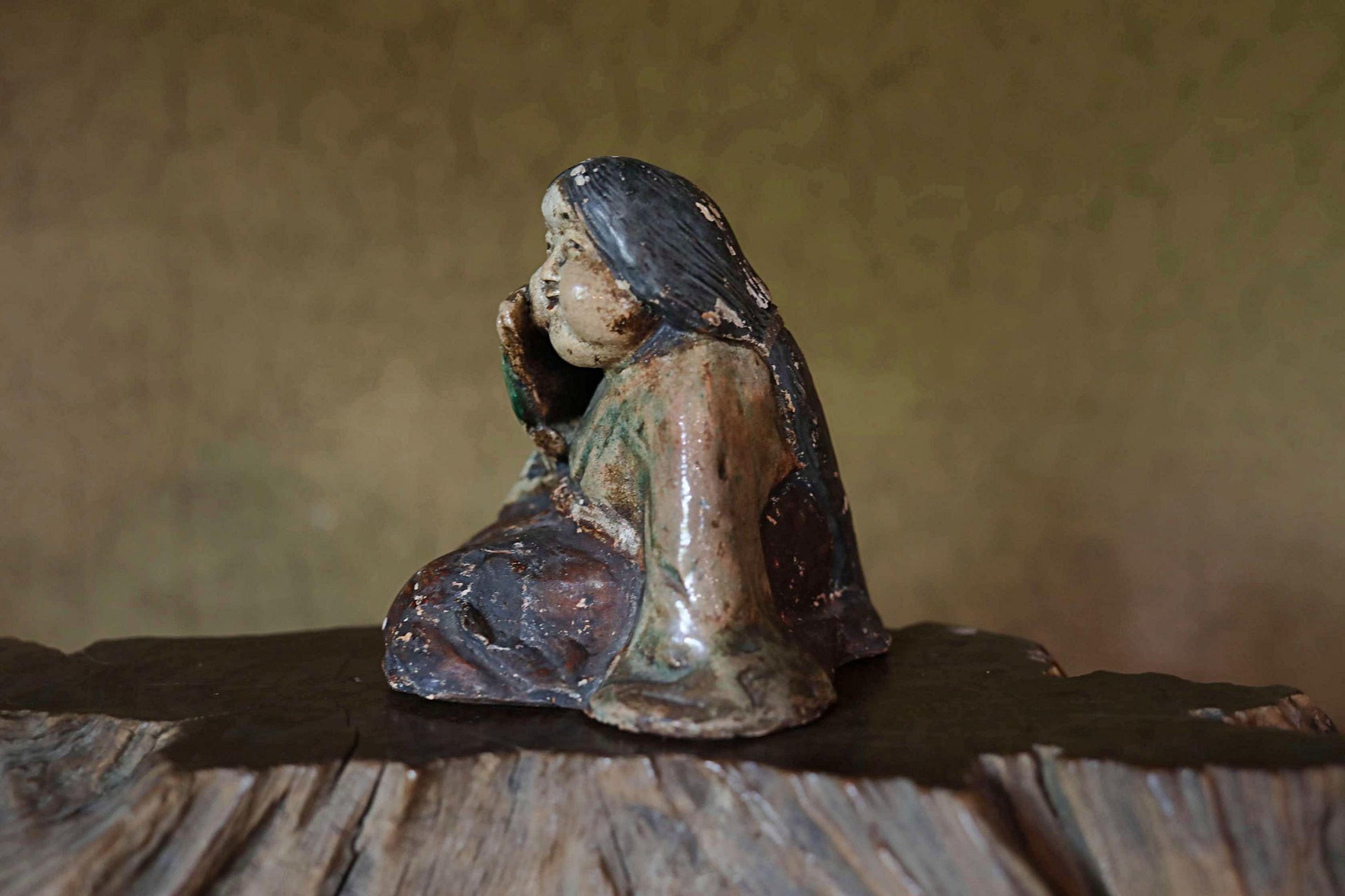 RARE!!Japanese antique ceramic doll お多福OTAFUKU OKAME ornament happy smile woman with folding fan Edo 1800s H5.1×5.3in/ H13×13.5cm