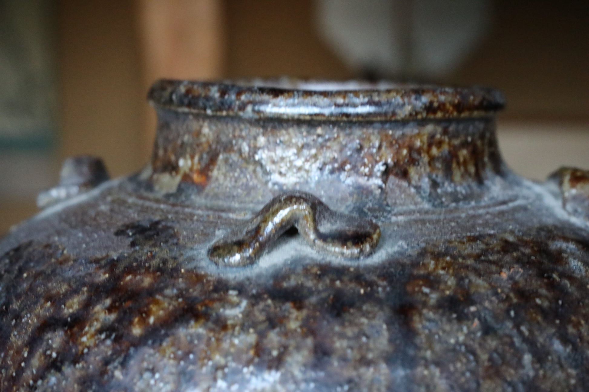 Its distinctive features include the "ash covering" created by a chemical reaction between wood ash and the iron in the soil, and the unique texture of the melted "natural glaze (vidro glaze)," which creates a unique character that goes beyond human intention.
