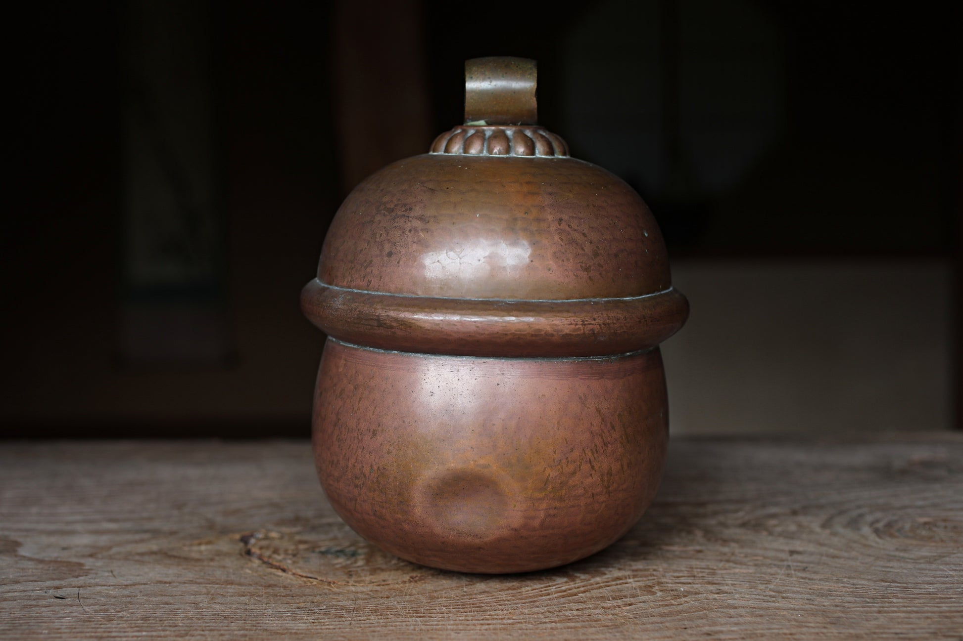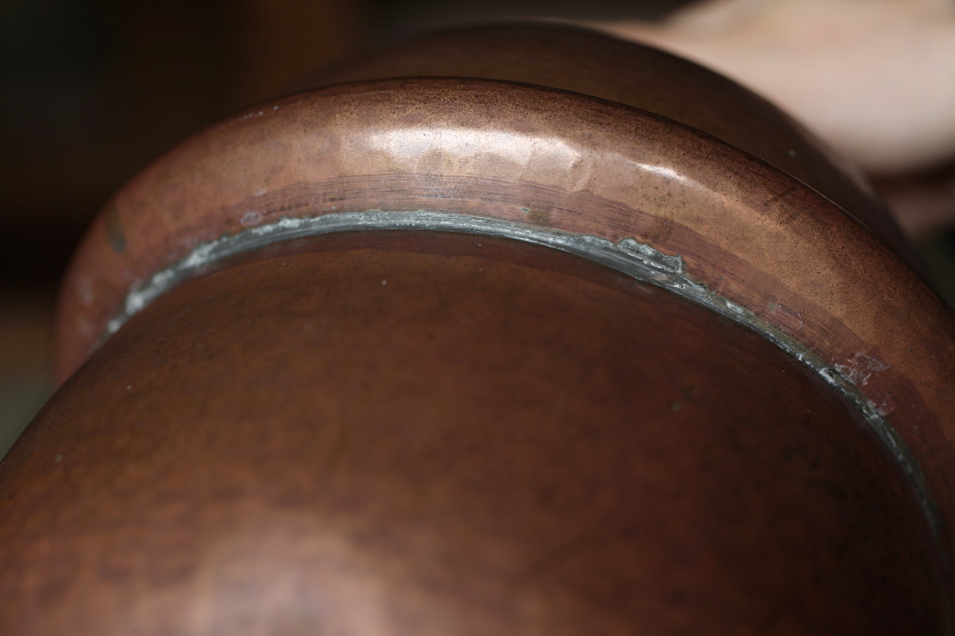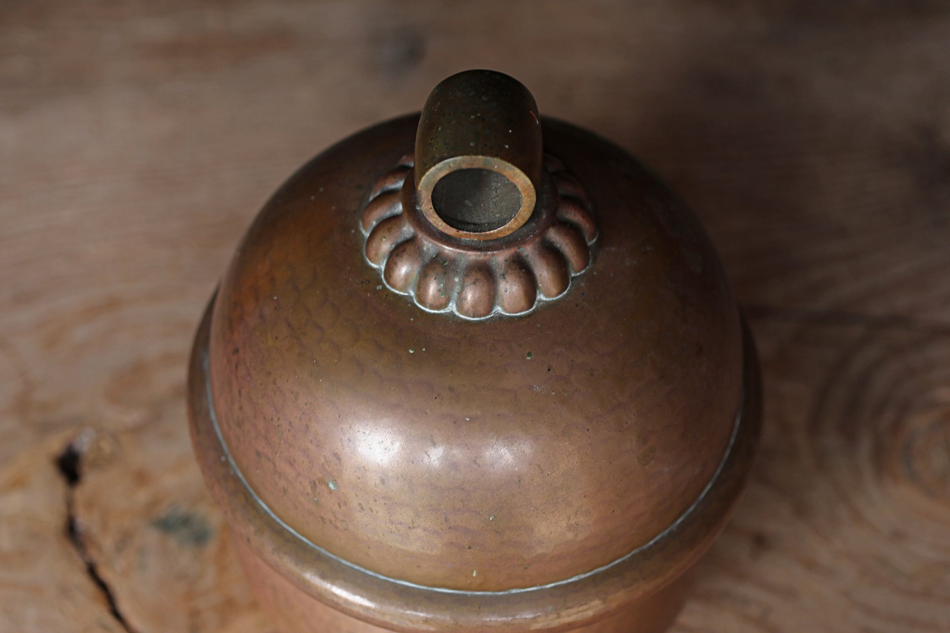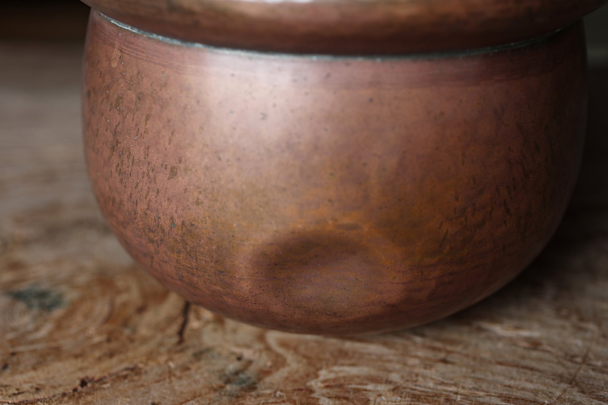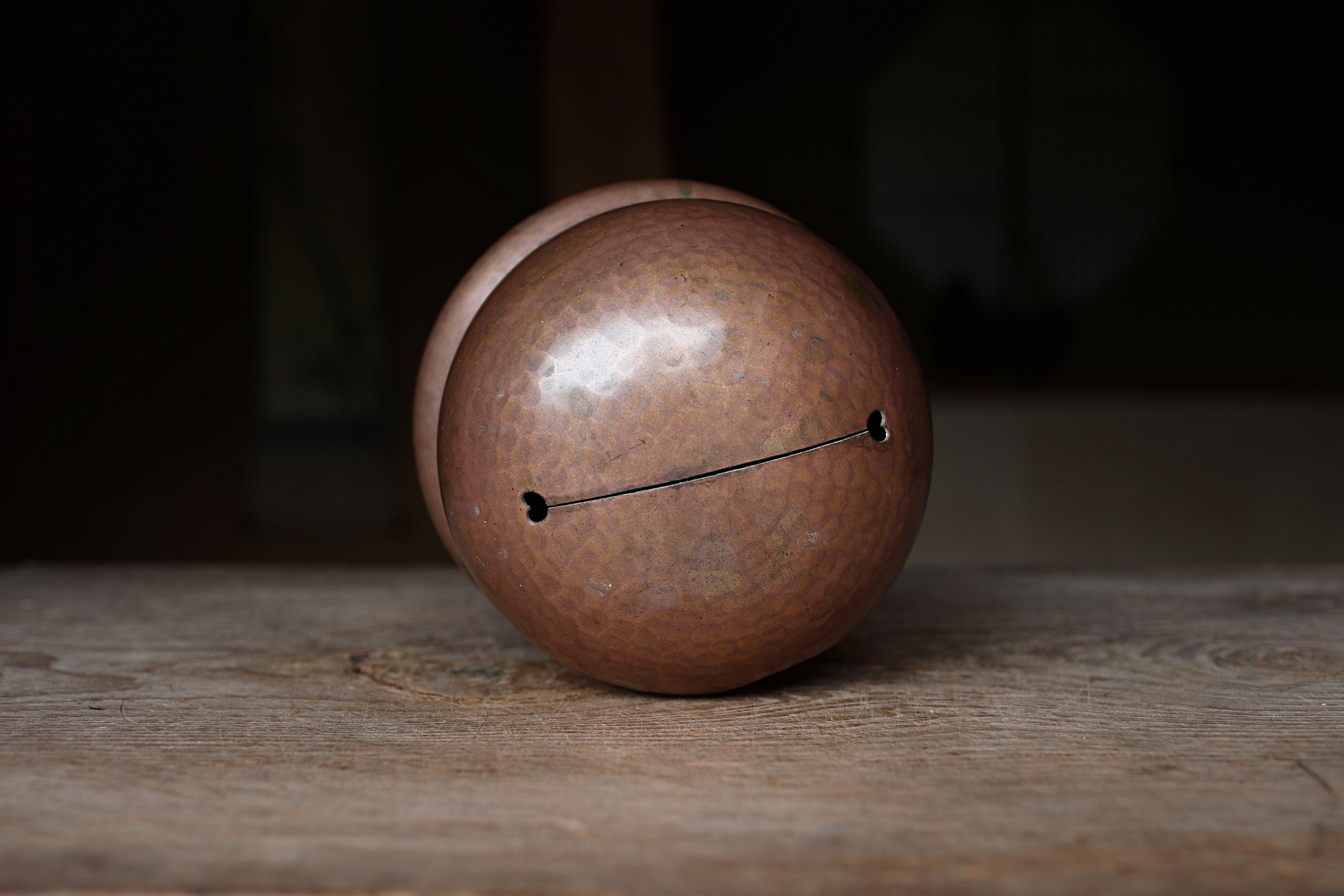 This is a very old and beautiful bell. The hand-hammered marks on the surface remain beautifully preserved, and it is an excellent piece of workmanship. The copper is thick, giving it weight, presence, and a sense of luxury. There are some dents, but these are also interesting, and the bell is in good condition.