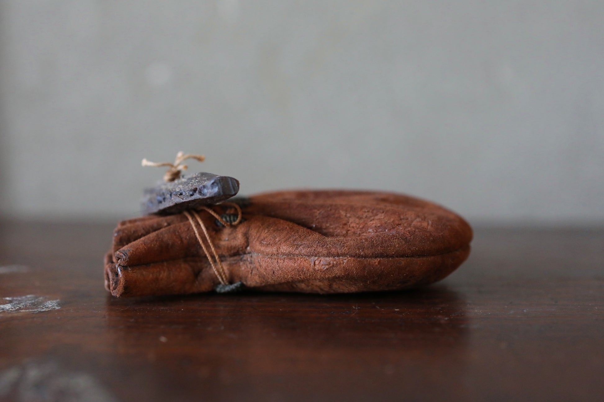 Antique Japanese Leather Coin Pouch: with Edo Era Kan'ei Tsūhō Coin 1800s cigarette case