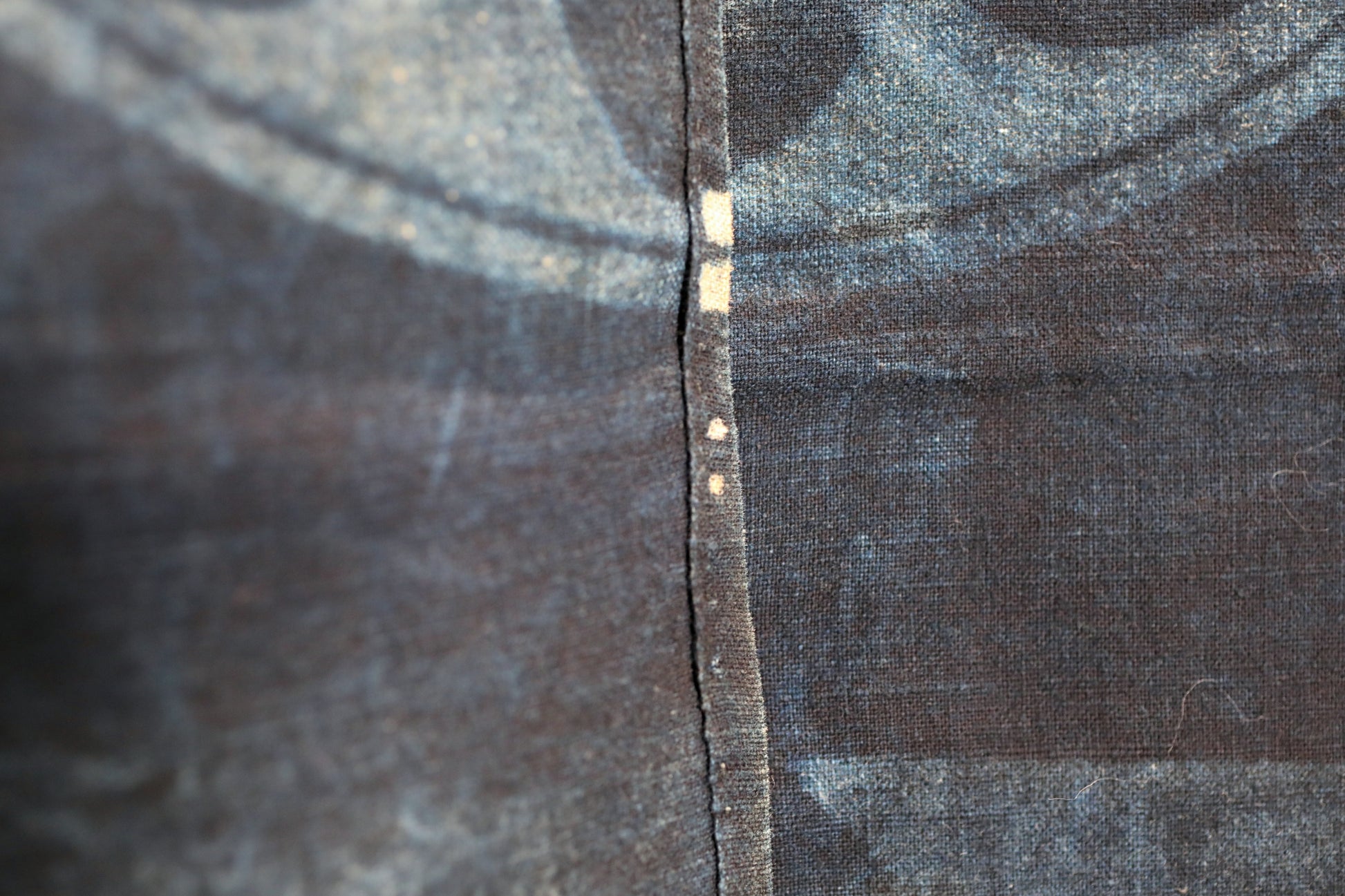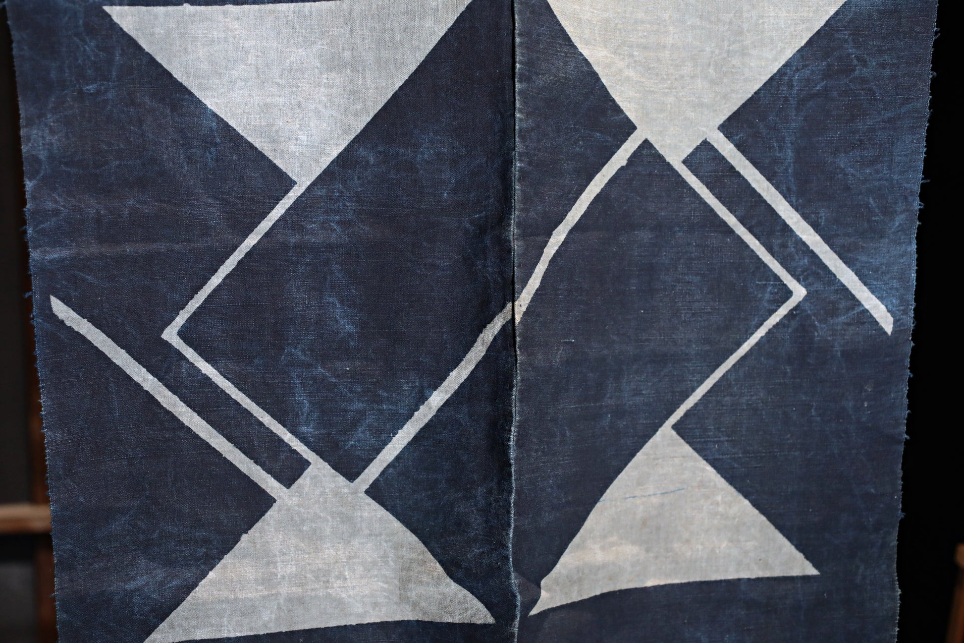 The reverse side also features the pattern due to the resist dyeing technique, but the color has darkened over time, so the pattern is not clearly visible from the back.