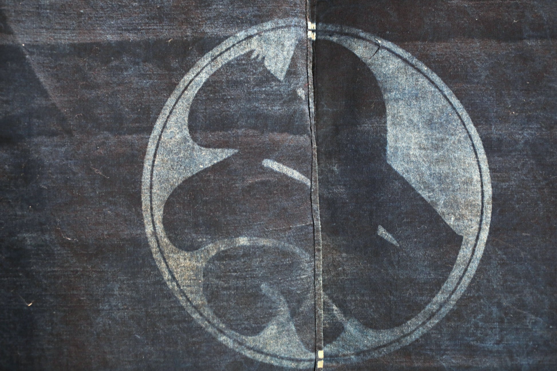 This stunning deep indigo-blue 暖簾 Noren was originally commissioned for a edo era. This noren features the character “吉” (Kichi) as its crest design at the top. Crafted entirely by hand from slightly stiff, thick cotton fabric, it possesses a distinctive charm. The deepened color from aging adds to its beauty.