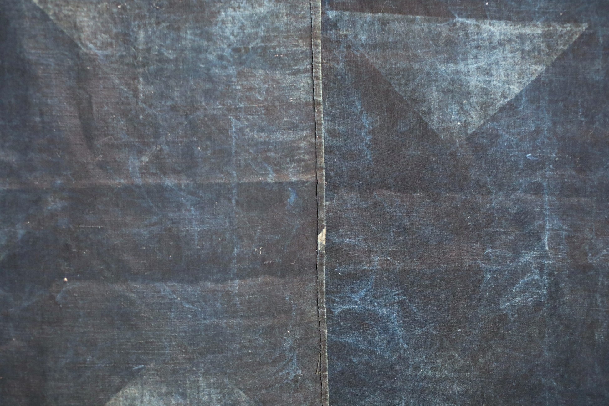 Japanese Antique, Edo Era Textile Art: Hand-Dyed Indigo cotton Room Divider with Beautiful Wabi-Sabi Patina.