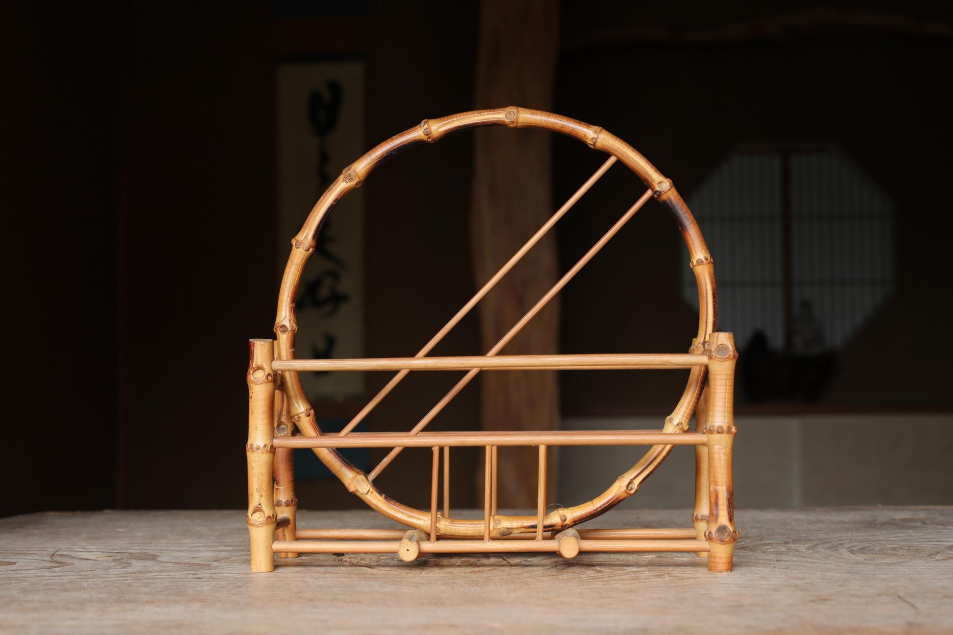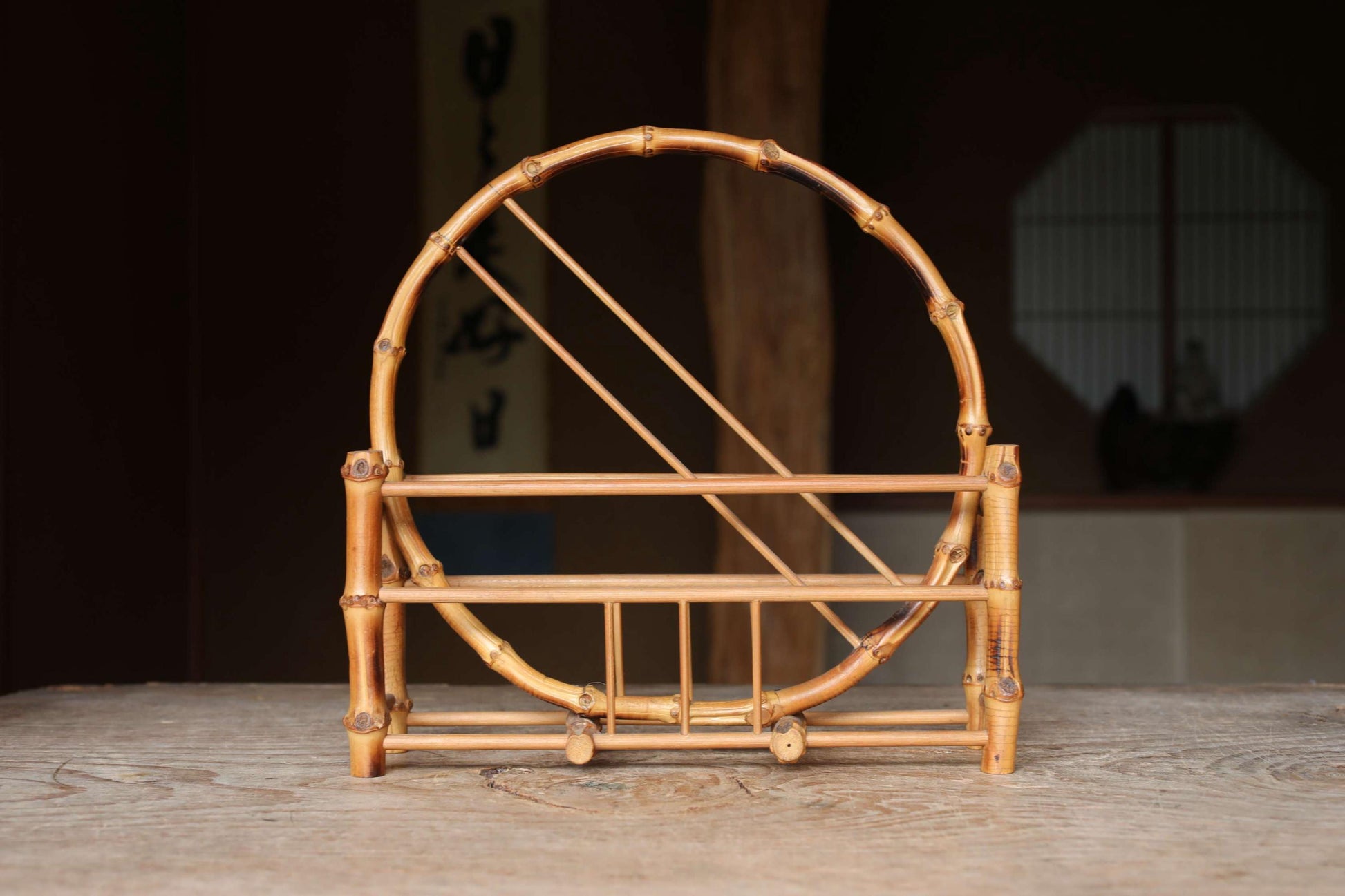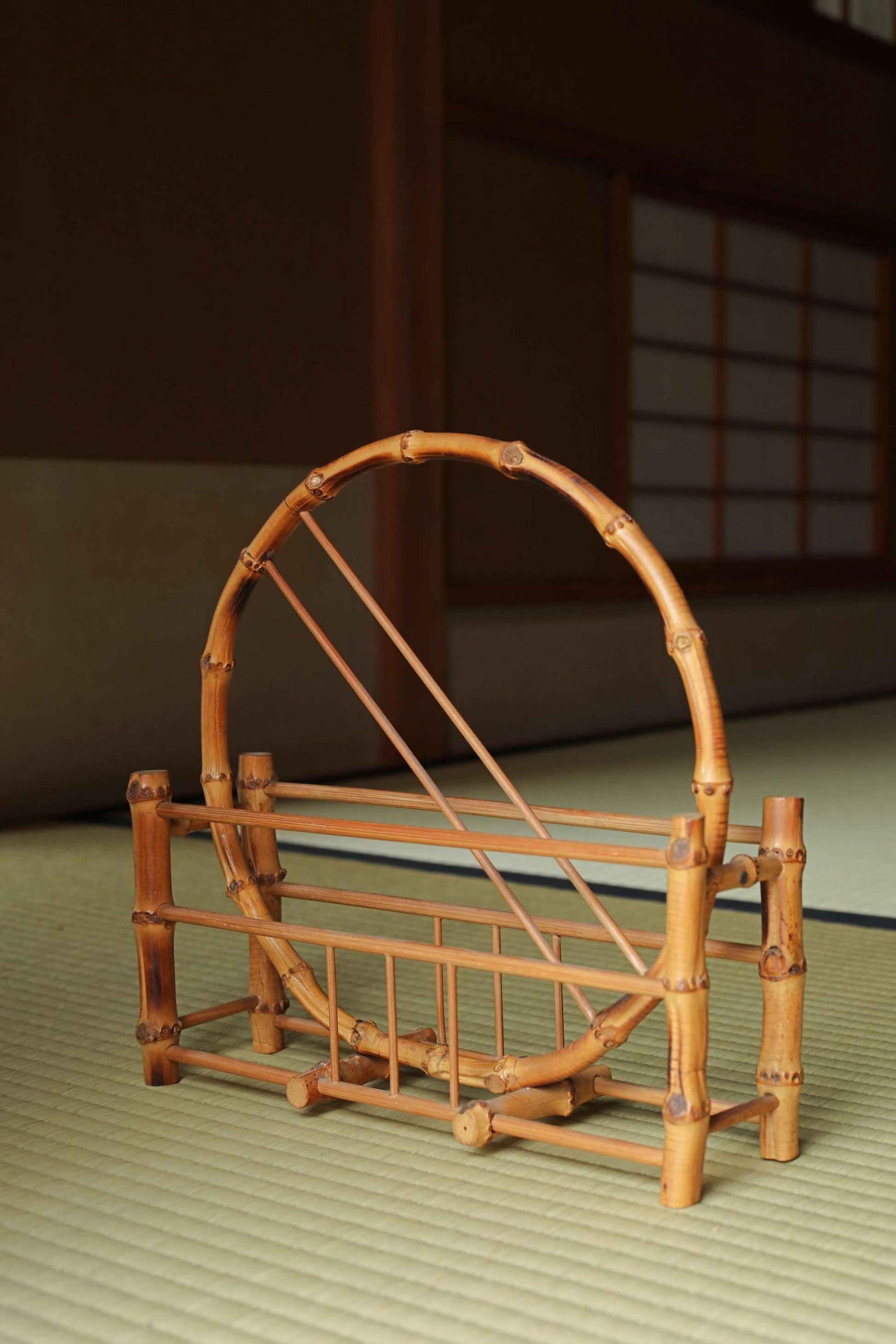 Bamboo skeleton fan stand, super light organic design, Japanese old style home furnishing, Japanese furniture, H10.8xW11in/H27.5×W28cm.