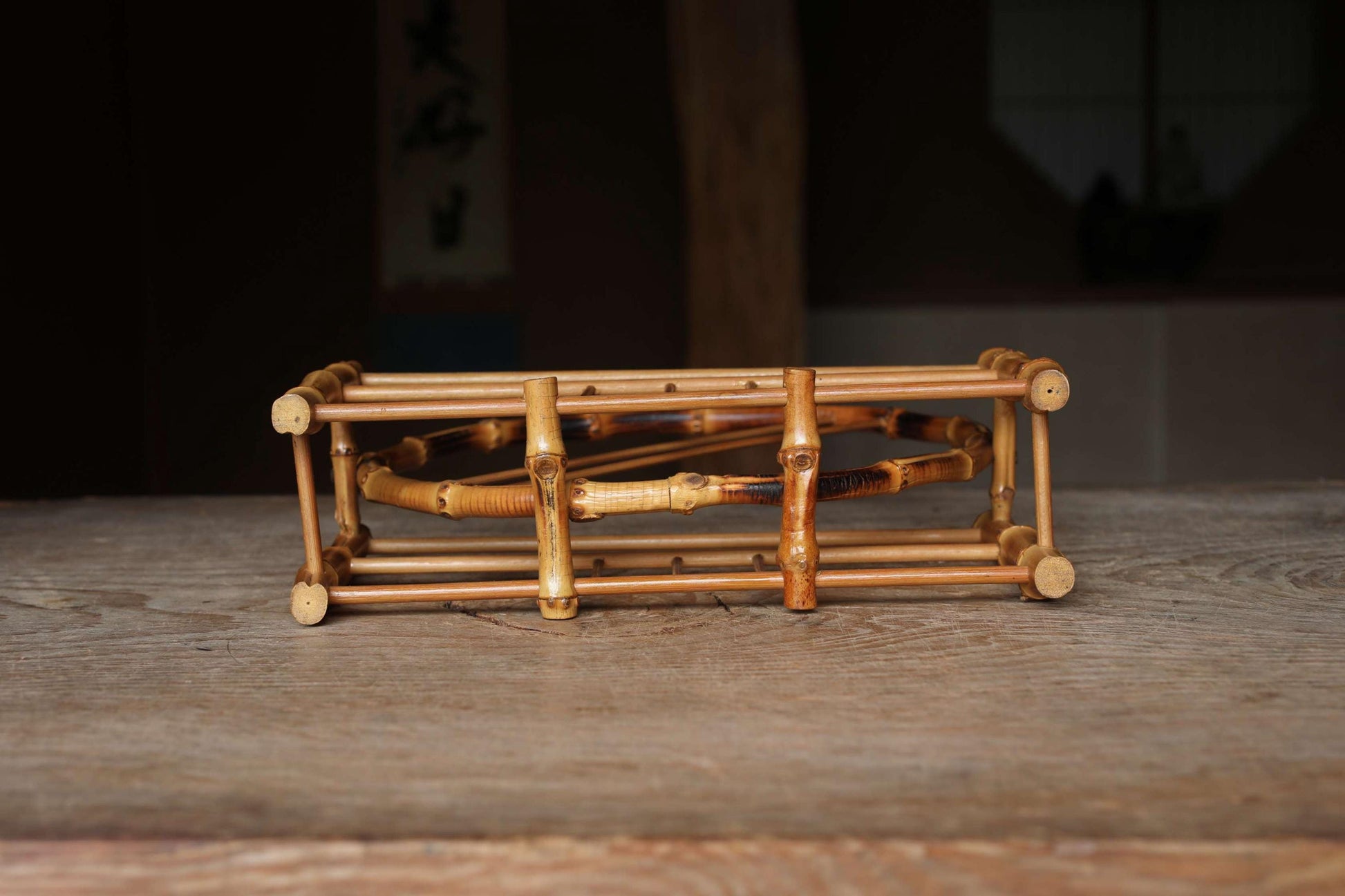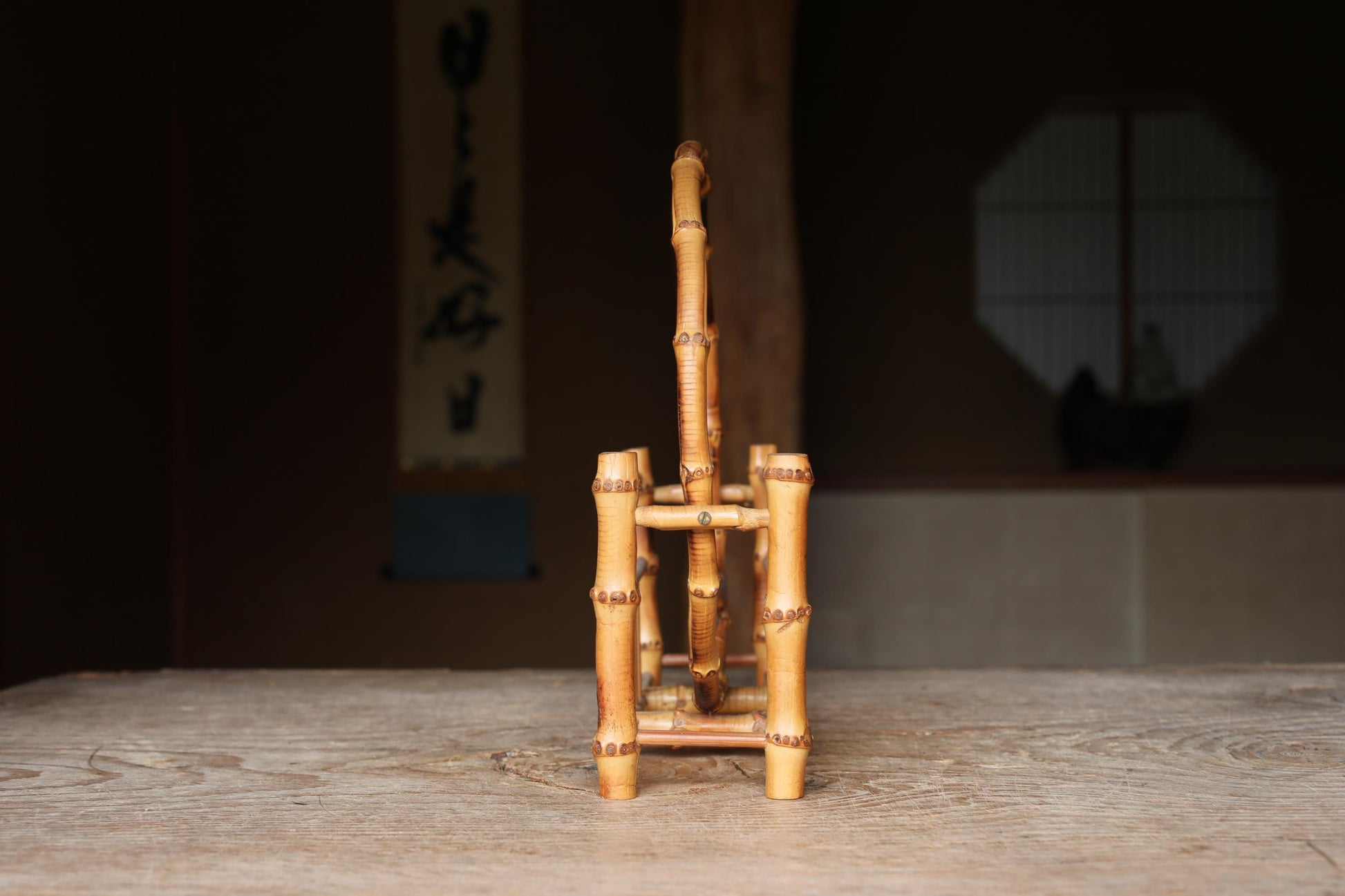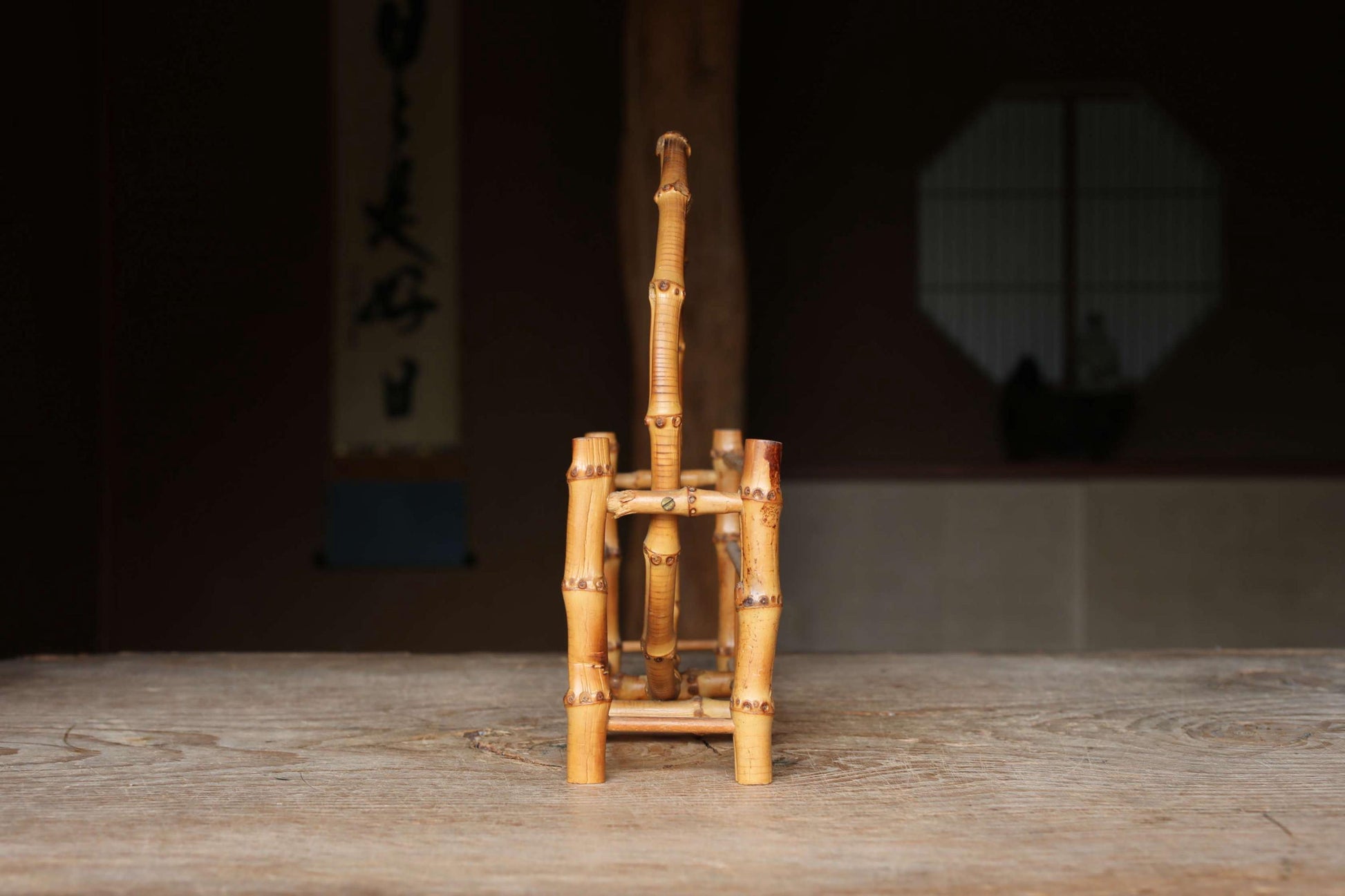 Bamboo skeleton fan stand, super light organic design, Japanese old style home furnishing, Japanese furniture, H10.8xW11in/H27.5×W28cm.