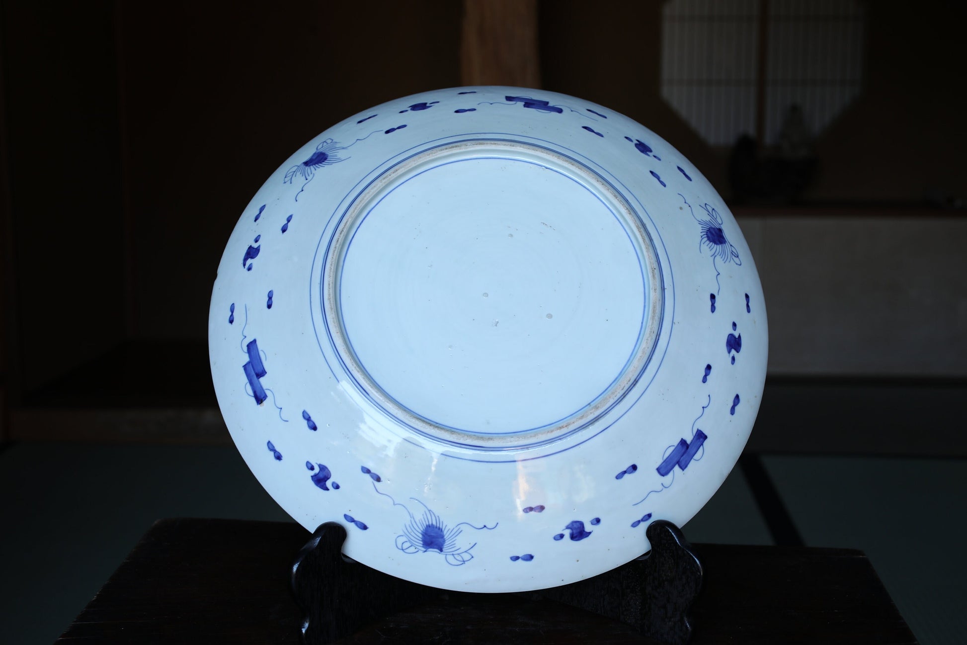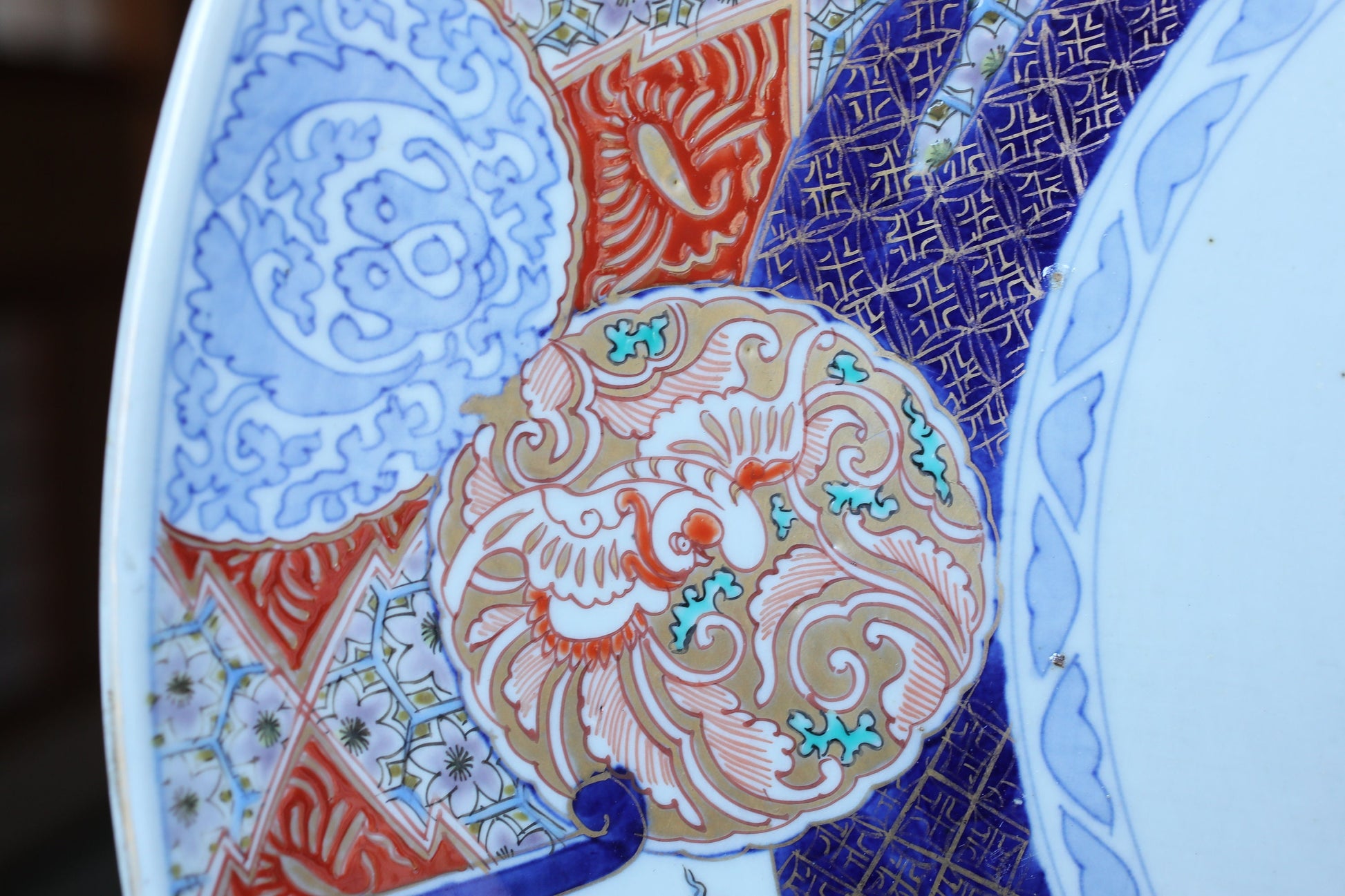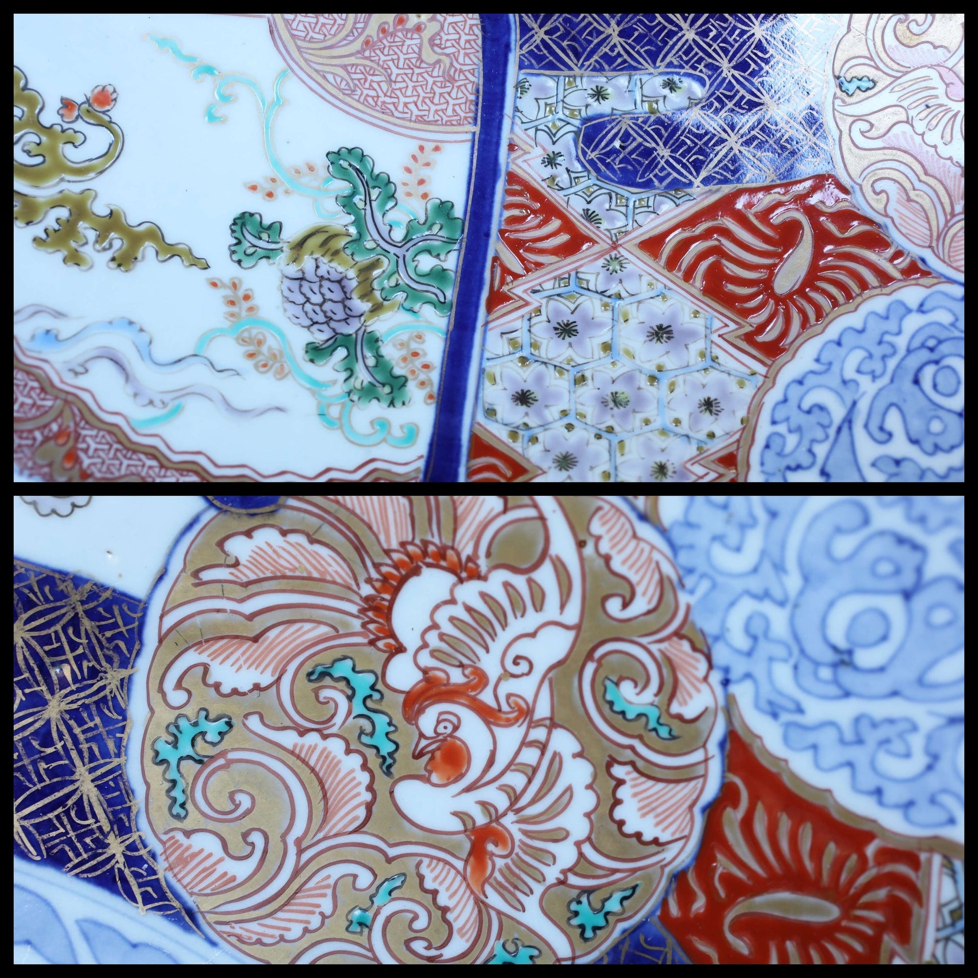 BIG!! Japanese antique 1800s plate porcelain old IMARI big decoration plate flower birds design beautiful hand painting 18in/45.7cm