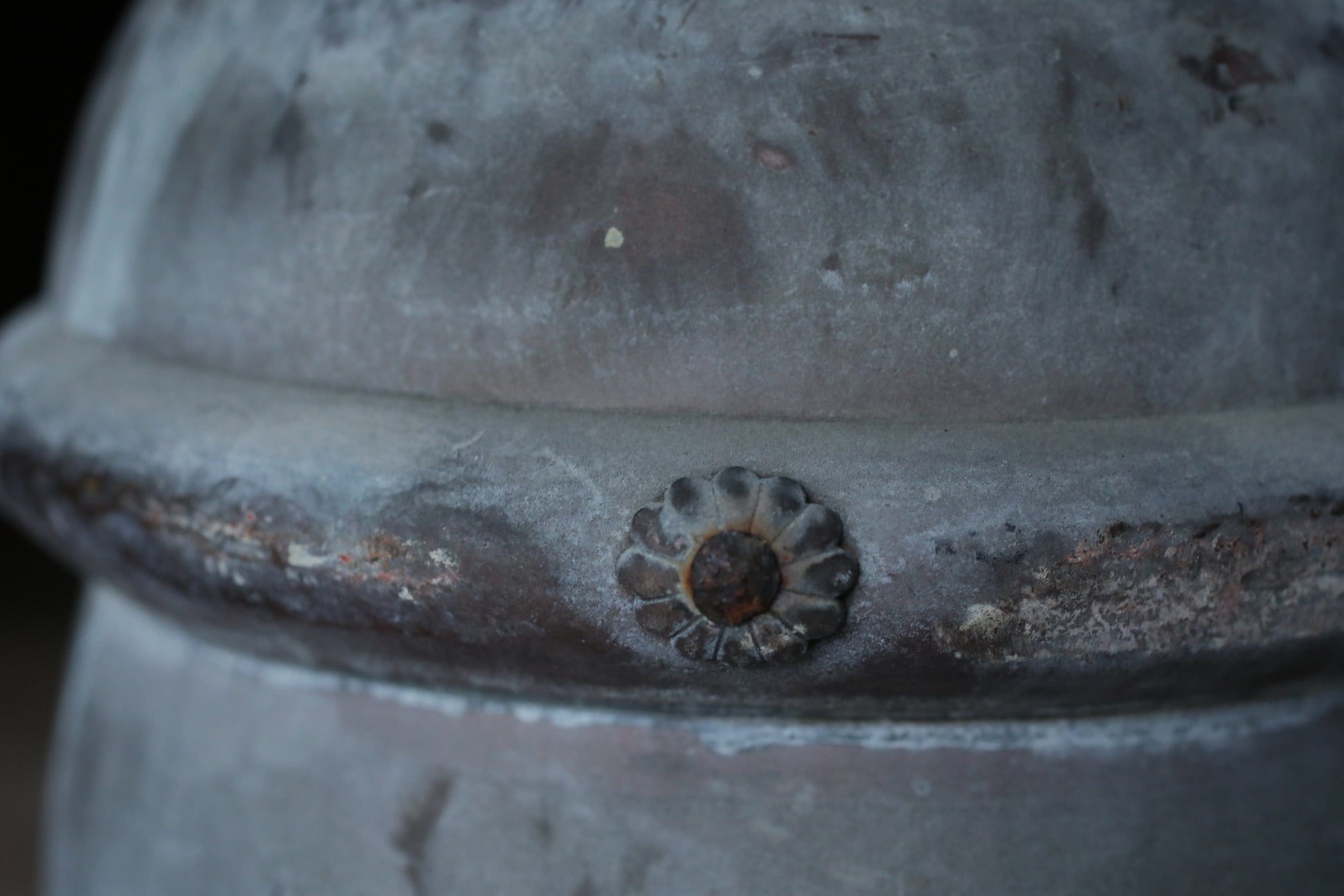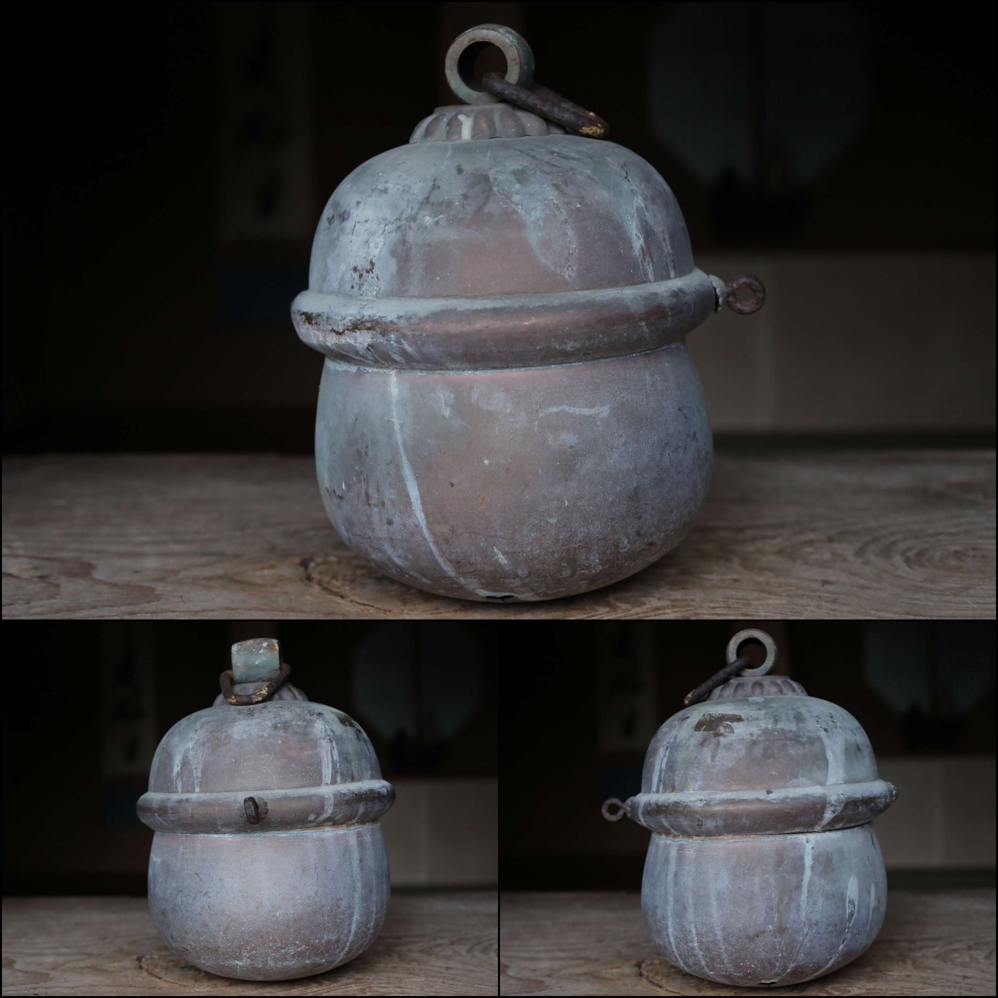 This bell is large in size and has a strong presence. There are small dents and a gap in the connecting part, but no functional issues. It has a cool used and aged atmosphere.