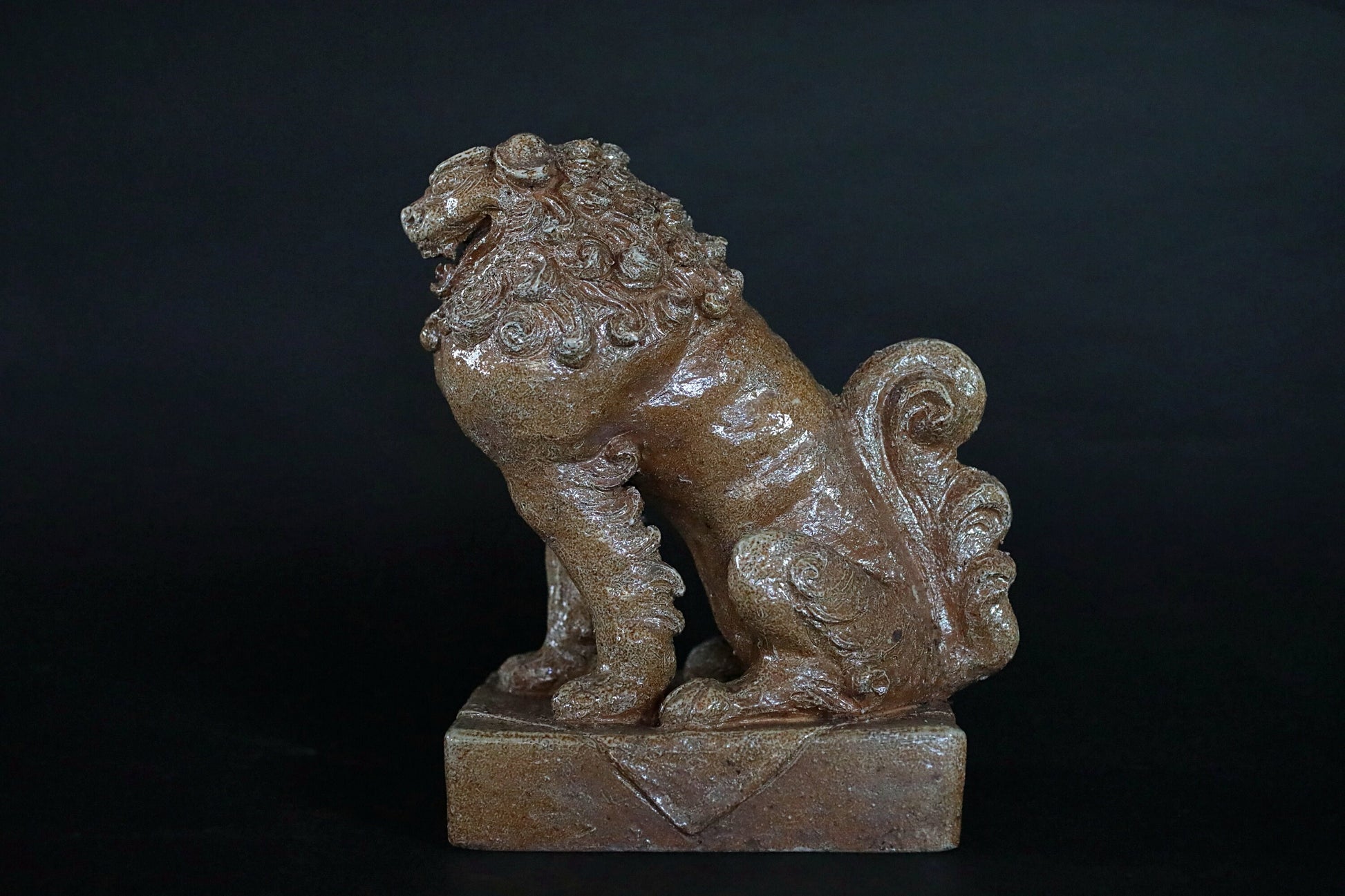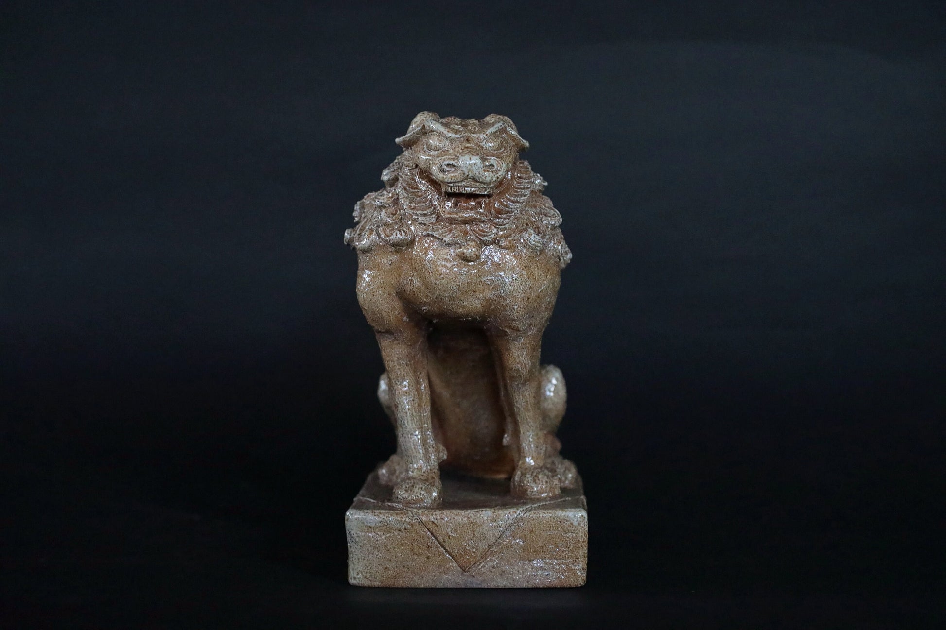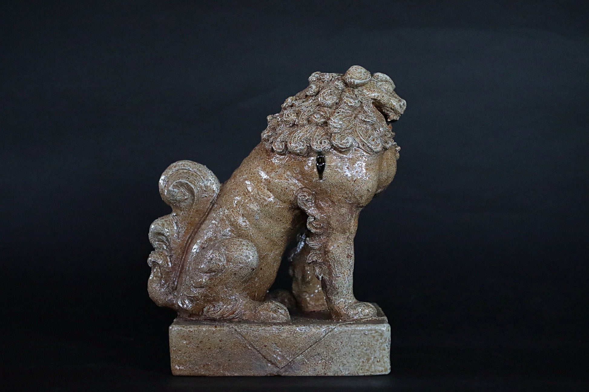 It is rare to find such a guardian dog statue made of pottery. It is interesting because it has both a uniquely generous and rugged appearance.