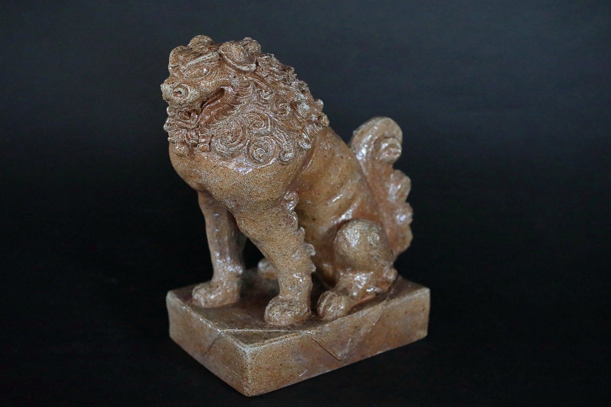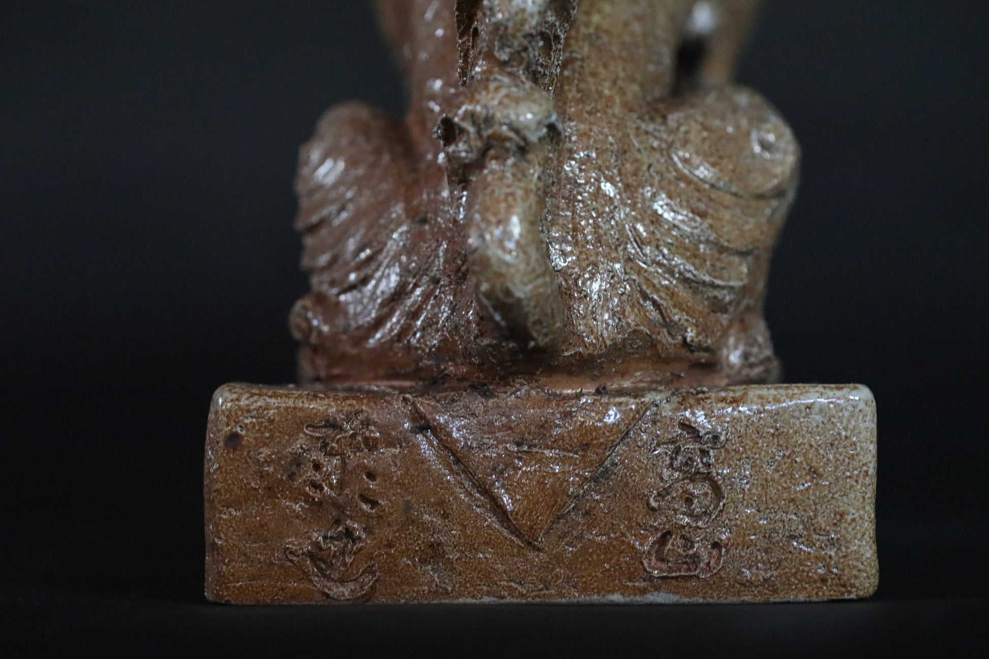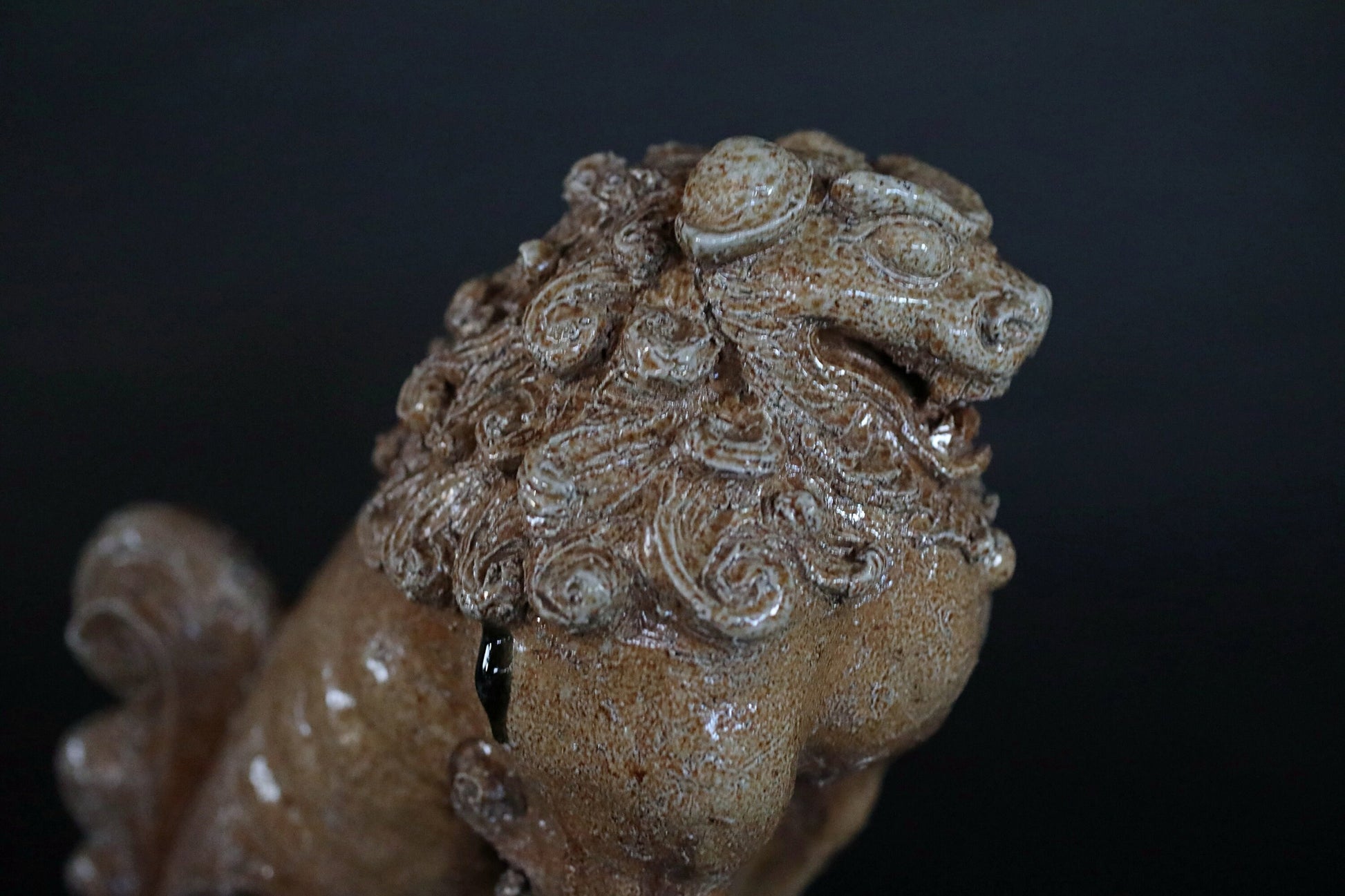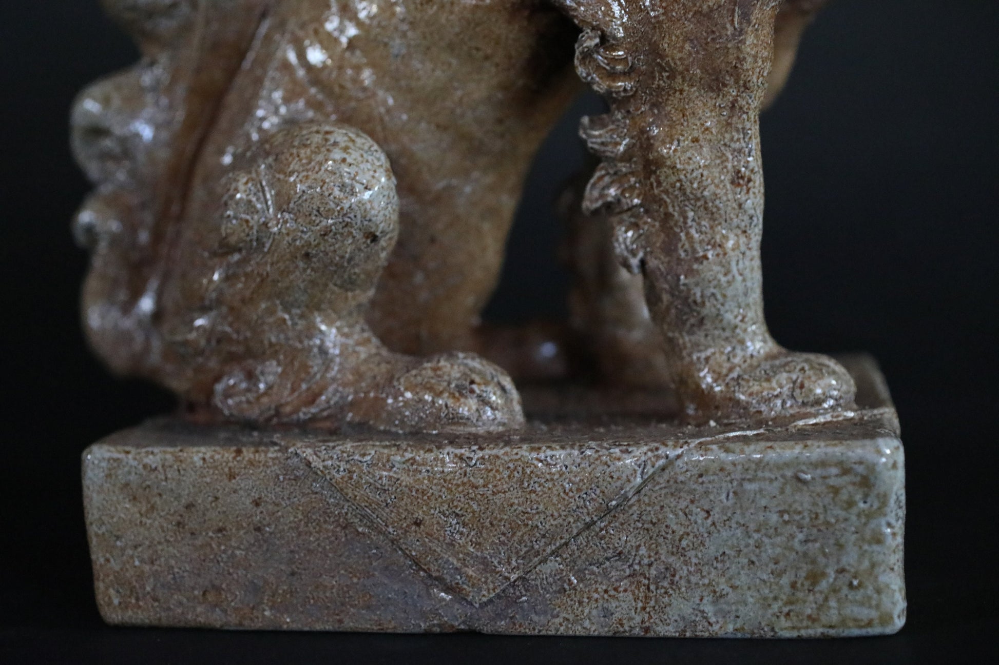It is rare to find such a guardian dog statue made of pottery. It is interesting because it has both a uniquely generous and rugged appearance.