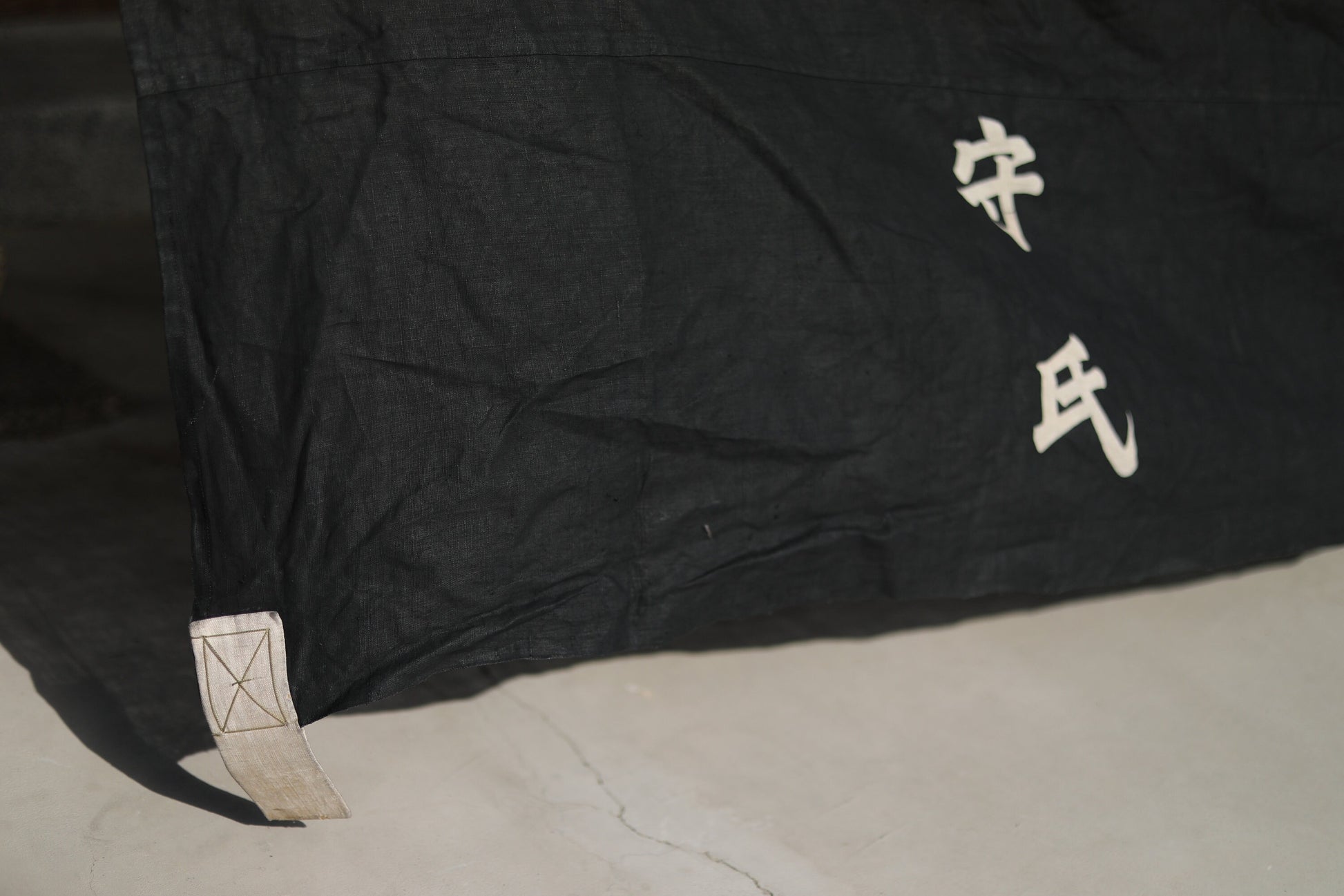 BIG! RARE! Japanese furniture antique Jinmaku Noren linen curtain SAMURAI crest for battle field black and white 1700s Edo W310.2in/W788cm