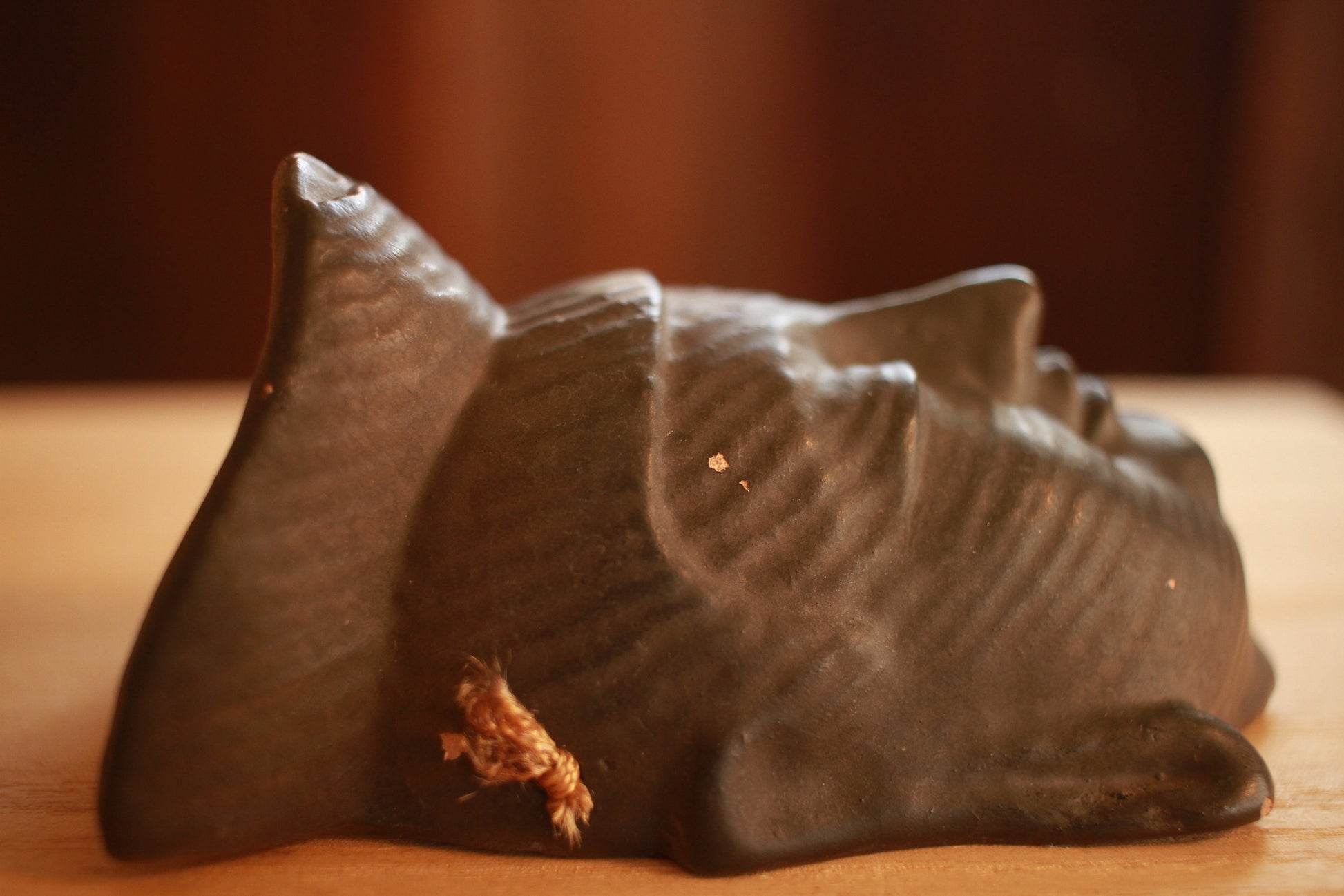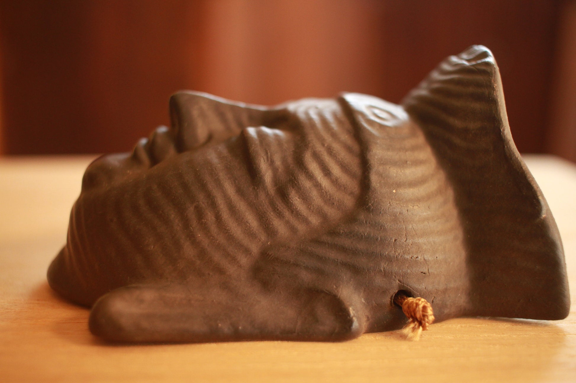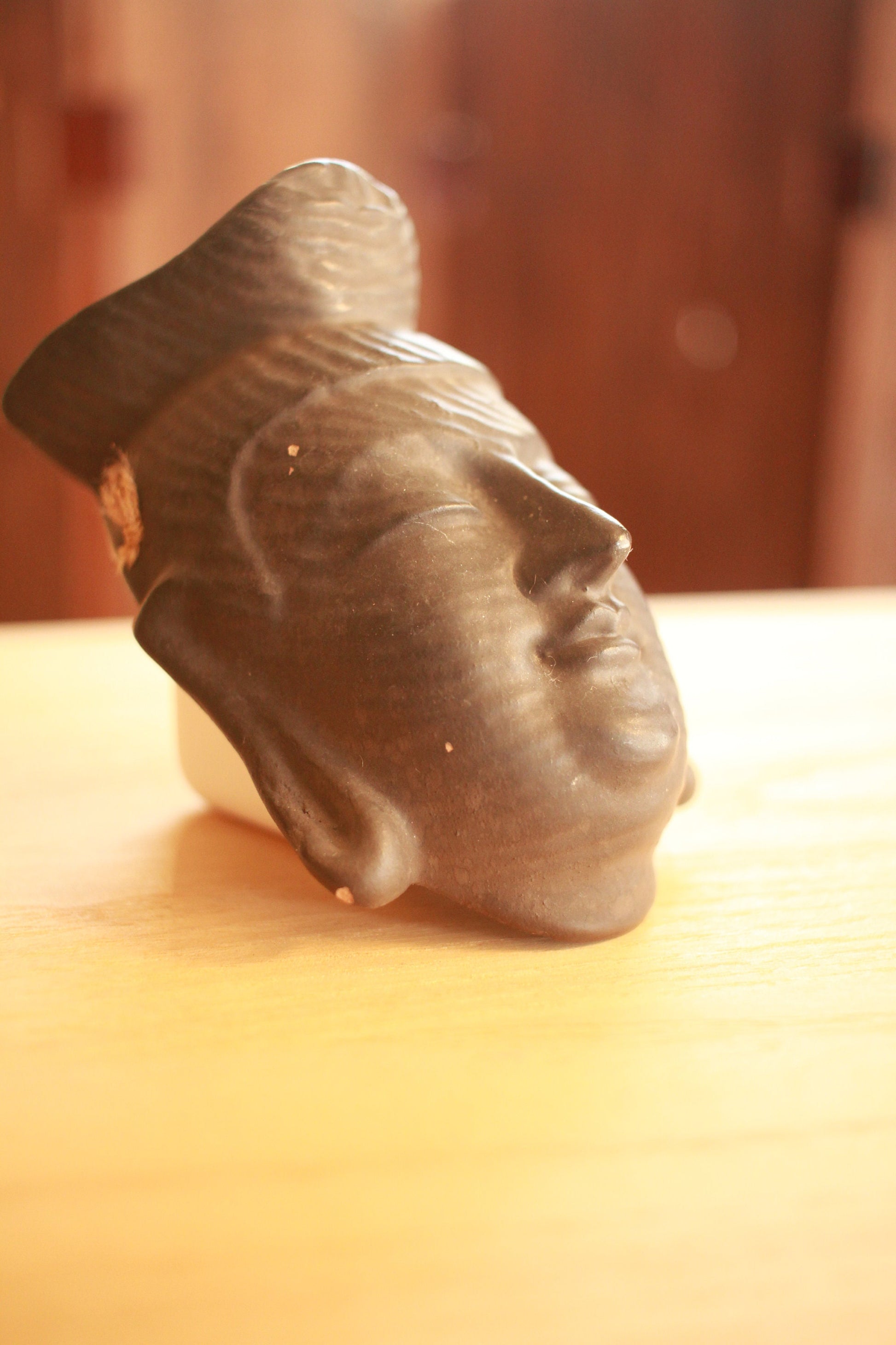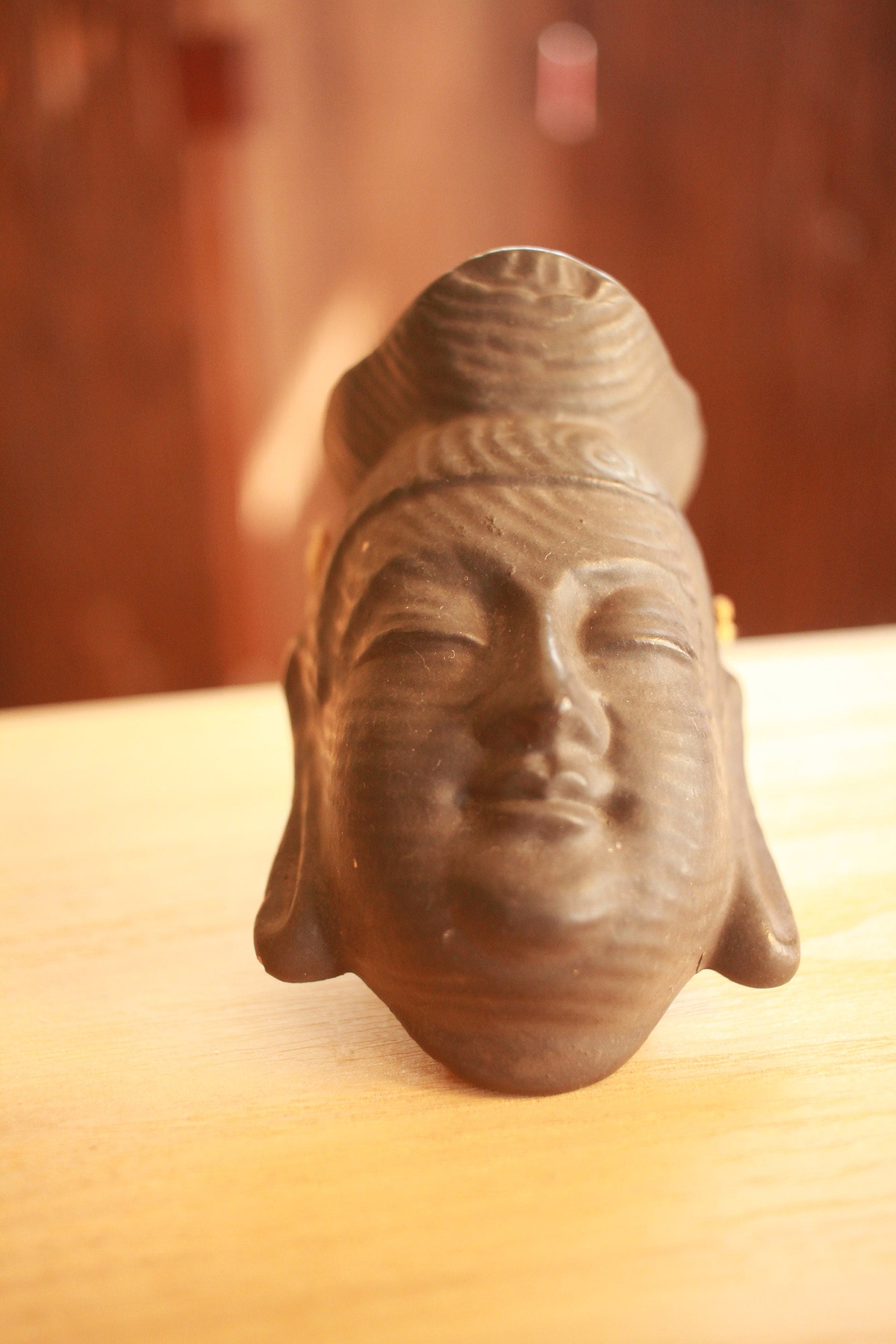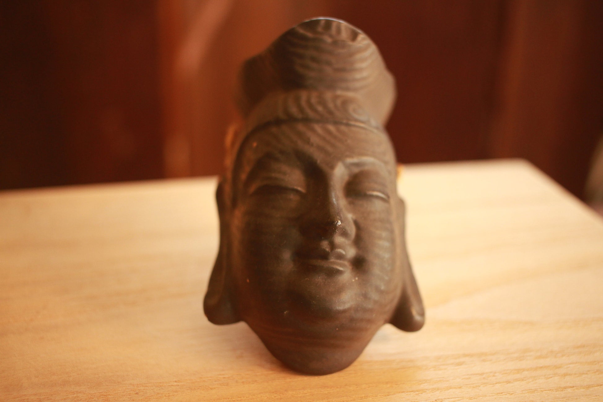 Buddha mask vintage pottery small ornament "KANNON" with gentle expression Japanese Antique furniture 2.5in×3.9in×1.6in