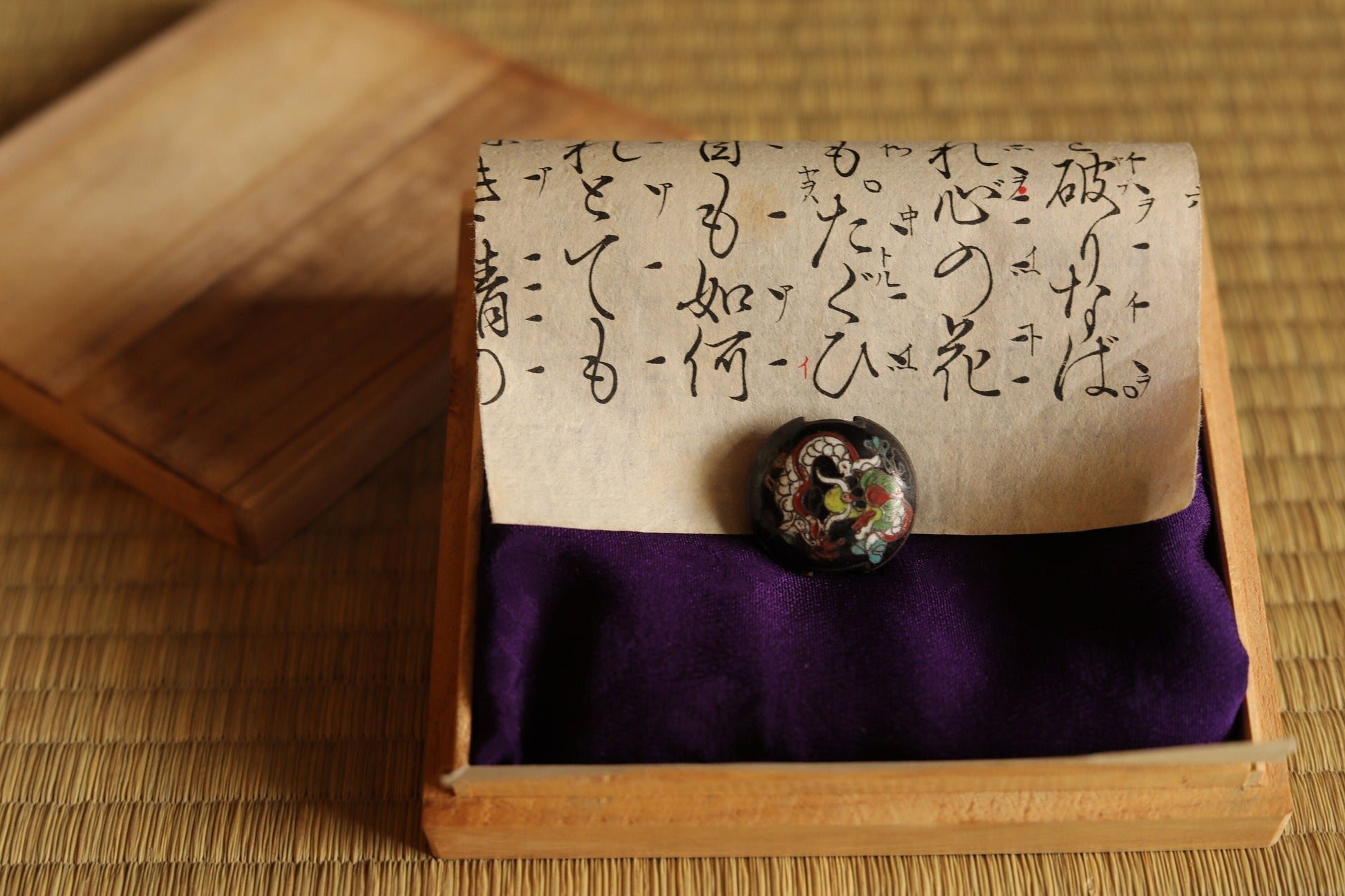 Cloisonne bead black dragon&phoenix Japanese antique kimono accessory "OBIDOME" OJIME inro 1920s with wooden box For gift