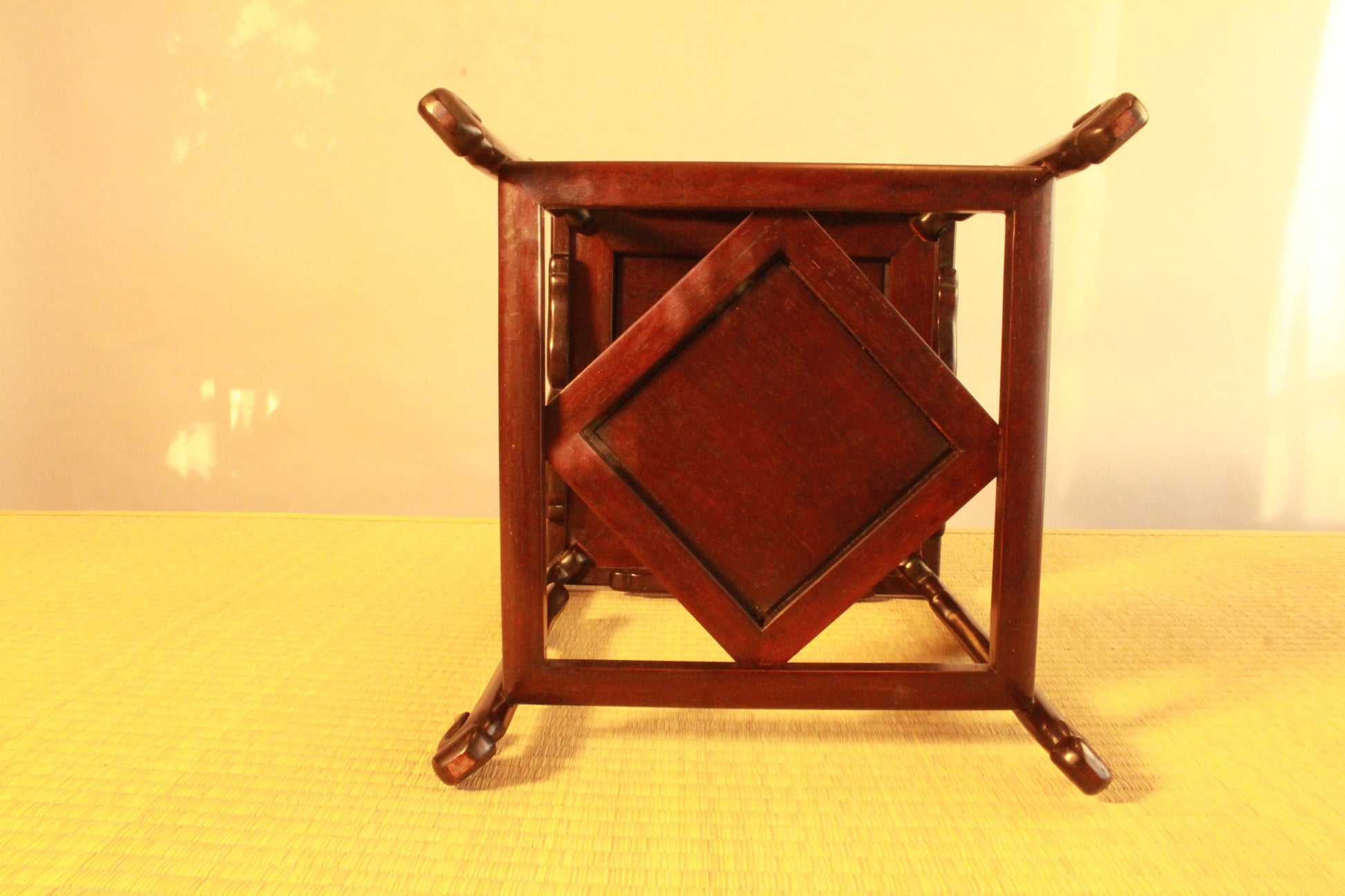 Decoration Stand Karaki dark brown wood with double shelves and unique legs, Japanese antique furniture Ikebana Bonsai H13.2×10×10in